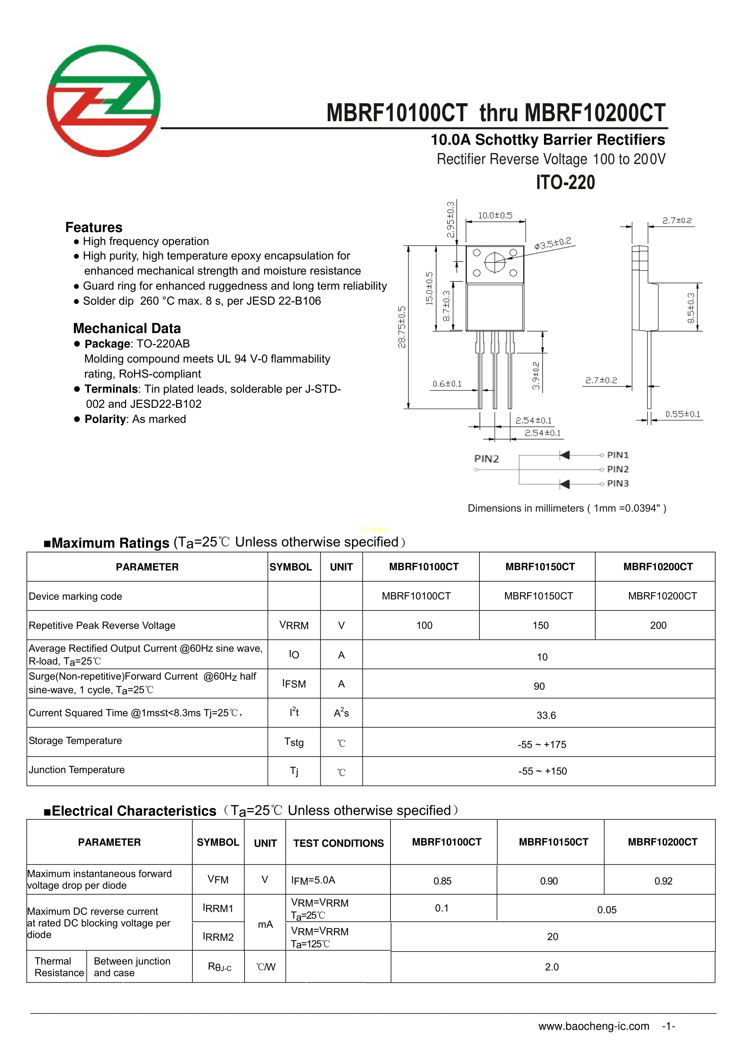 MBRF10200CT数据手册ITO-220封装baocheng(宝乘)PDF规格书,中英文下载
