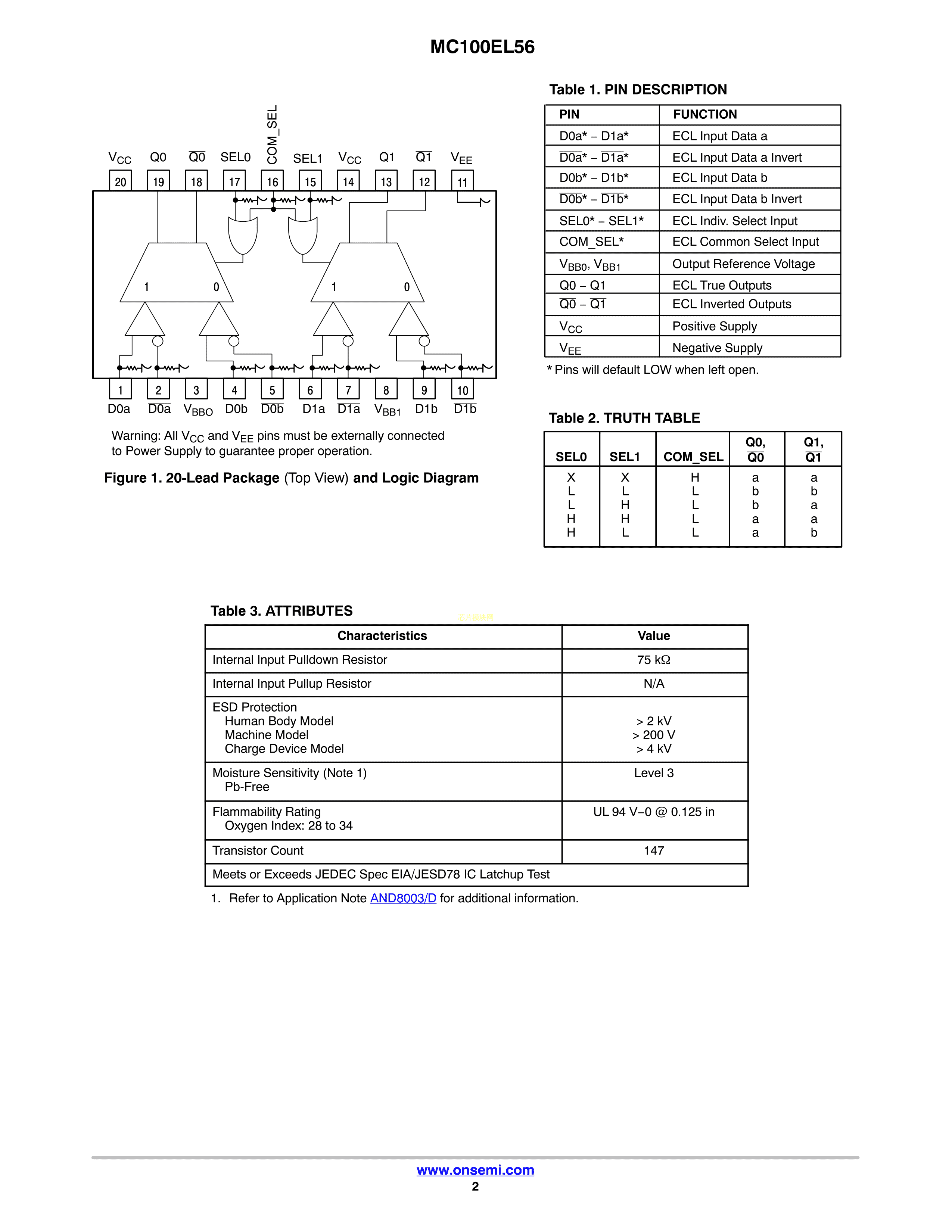 MC100EL56DWR2G数据手册SOIC-20封装onsemi(安森美)PDF规格书,中英文下载
