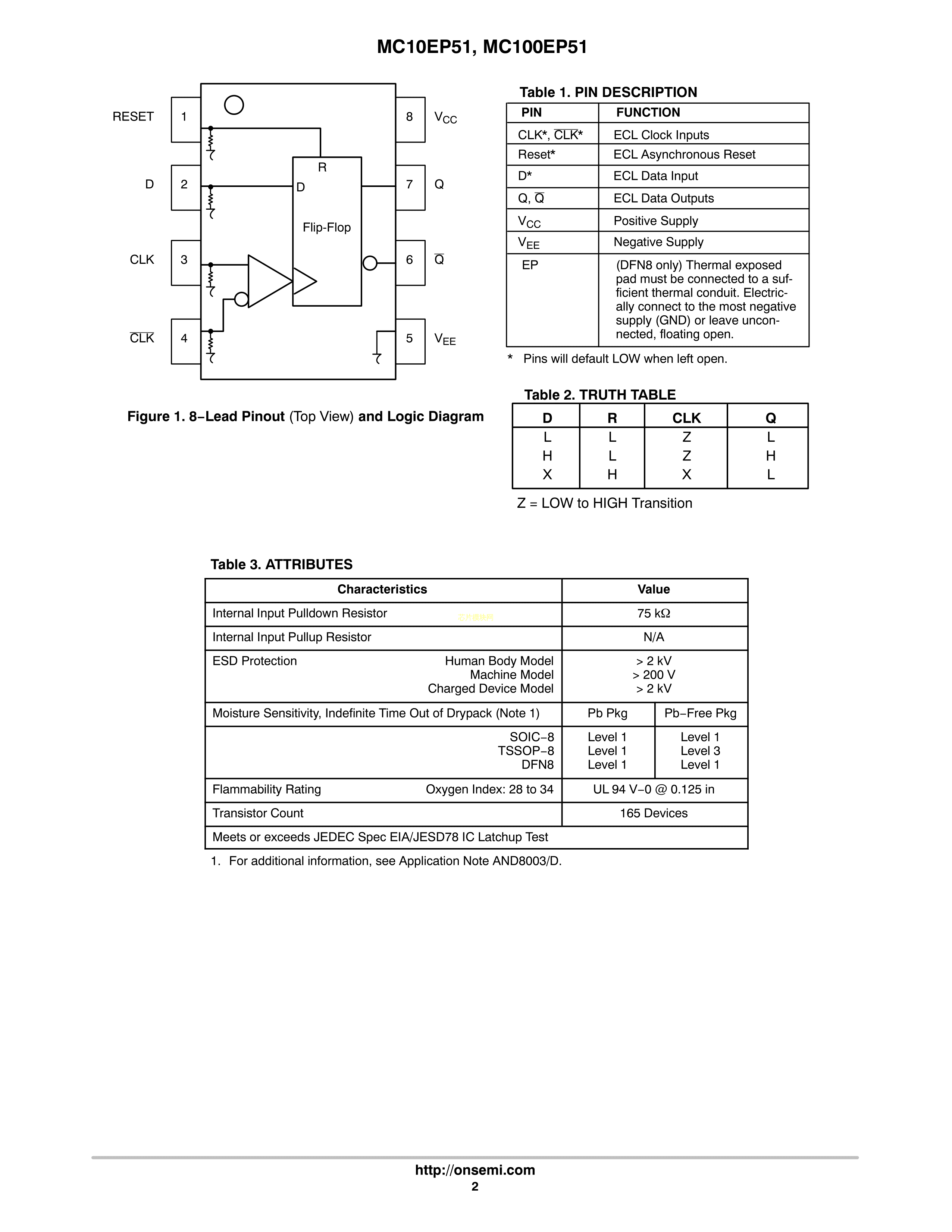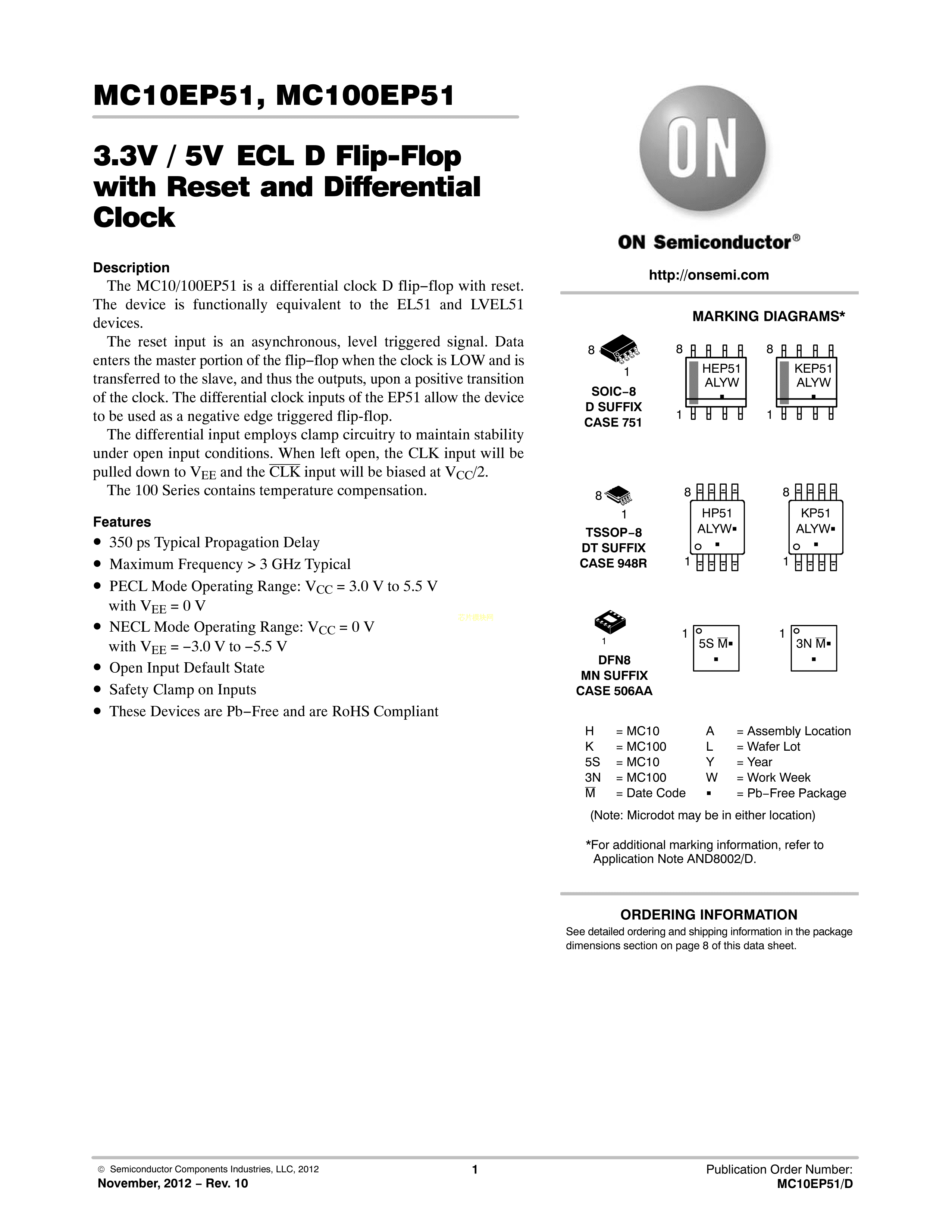 MC100EP51DG数据手册SOIC-8封装onsemi(安森美)PDF规格书,中英文下载