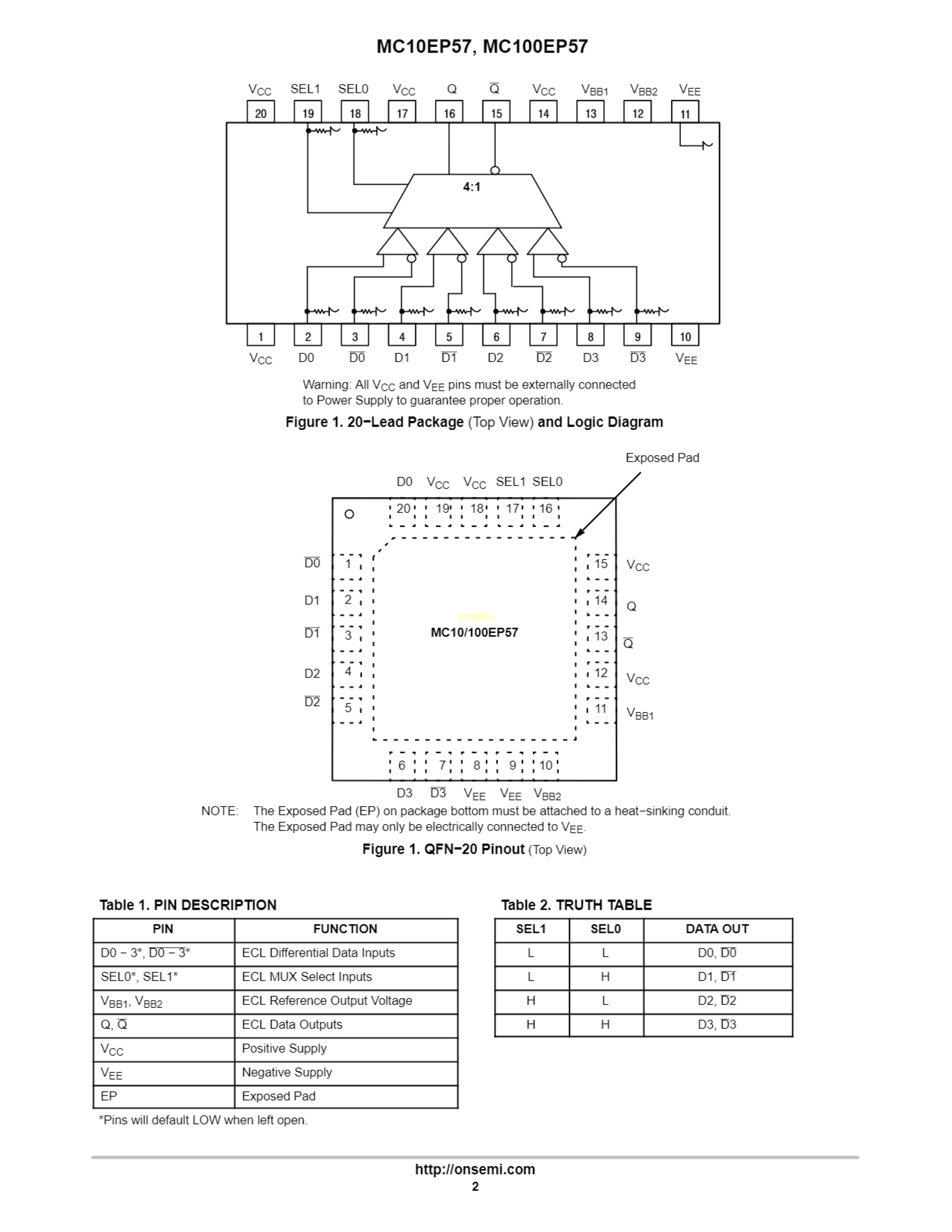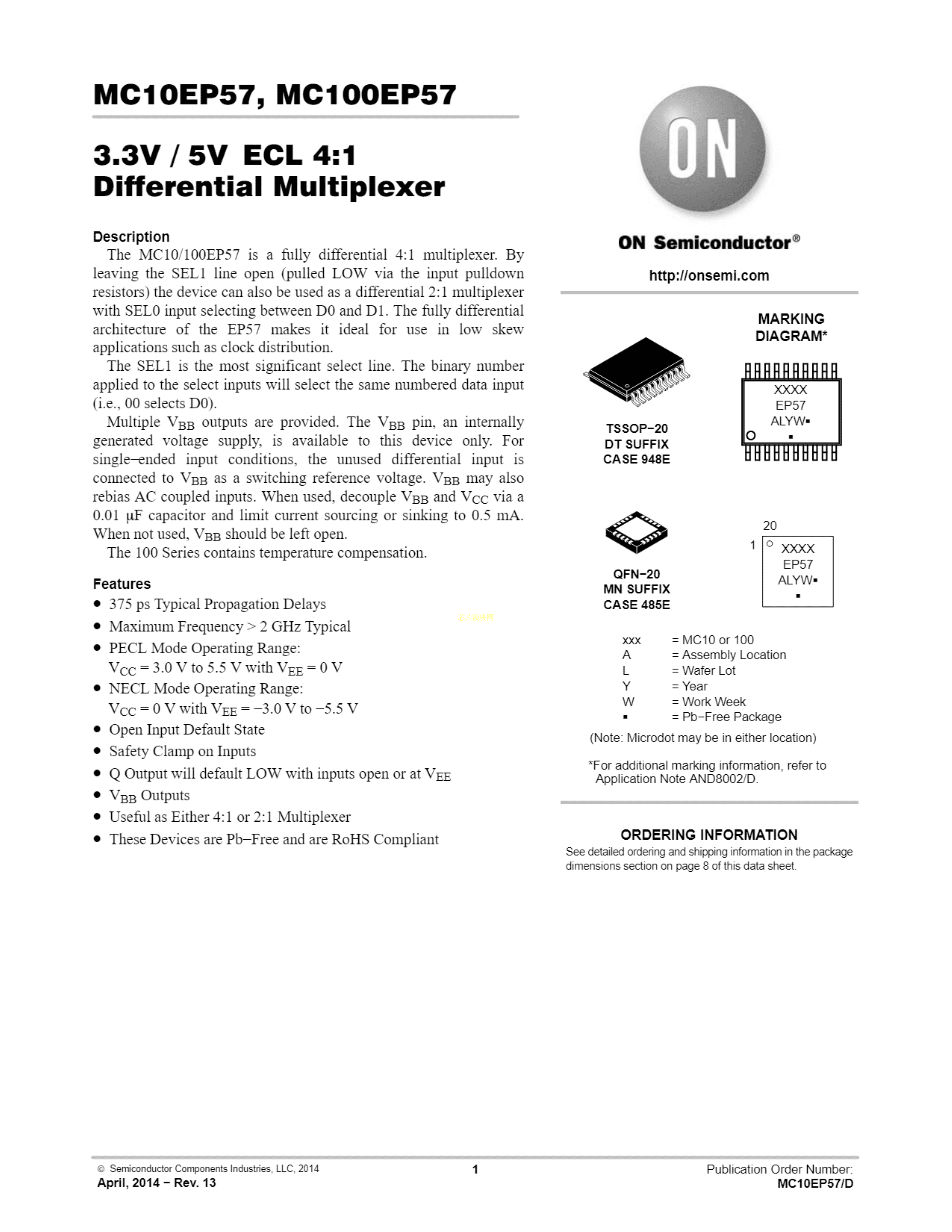 MC100EP57DTR2G数据手册TSSOP-20封装onsemi(安森美)PDF规格书,中英文下