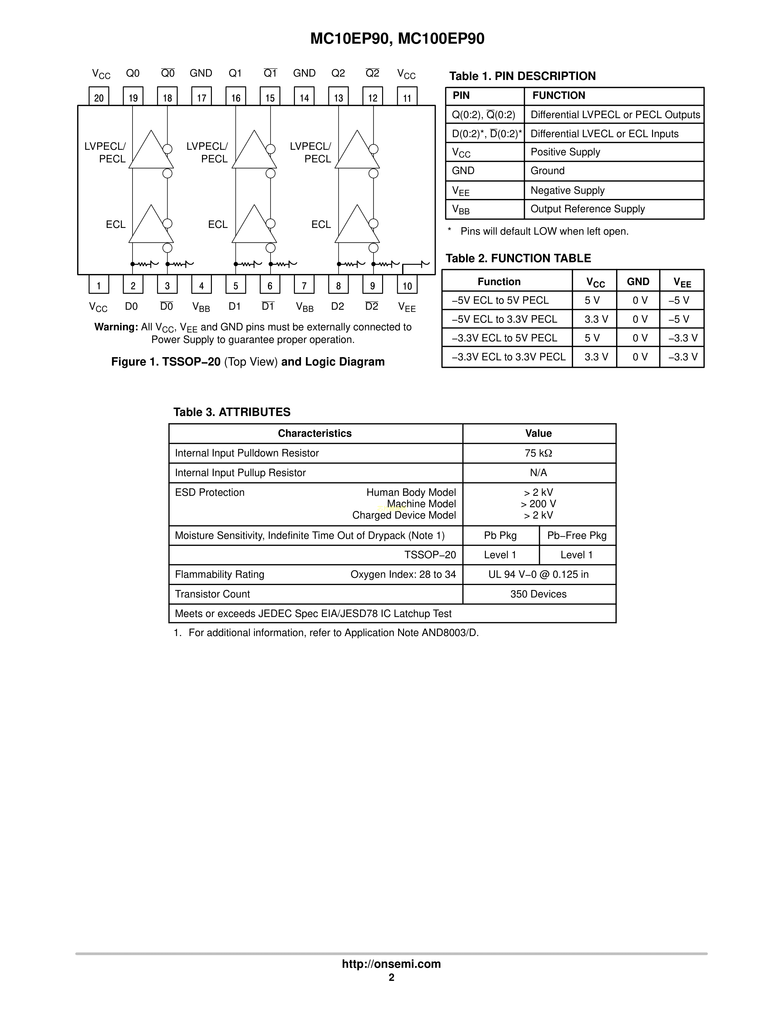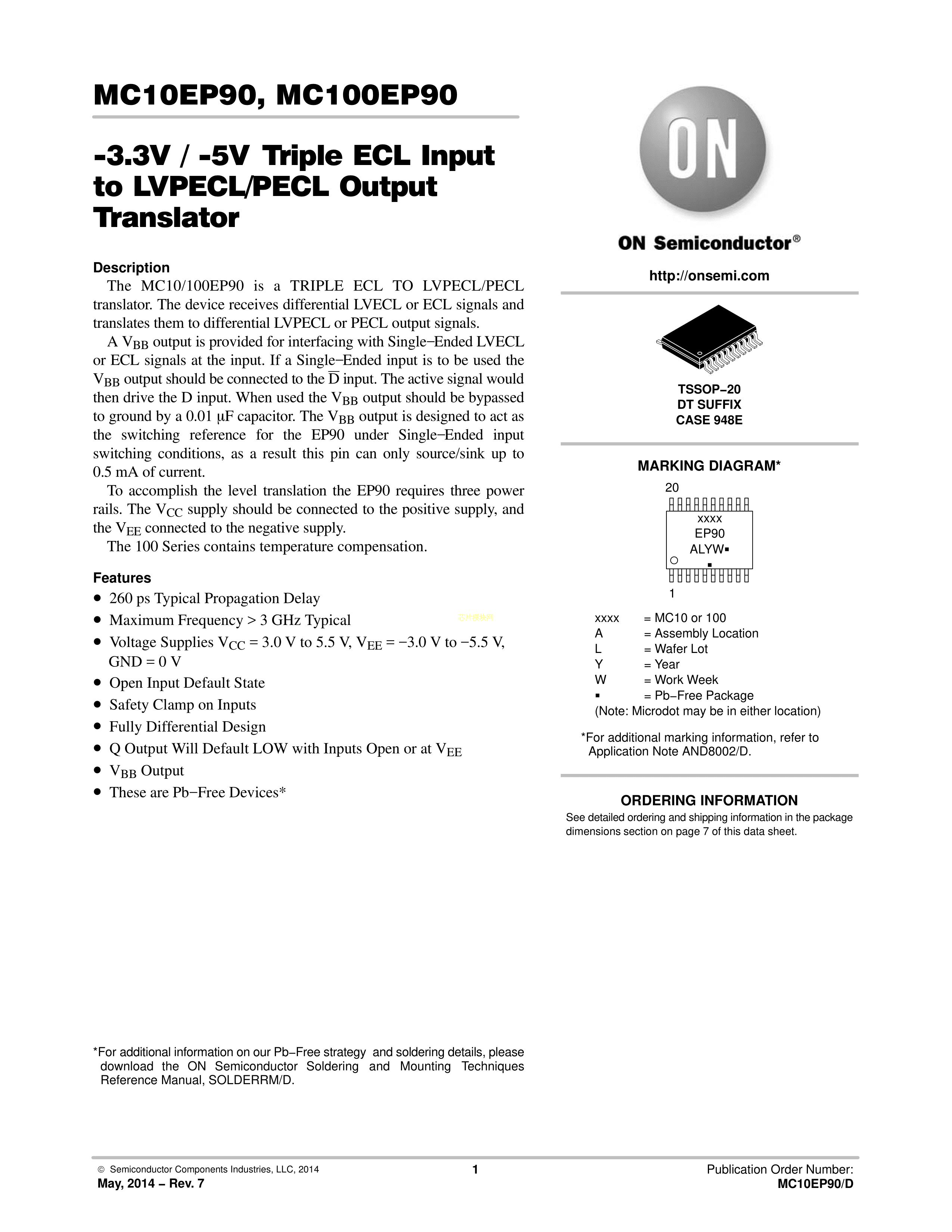 MC100EP90DTG数据手册TSSOP-20封装onsemi(安森美)PDF规格书,中英文下载