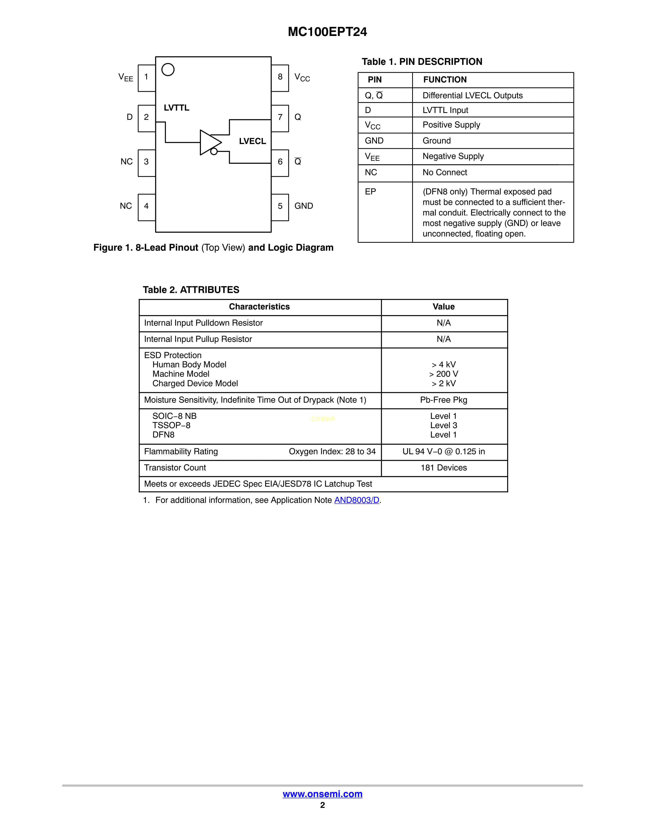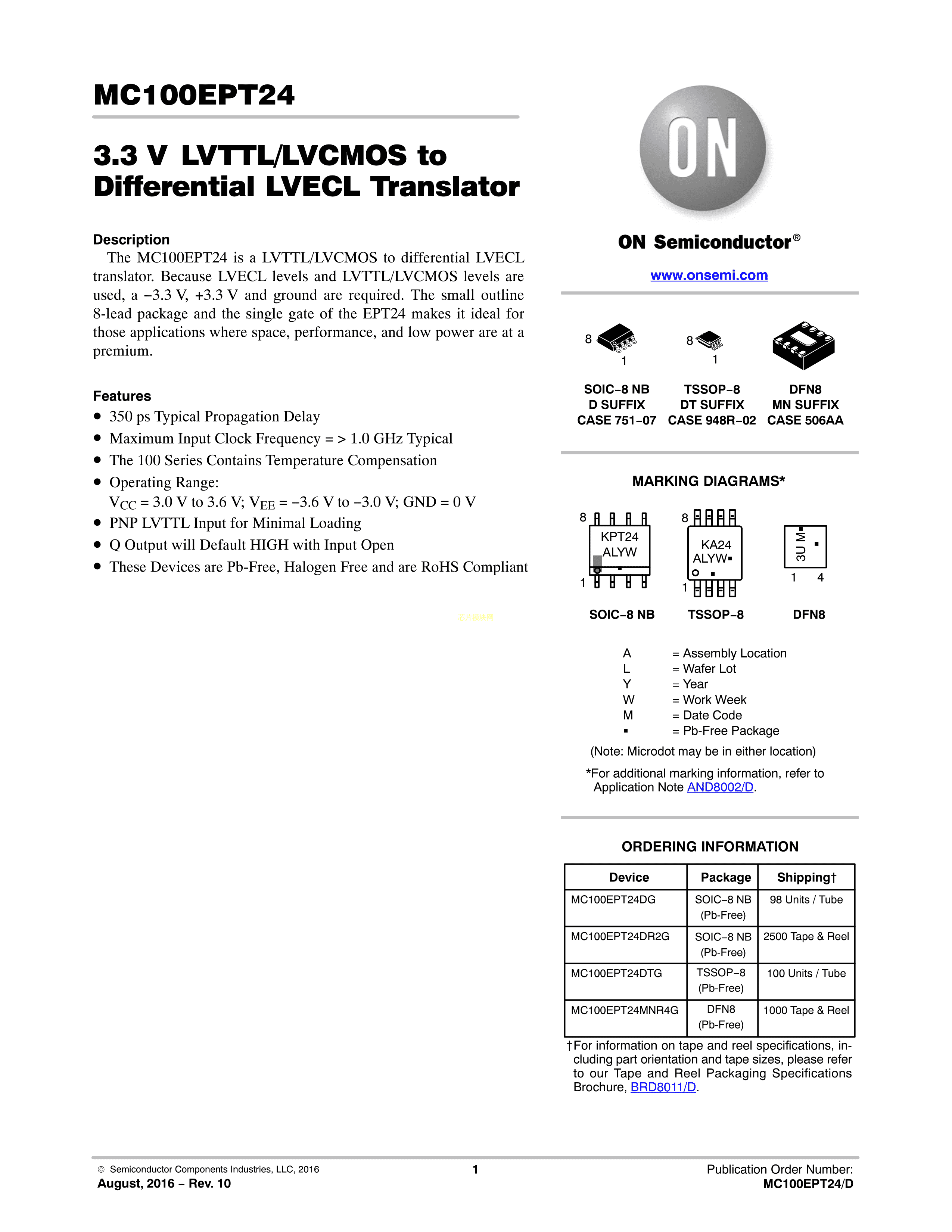 MC100EPT24MNR4G数据手册DFN-8封装onsemi(安森美)PDF规格书,中英文下载
