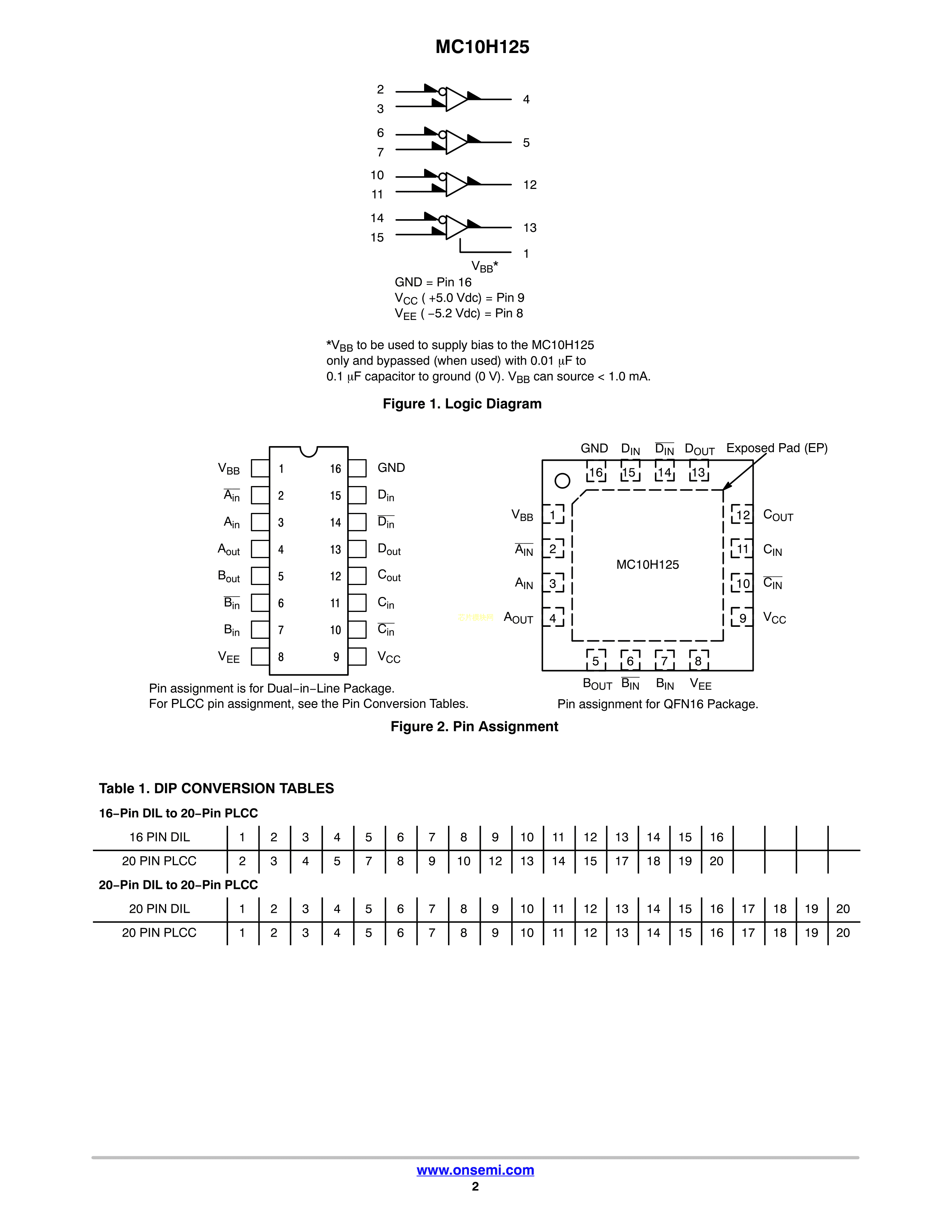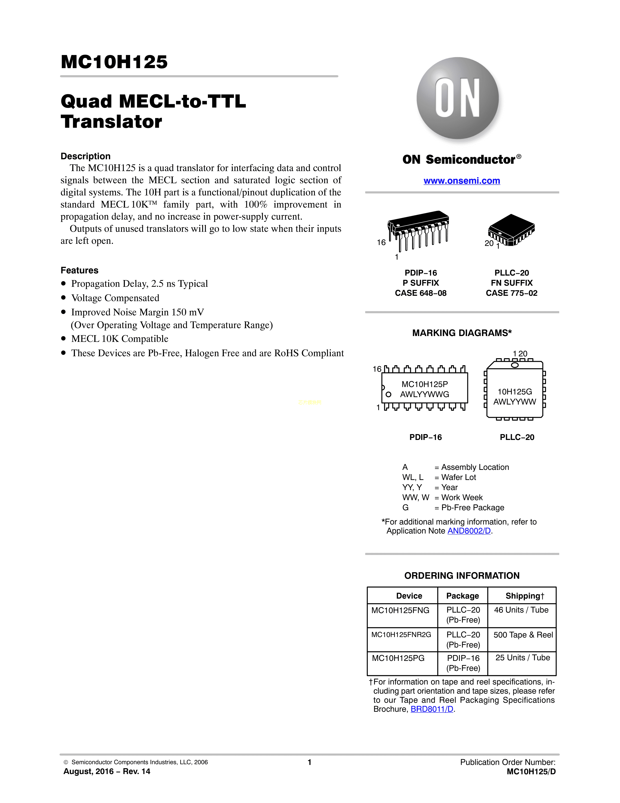 MC10H125PG数据手册DIP-16封装onsemi(安森美)PDF规格书,中英文下载