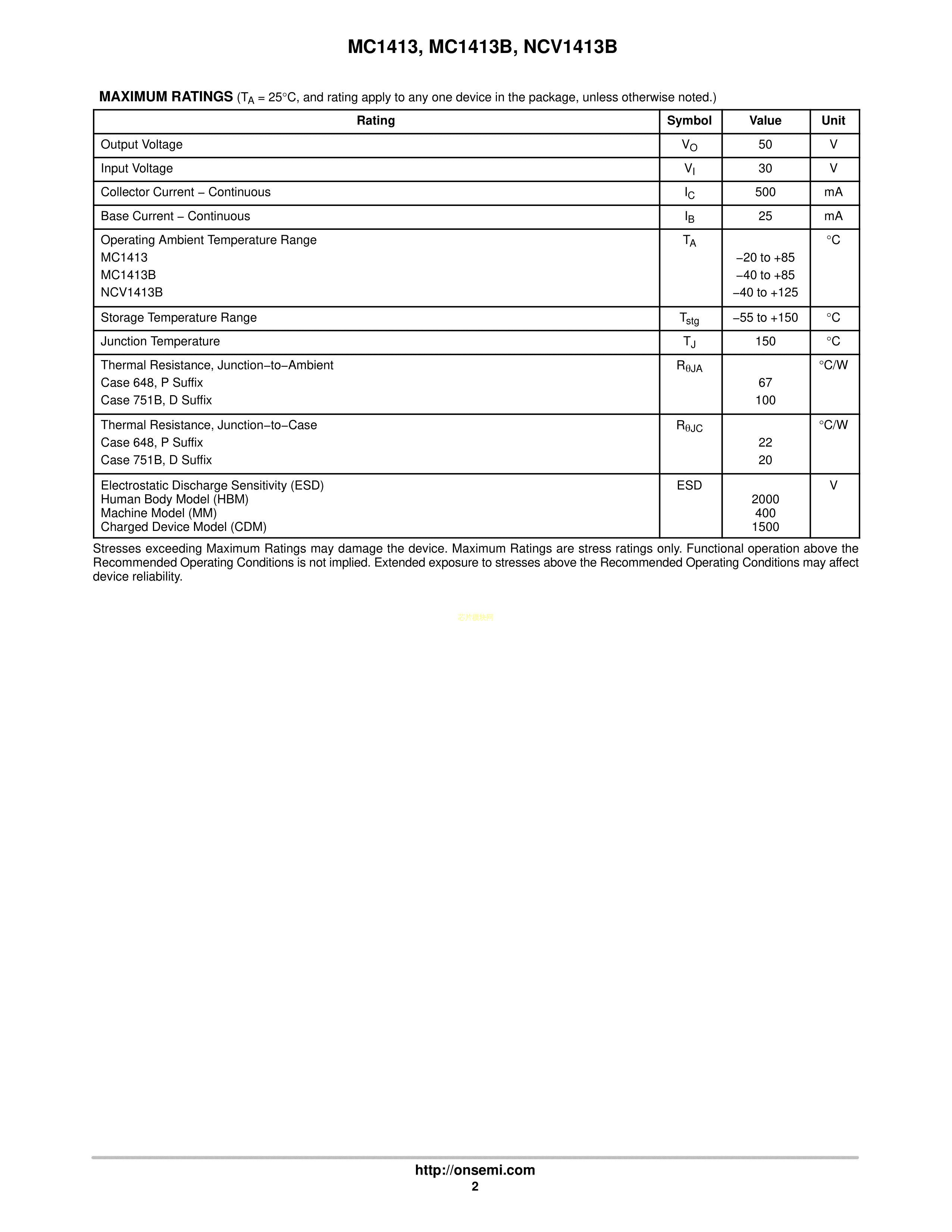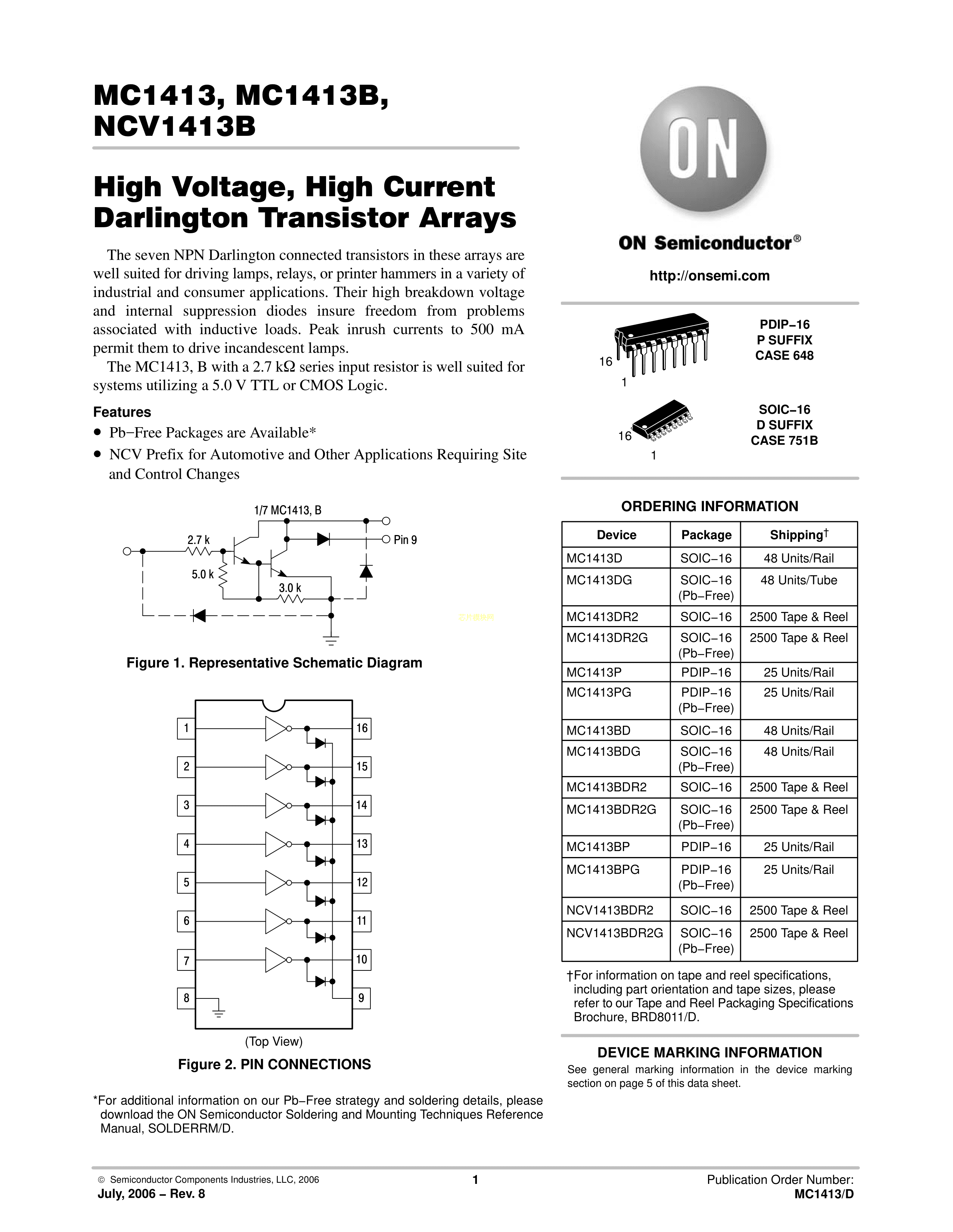 MC1413DR2G数据手册SOIC-16_150mil封装onsemi(安森美)PDF规格书,中英