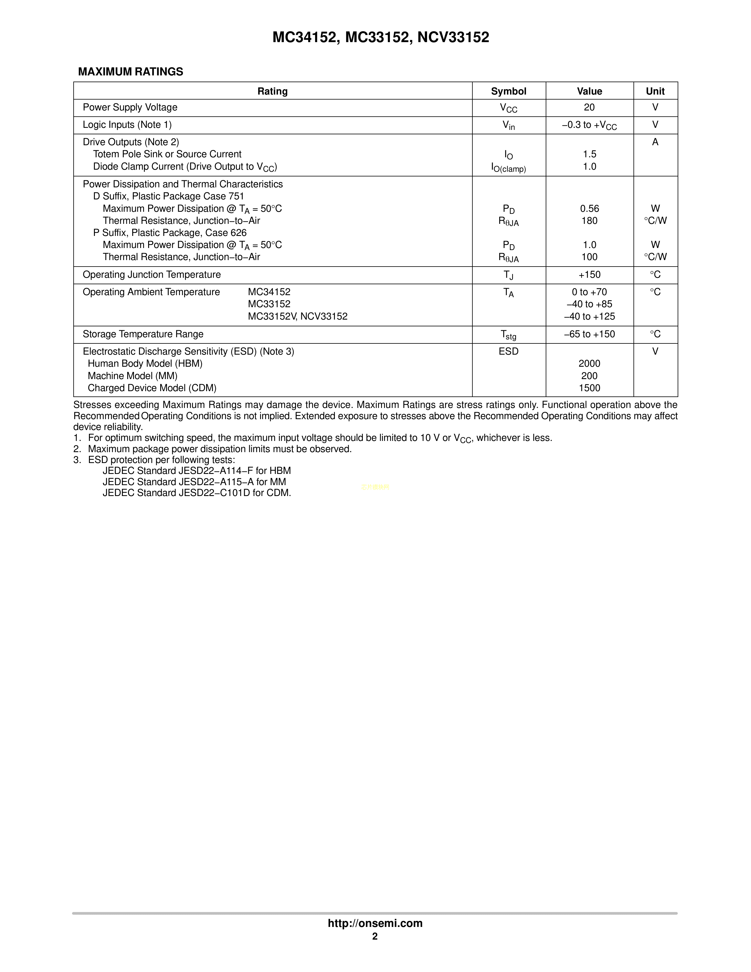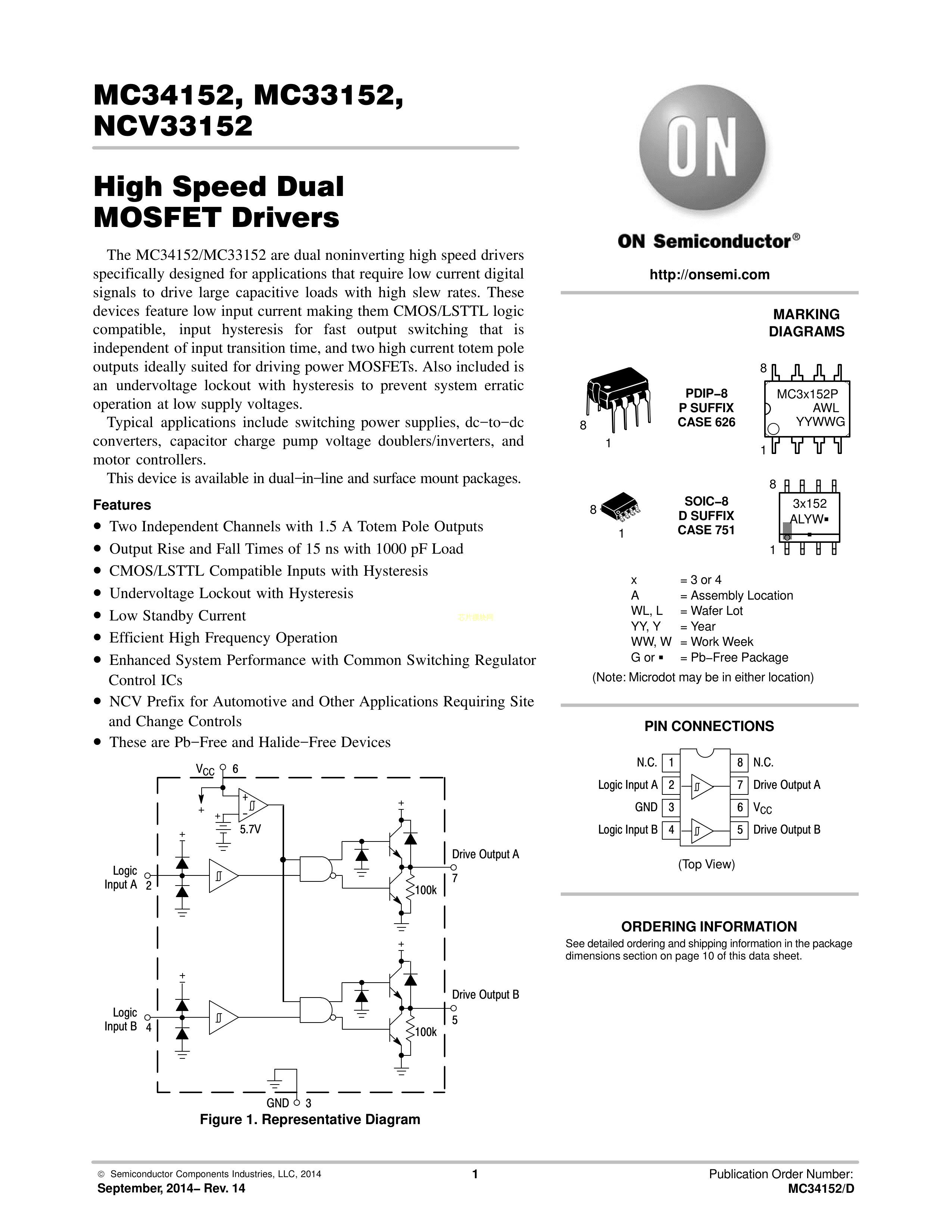 MC33152VDG数据手册SOIC-8封装onsemi(安森美)PDF规格书,中英文下载