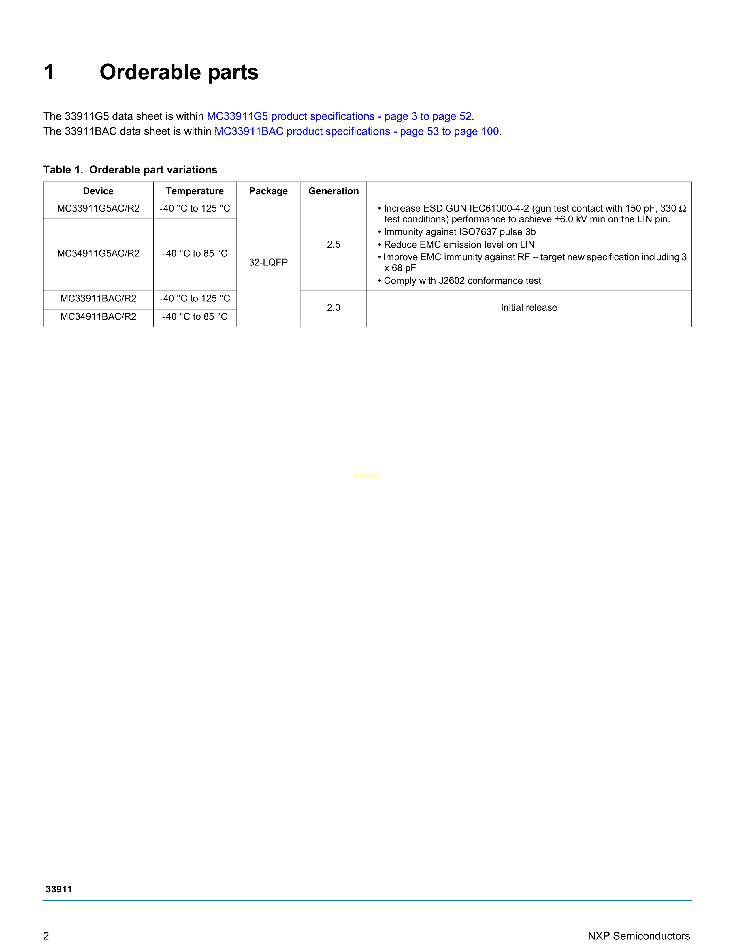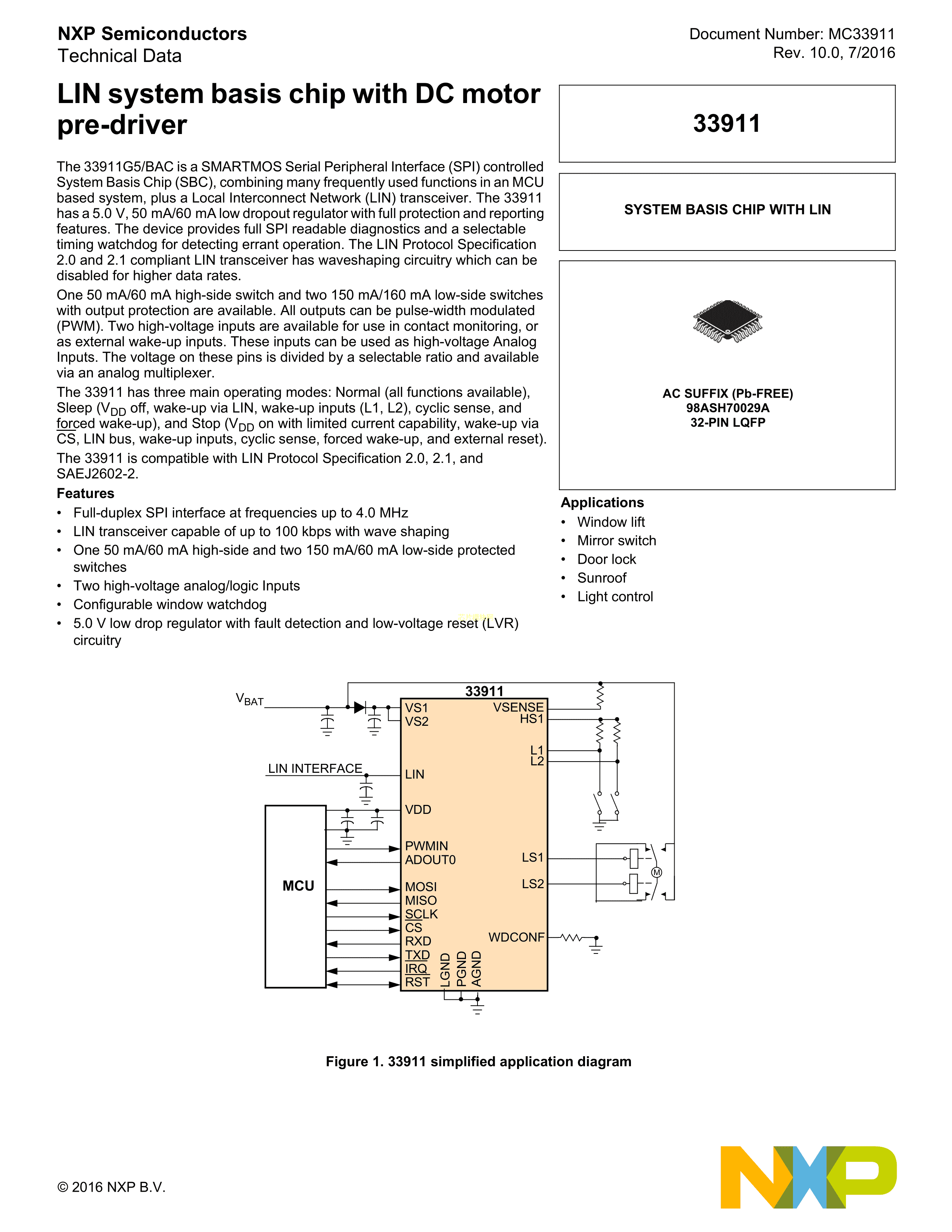 MC33911BACR2数据手册LQFP-32(7x7)封装NXP(恩智浦)PDF规格书,中英文下载