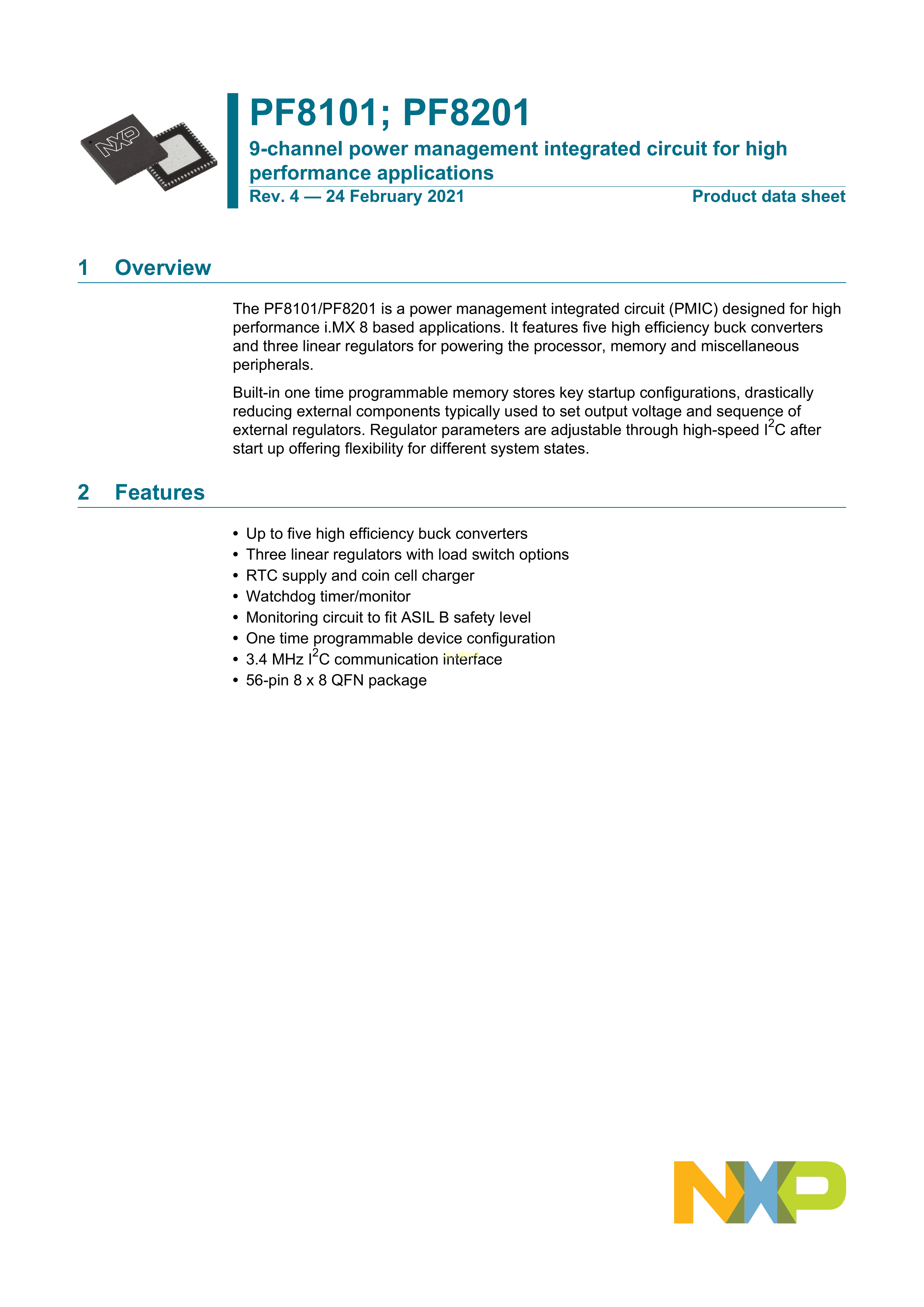 MC33PF8201A0ES数据手册HVQFN-56(8x8)封装NXP(恩智浦)PDF规格书,中英