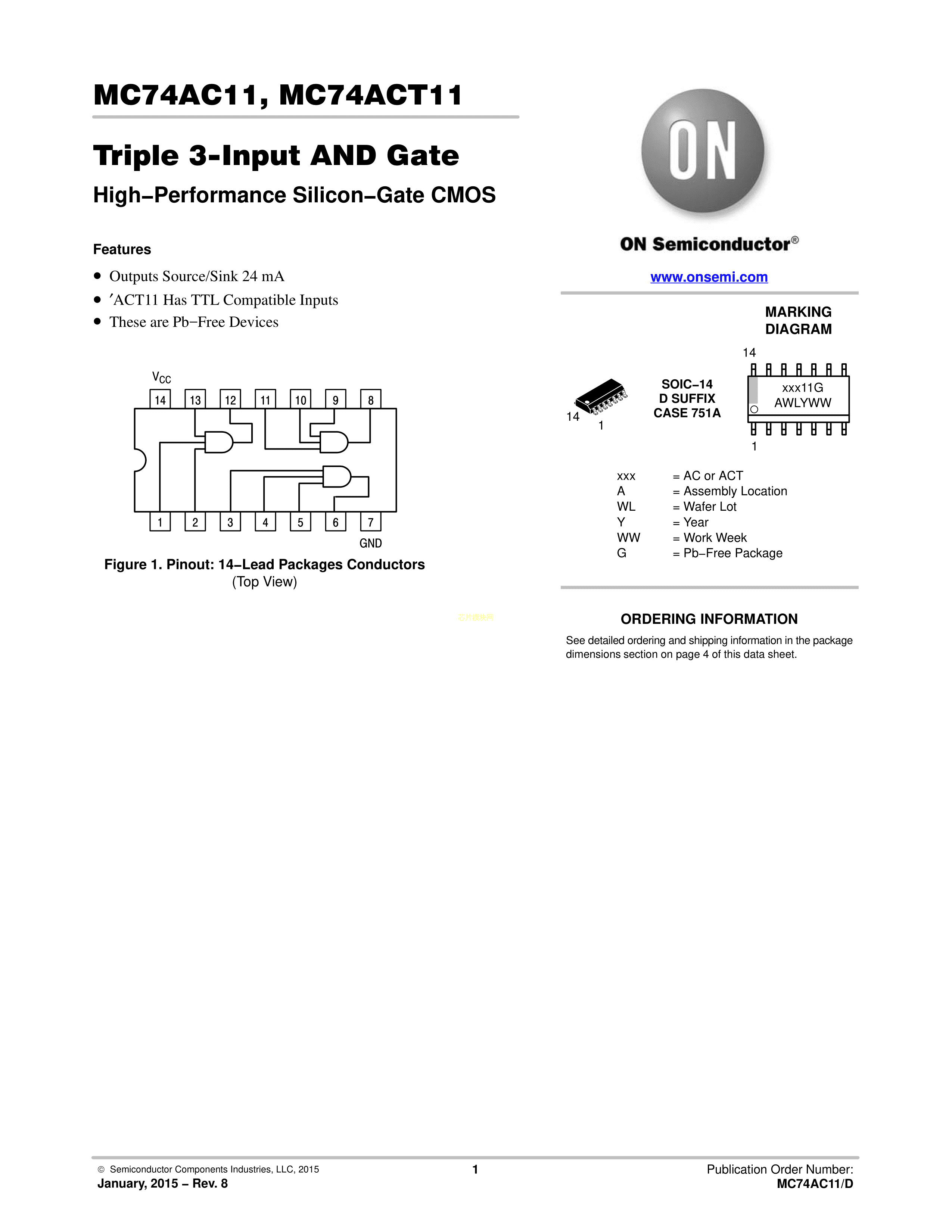 MC74AC11DG数据手册SOIC-14封装onsemi(安森美)PDF规格书,中英文下载