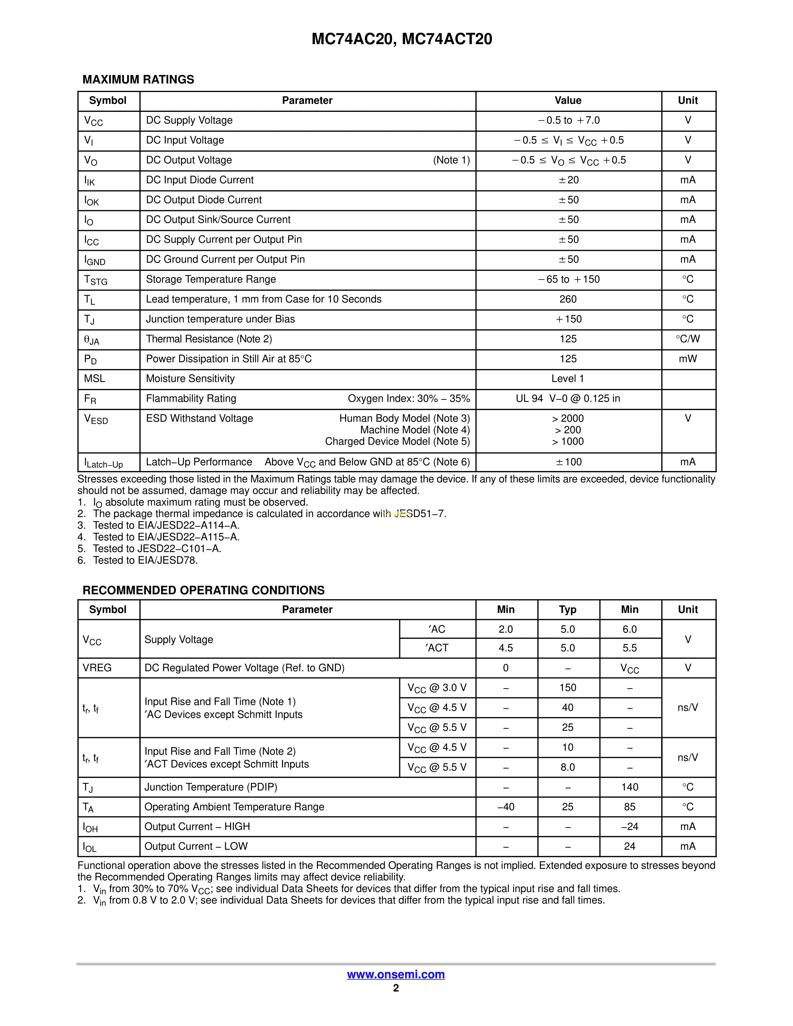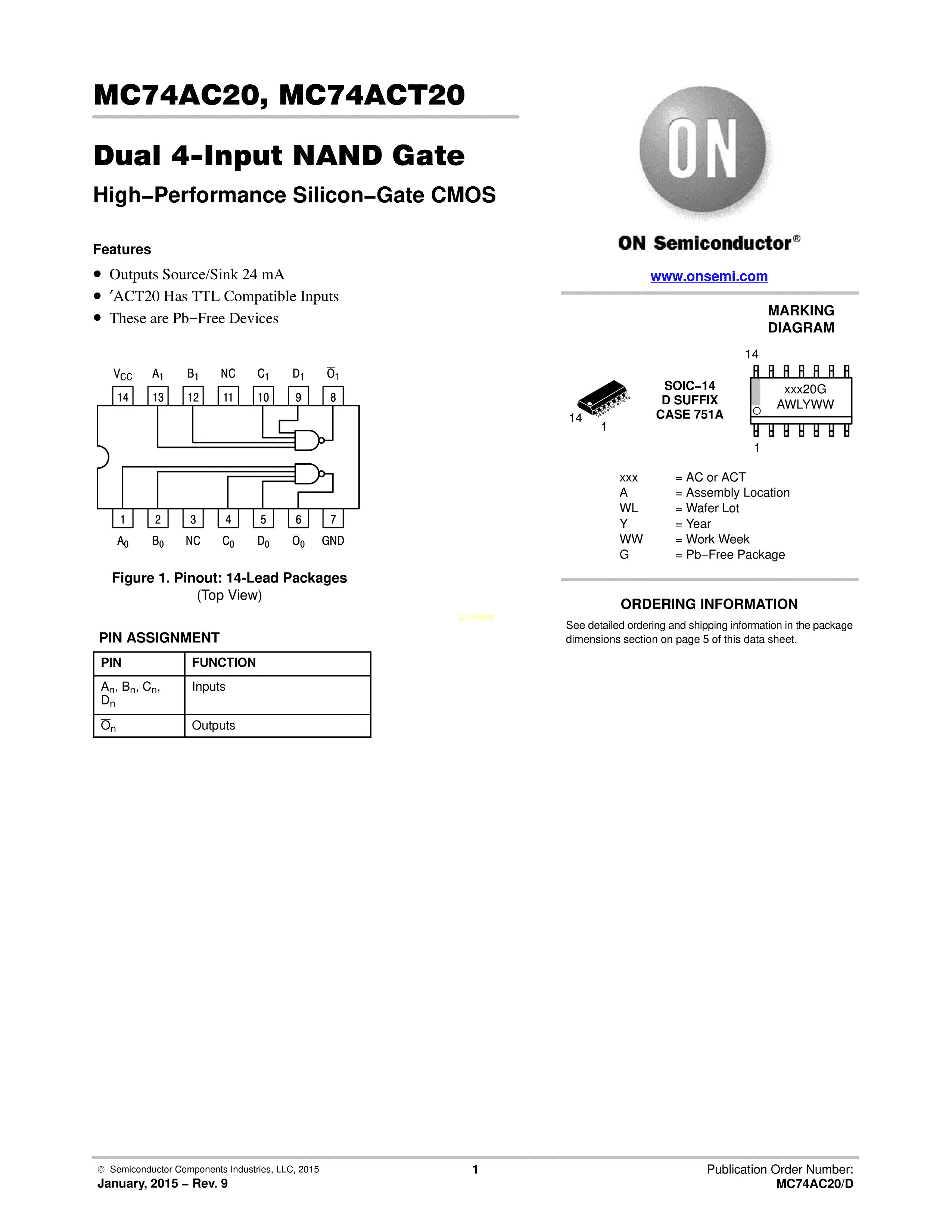 MC74AC20DG数据手册SOIC-14封装onsemi(安森美)PDF规格书,中英文下载