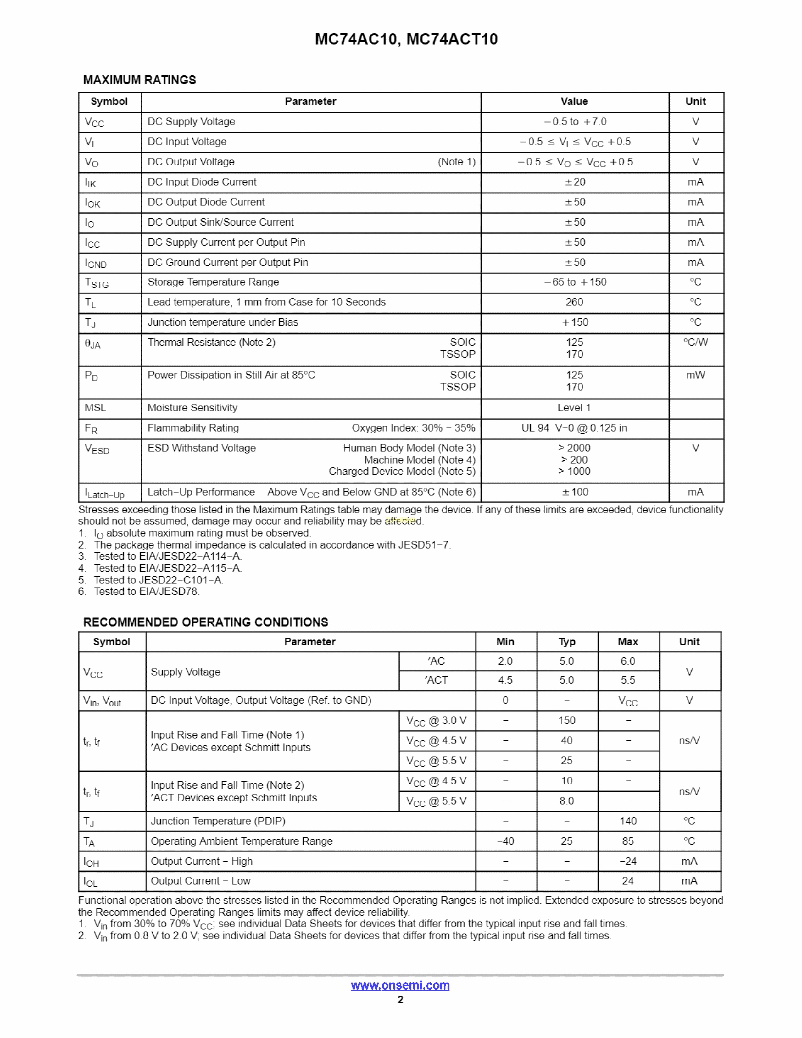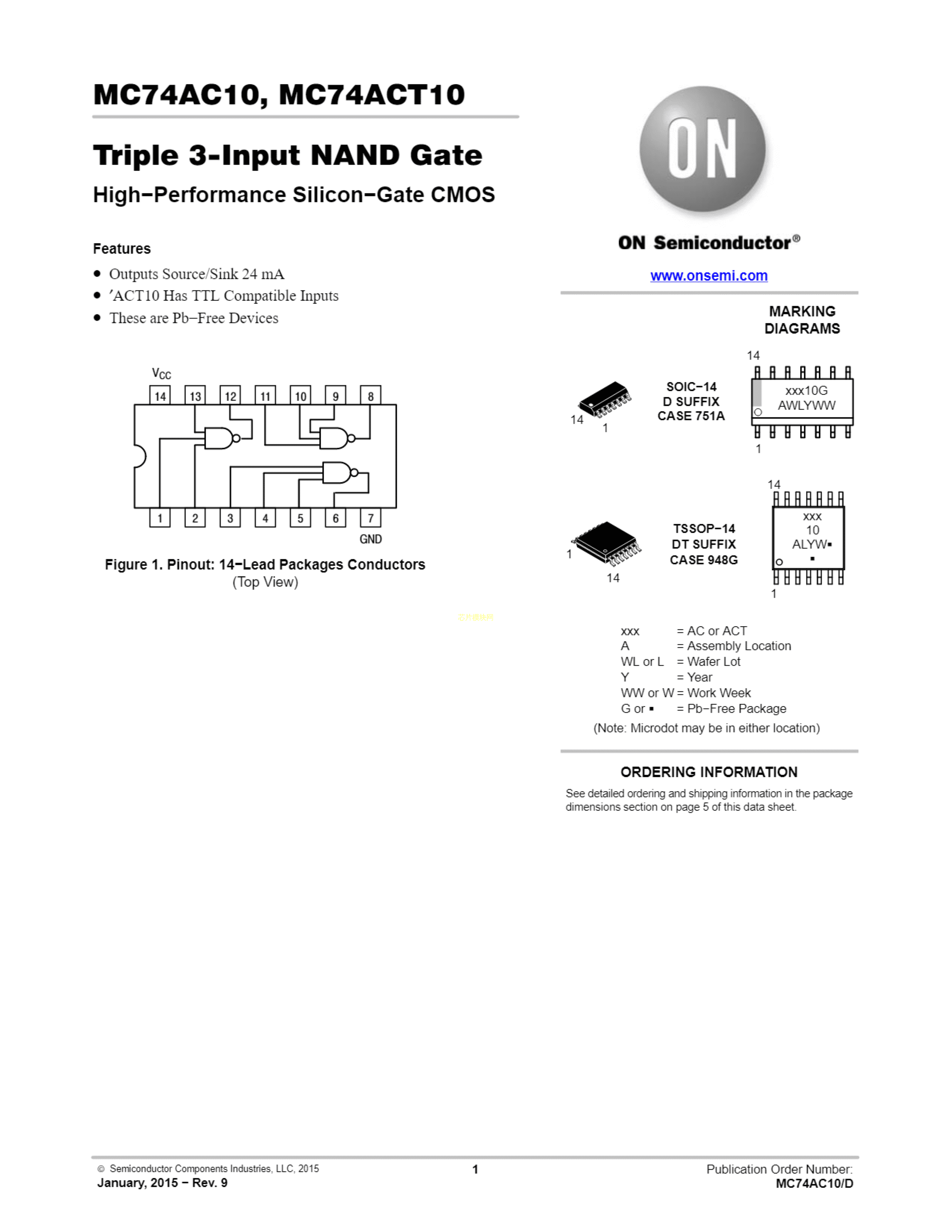 MC74ACT10DTR2G数据手册TSSOP-14封装onsemi(安森美)PDF规格书,中英文下