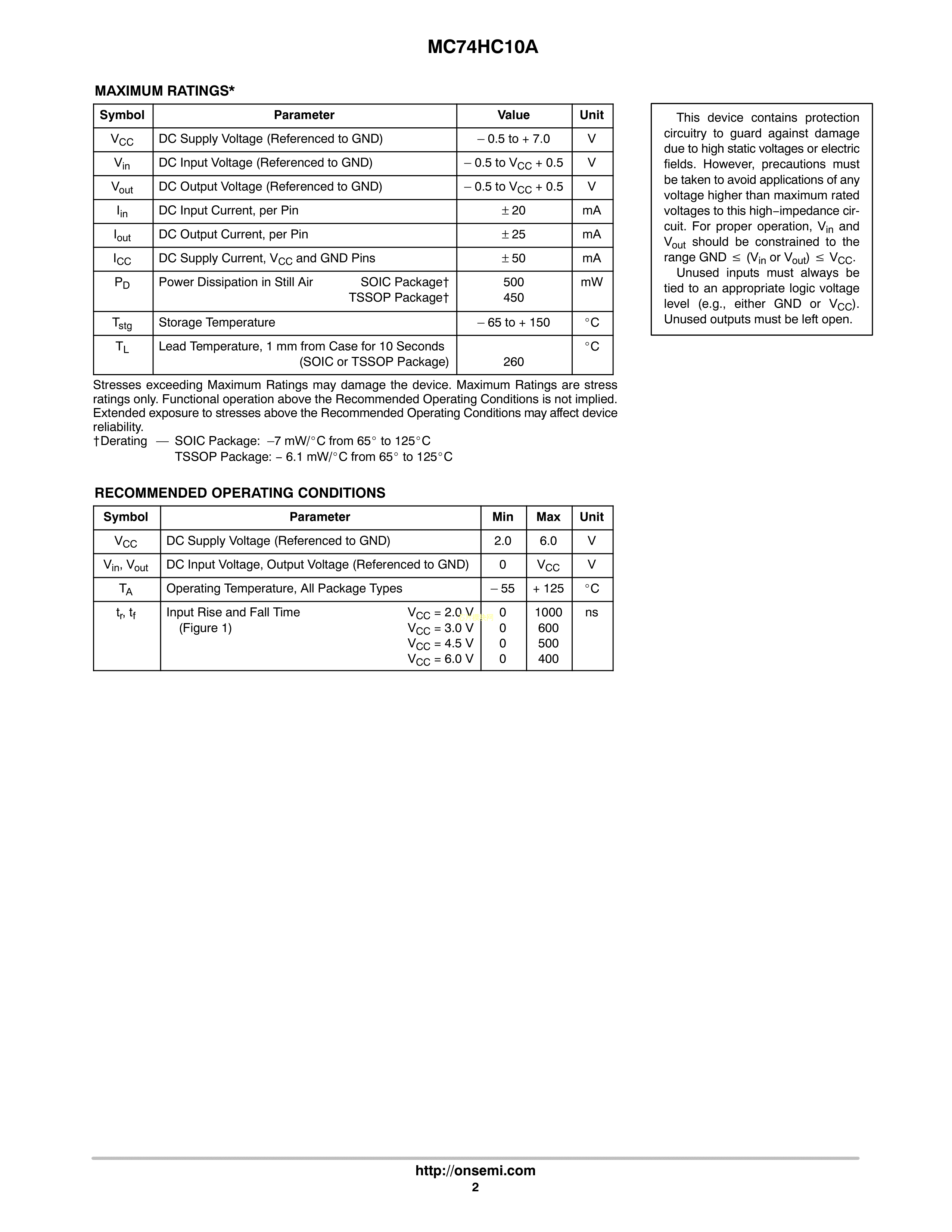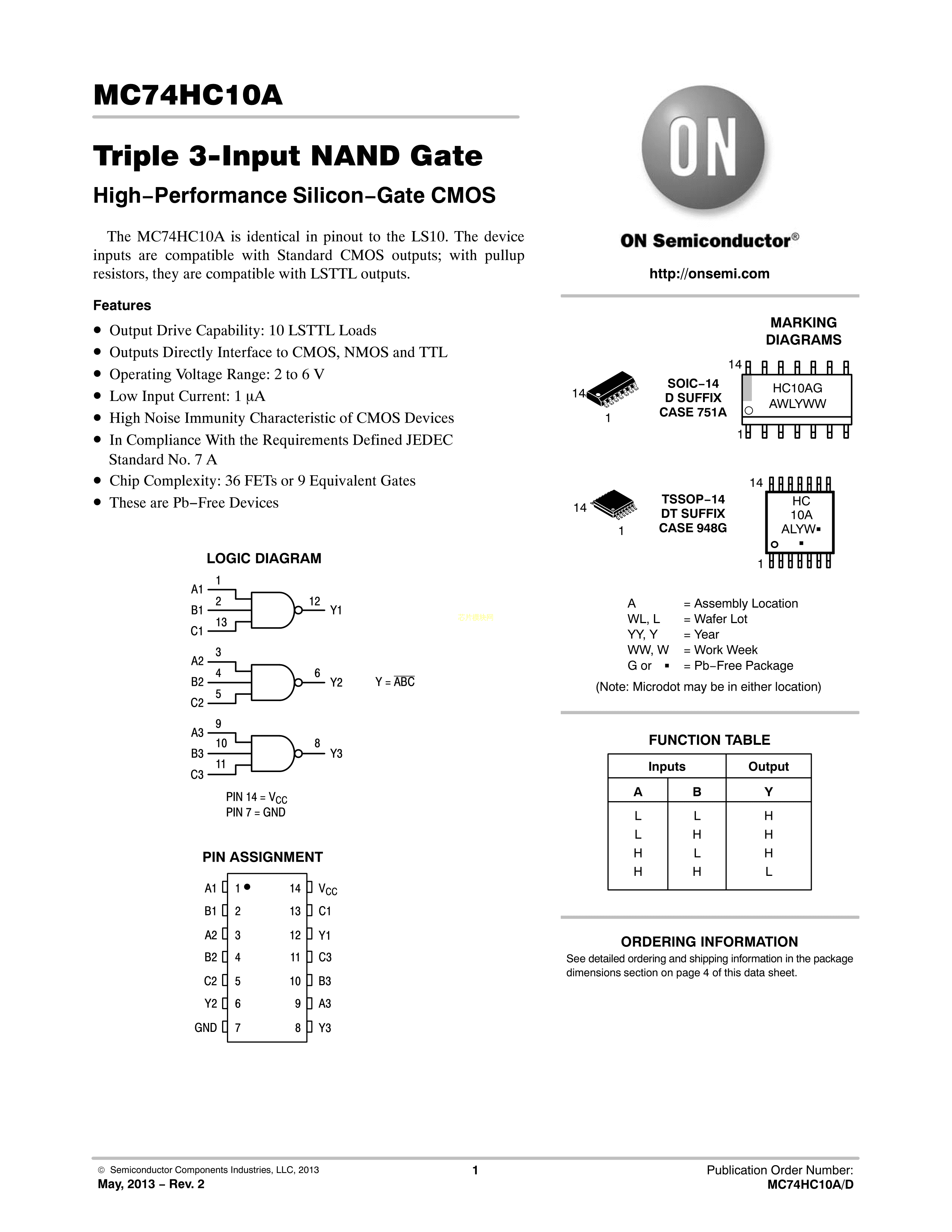 MC74HC10ADTR2G数据手册TSSOP-14封装onsemi(安森美)PDF规格书,中英文下