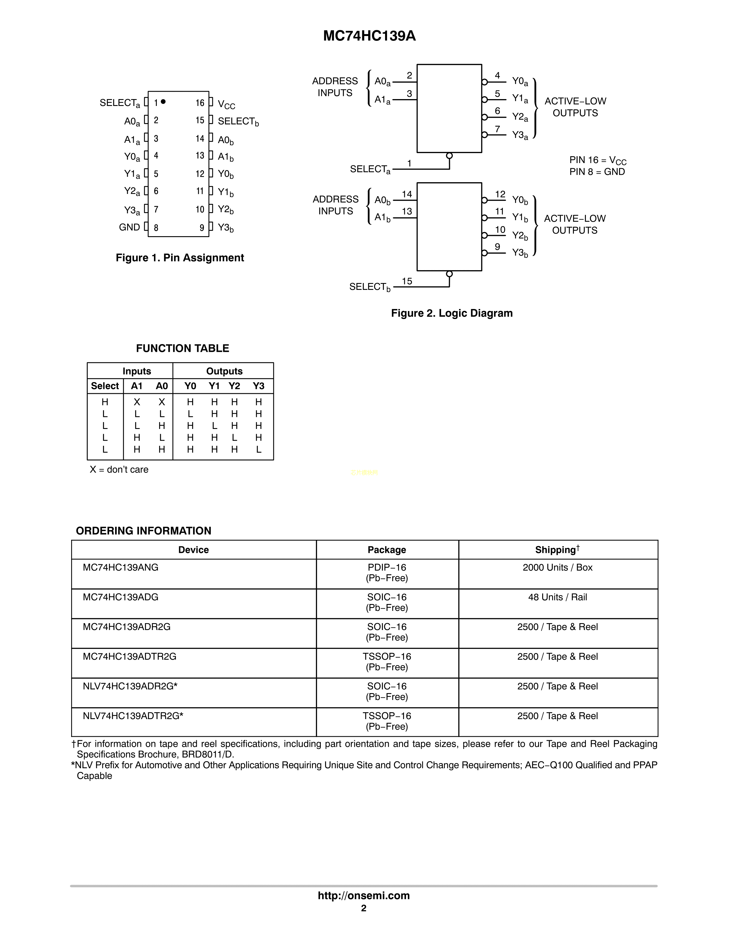 MC74HC139ADR2G数据手册SOIC-16封装onsemi(安森美)PDF规格书,中英文下载