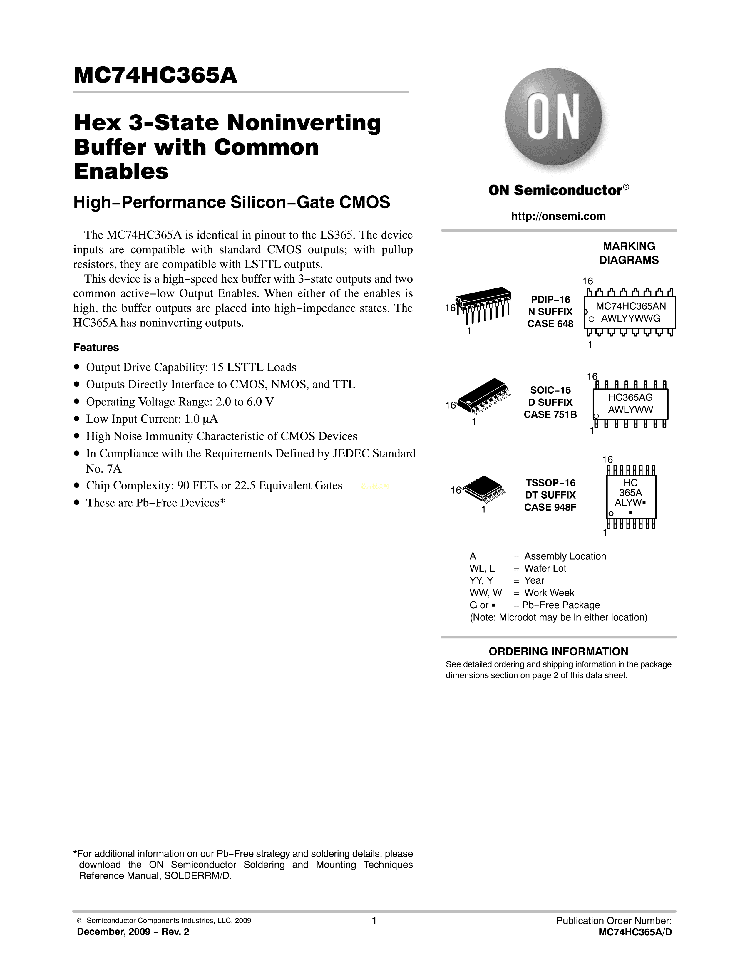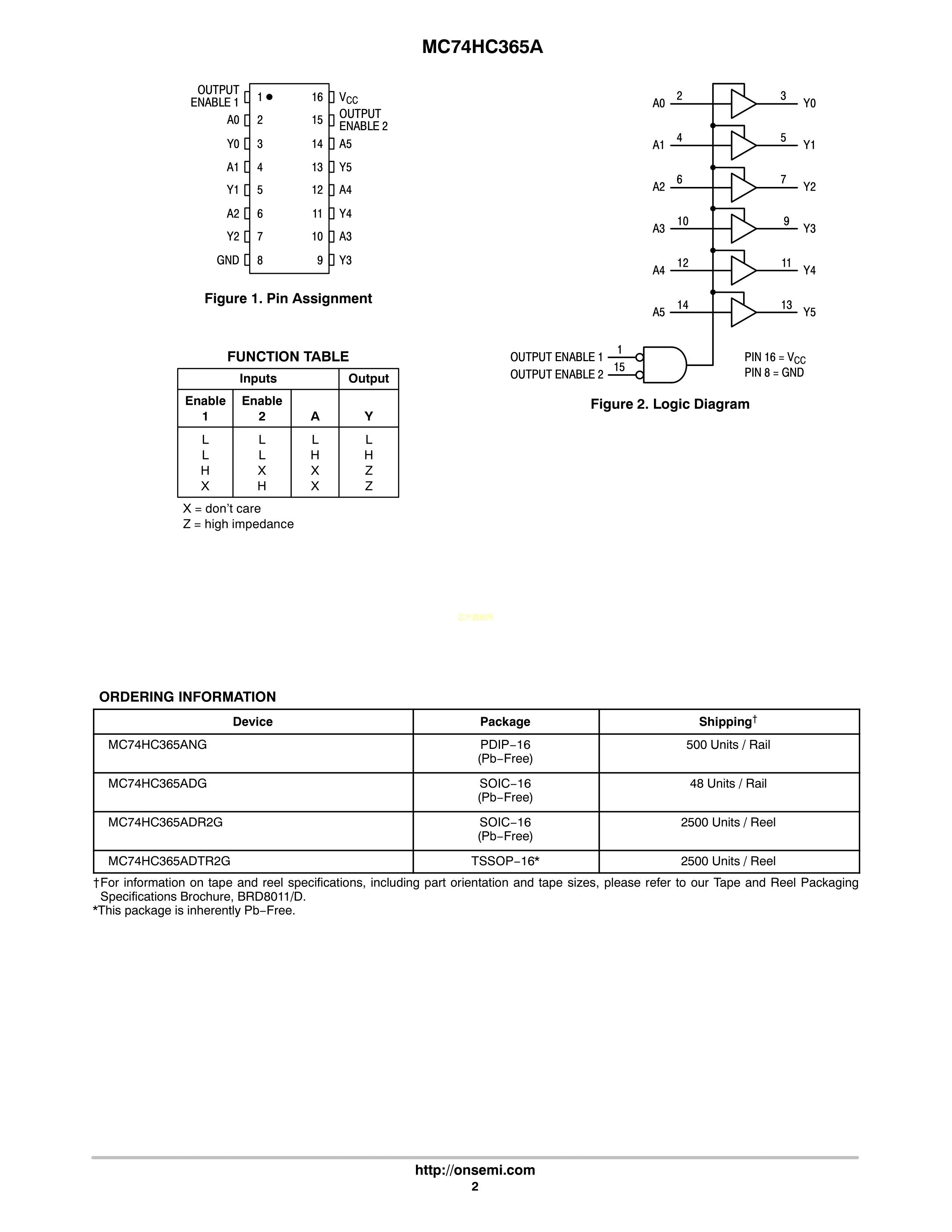 MC74HC365ADR2G数据手册SOIC-16_150mil封装onsemi(安森美)PDF规格