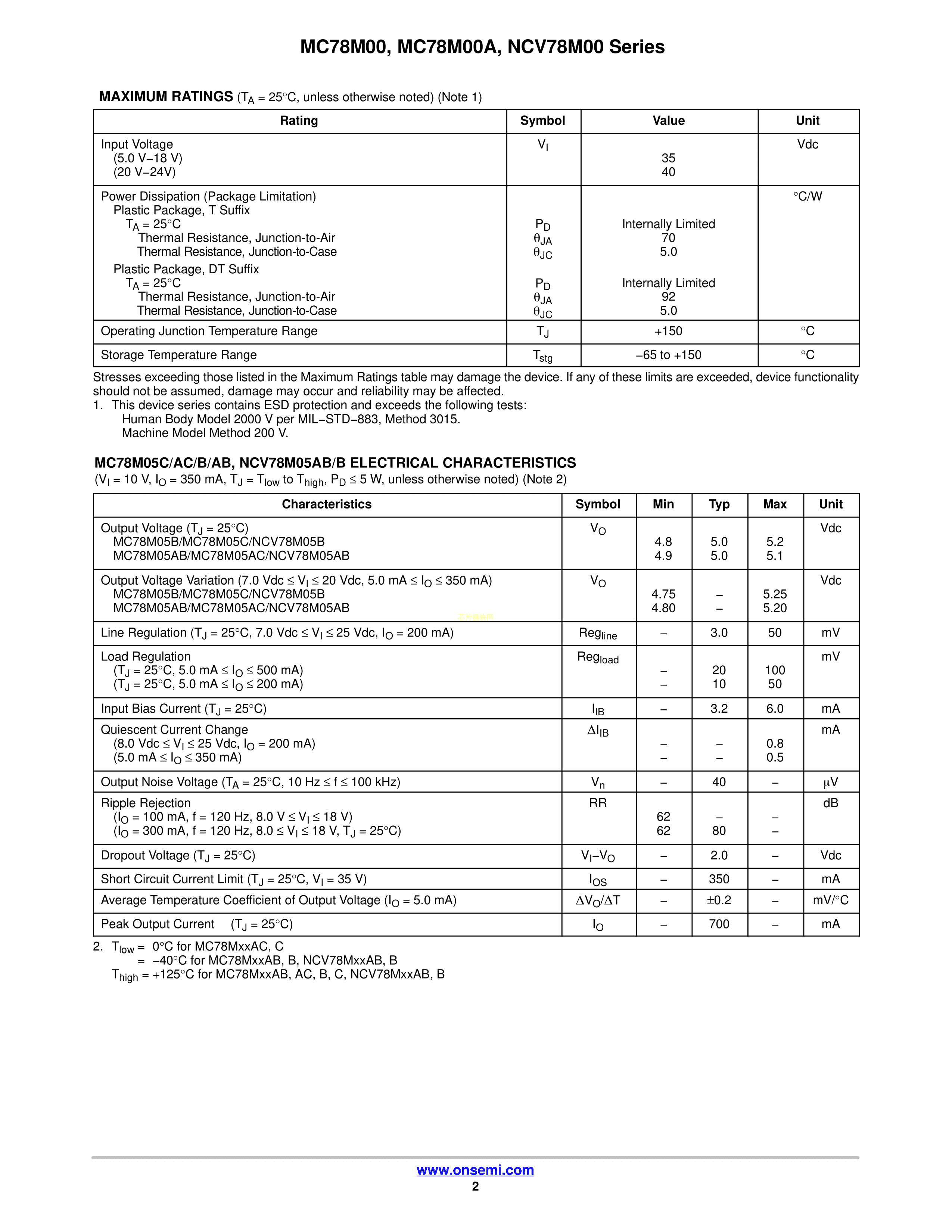 MC78M05ACDTG数据手册TO-252-2(DPAK)封装onsemi(安森美)PDF规格书,