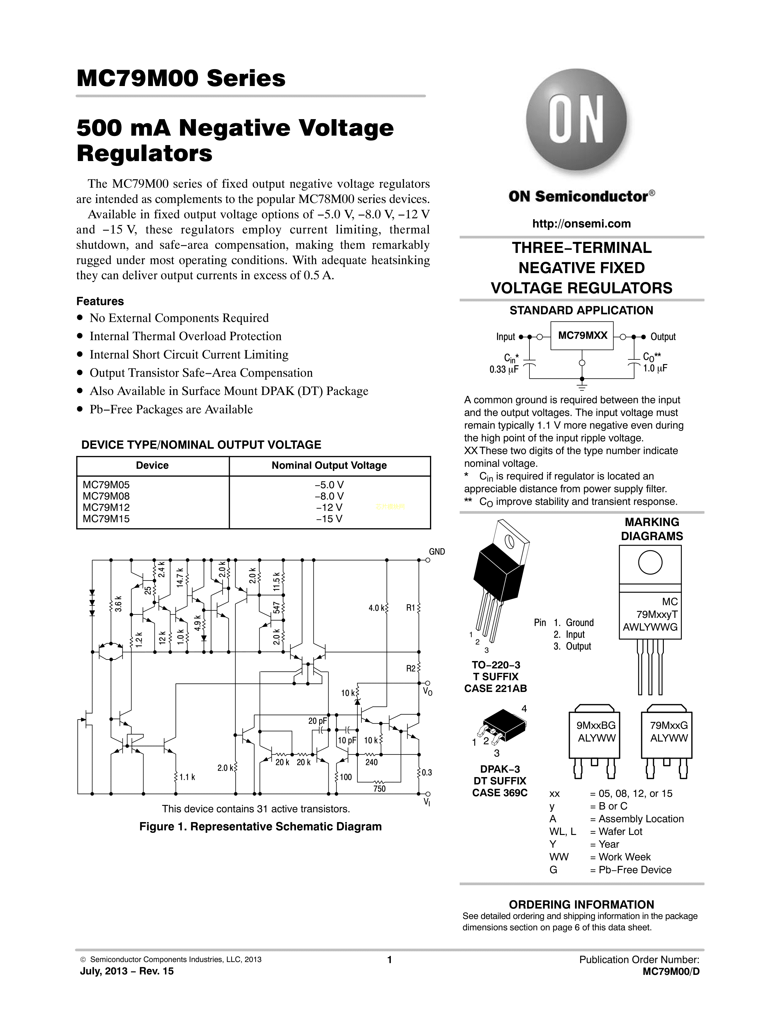 MC79M12CDTG数据手册TO-252-3(DPAK)封装onsemi(安森美)PDF规格书,中