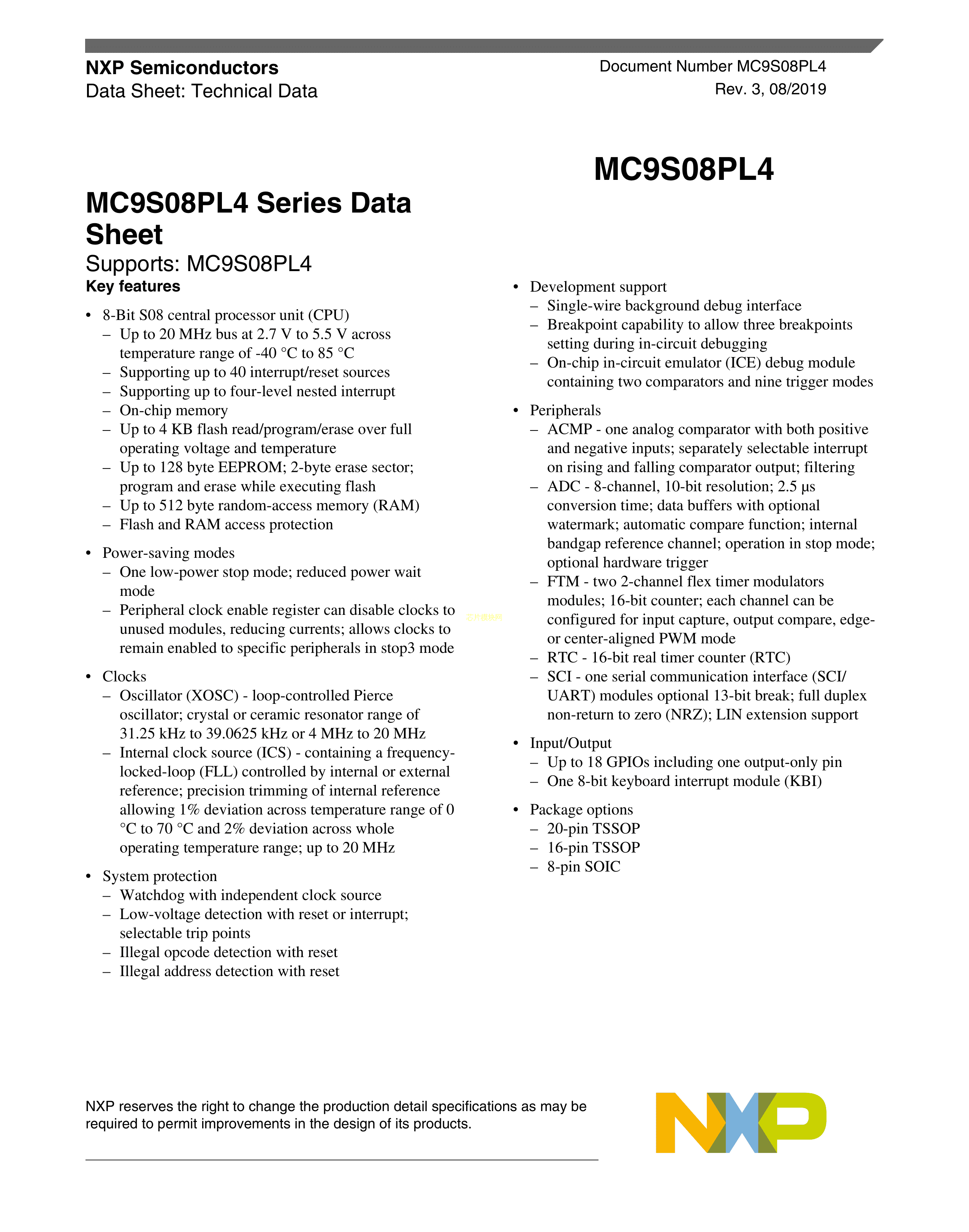 MC9S08PL4CSC数据手册SOIC-8封装NXP(恩智浦)PDF规格书,中英文下载