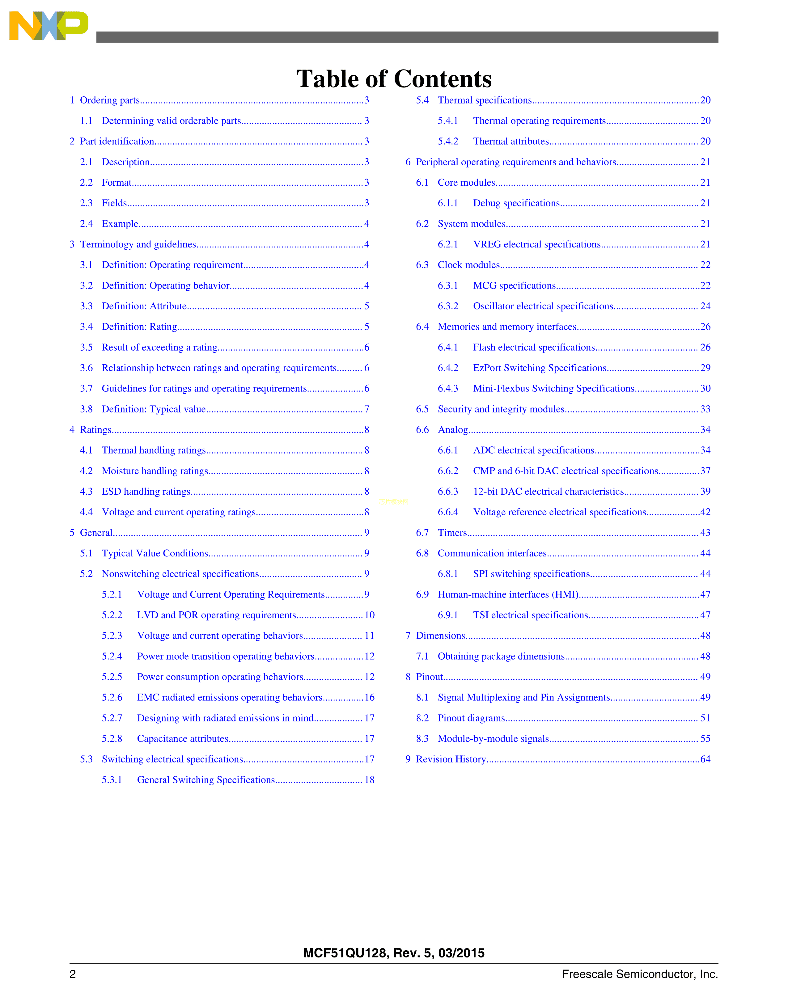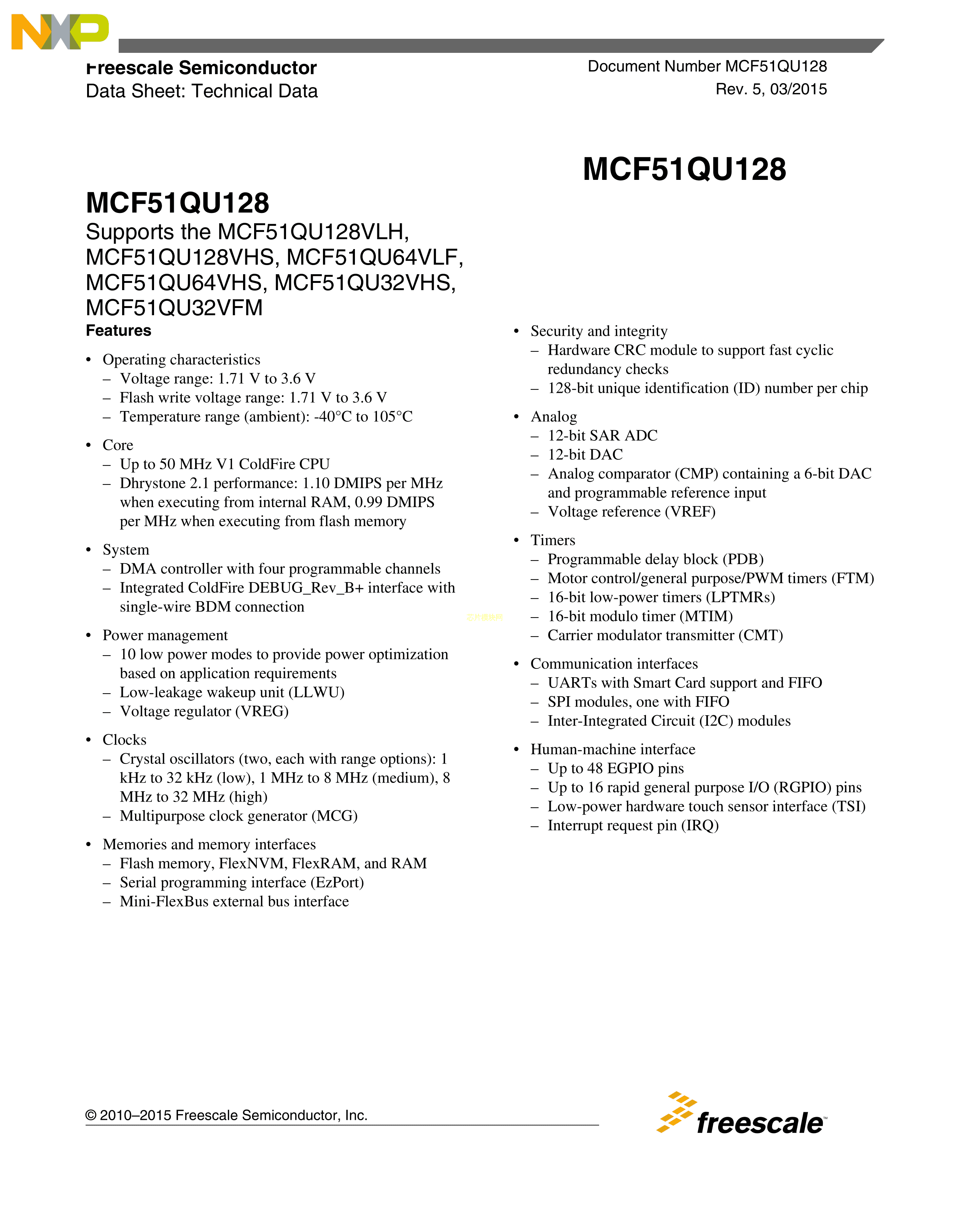 MCF51QU128VLH数据手册LQFP-64(10x10)封装NXP(恩智浦)PDF规格书,中英