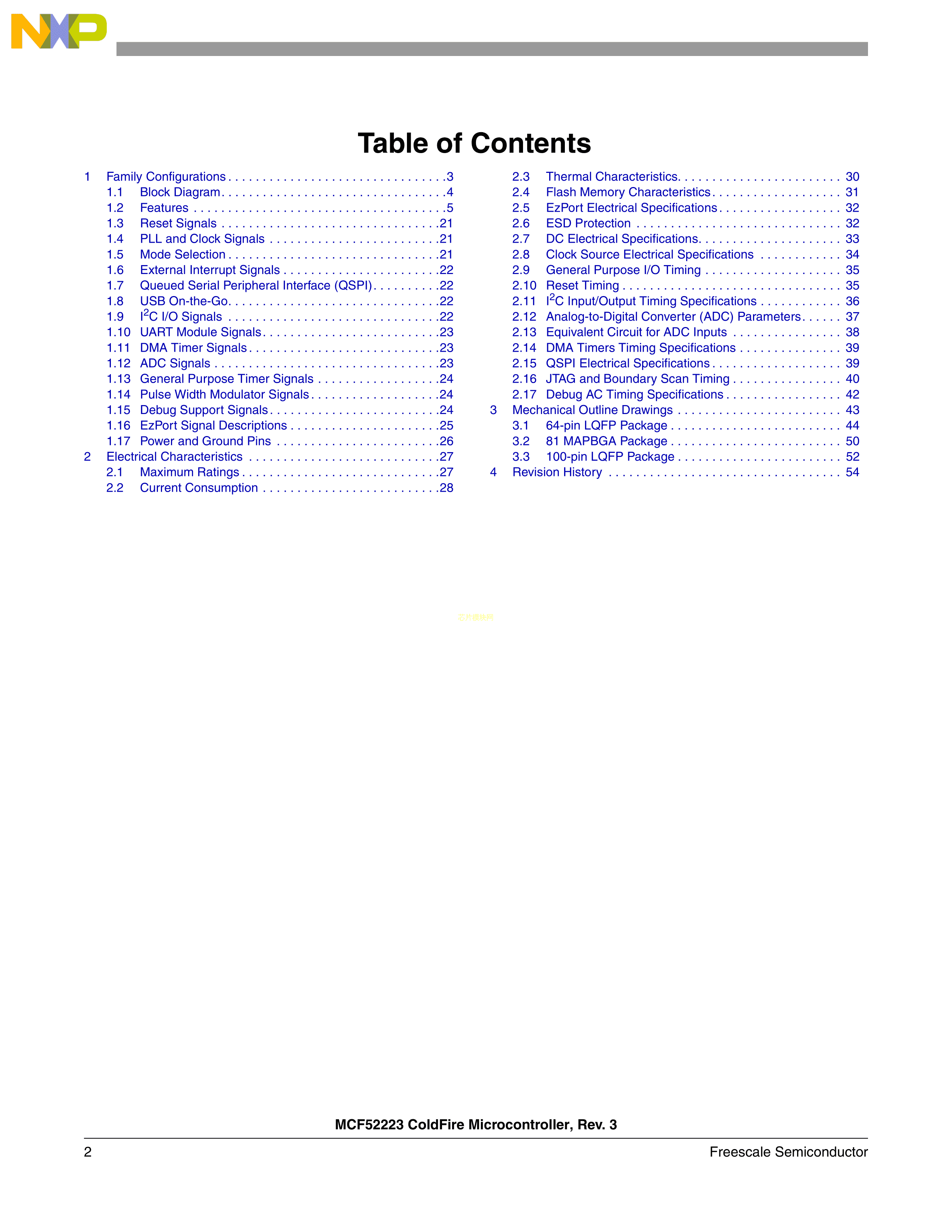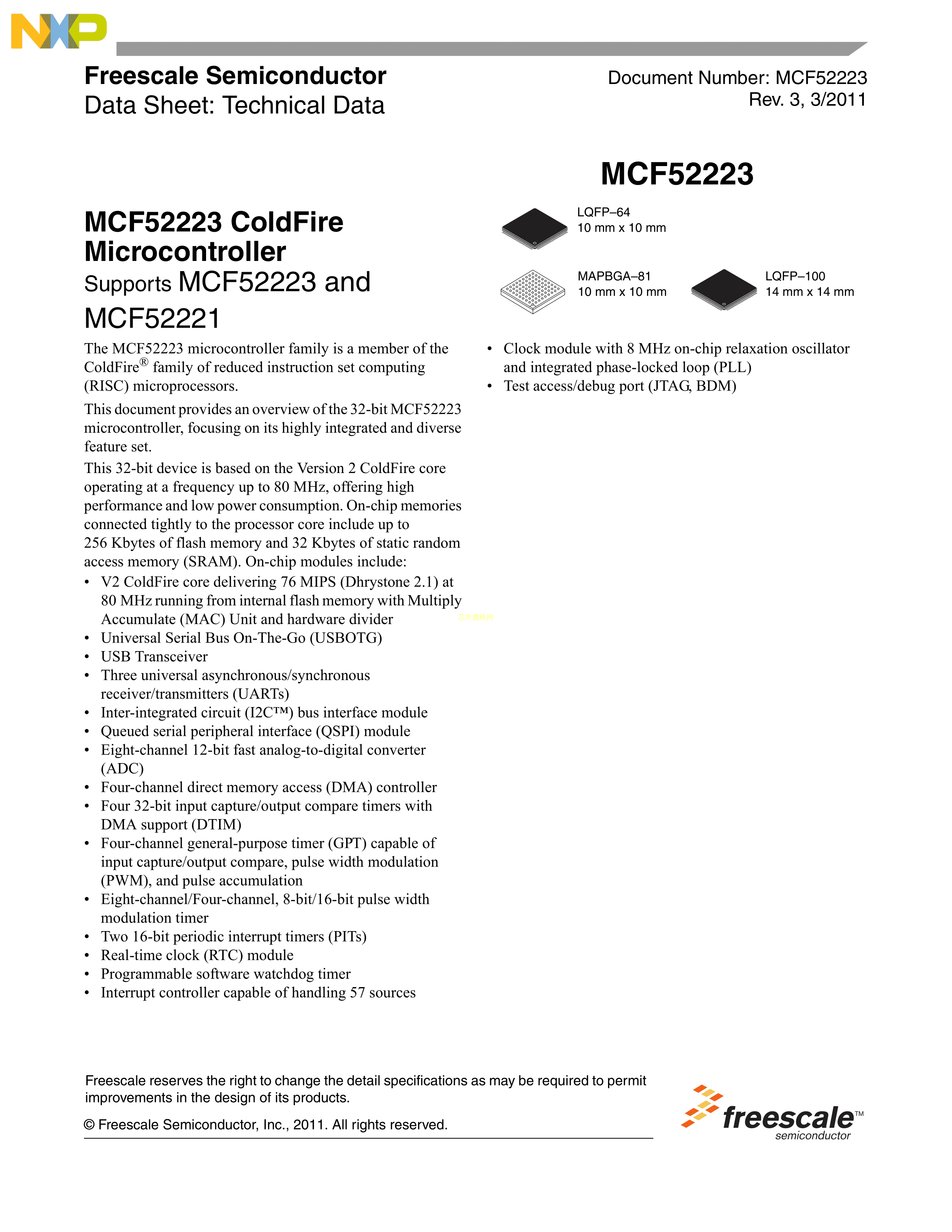 MCF52221CAE66数据手册LQFP-64(10x10)封装NXP(恩智浦)PDF规格书,中英