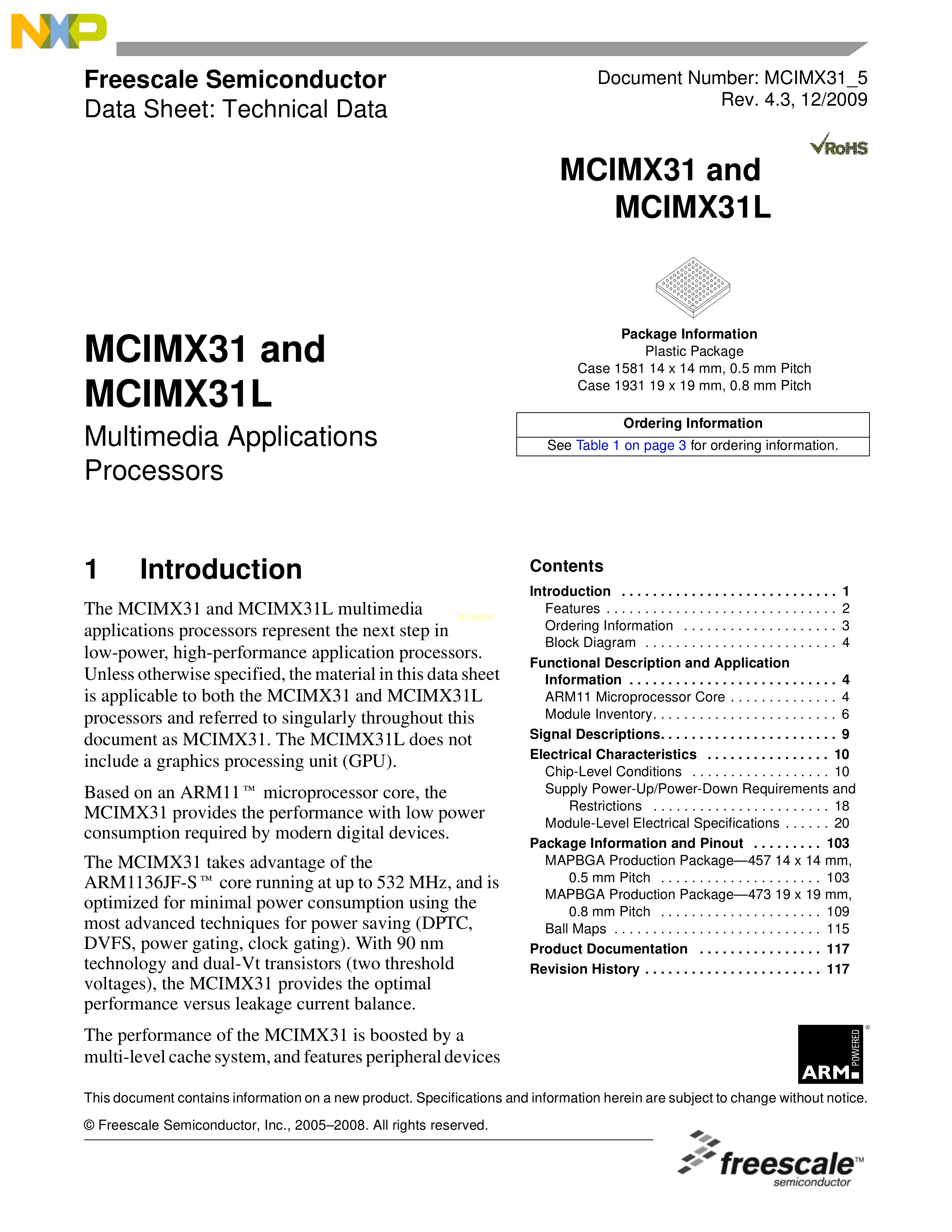 MCIMX31CVKN5D数据手册MAPBGA-457(14x14)封装NXP(恩智浦)PDF规格书