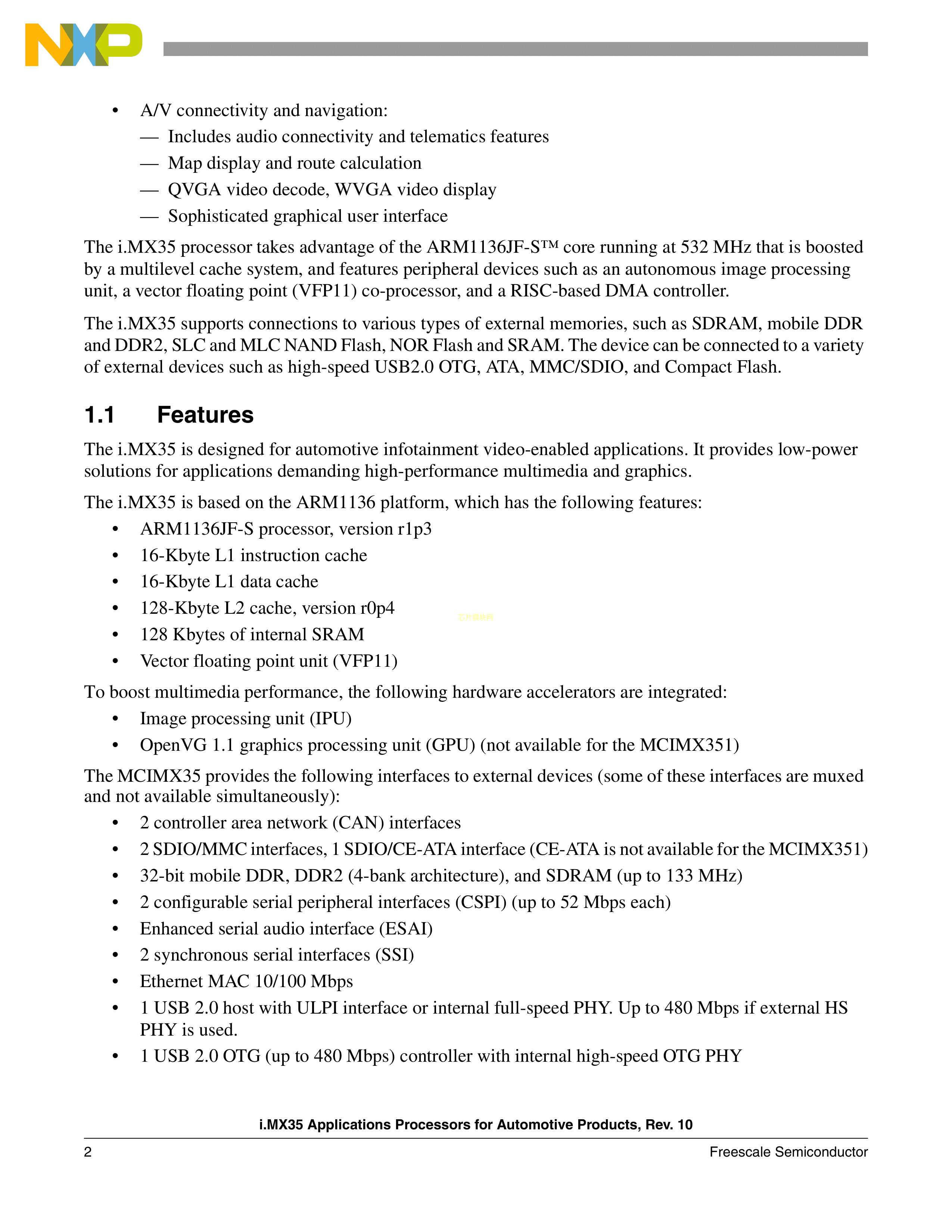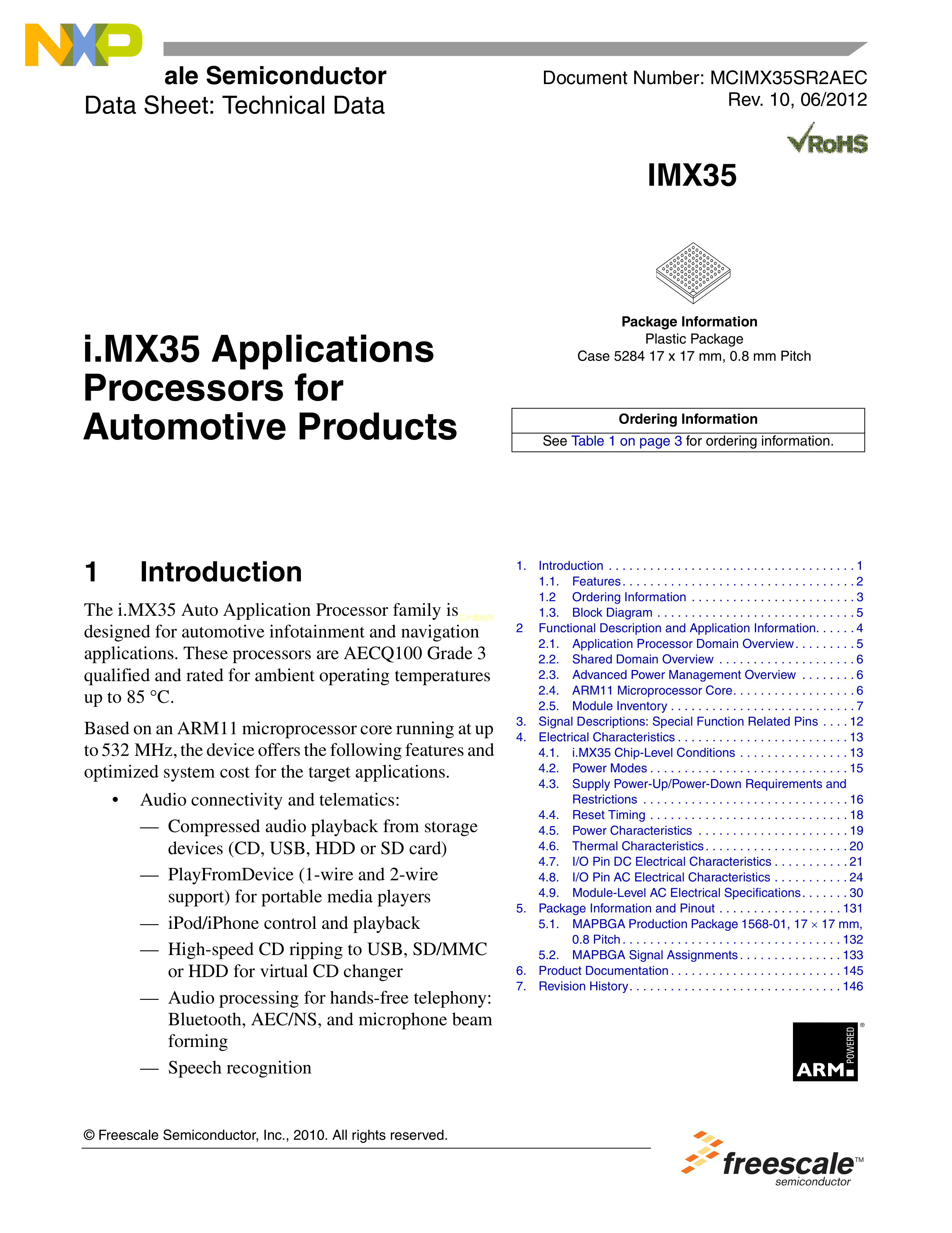 MCIMX351AVM4BR2数据手册MAPBGA-400(17x17)封装NXP(恩智浦)PDF规