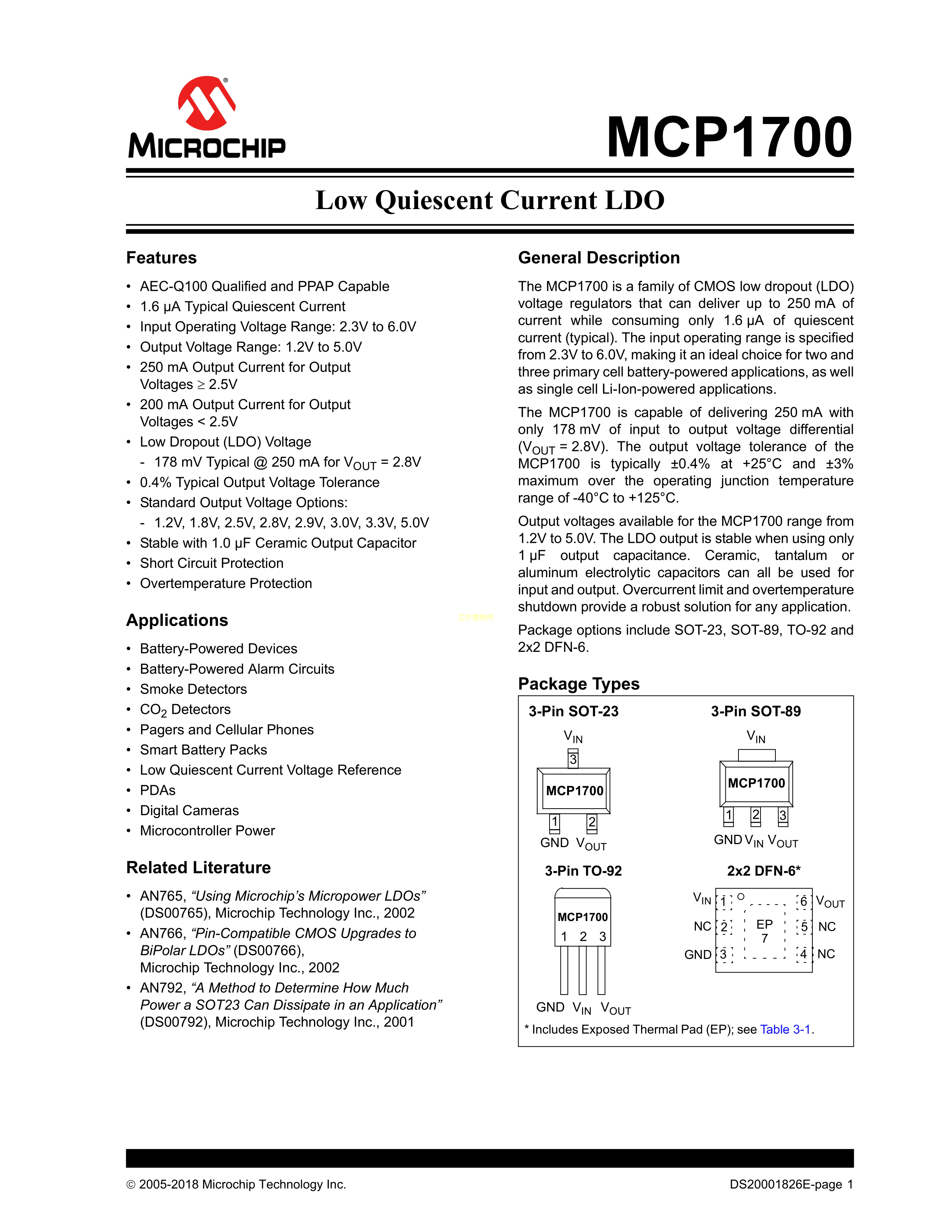 MCP1700T-1502E-TT数据手册SOT-23-3封装MICROCHIP(美国微芯)PDF规