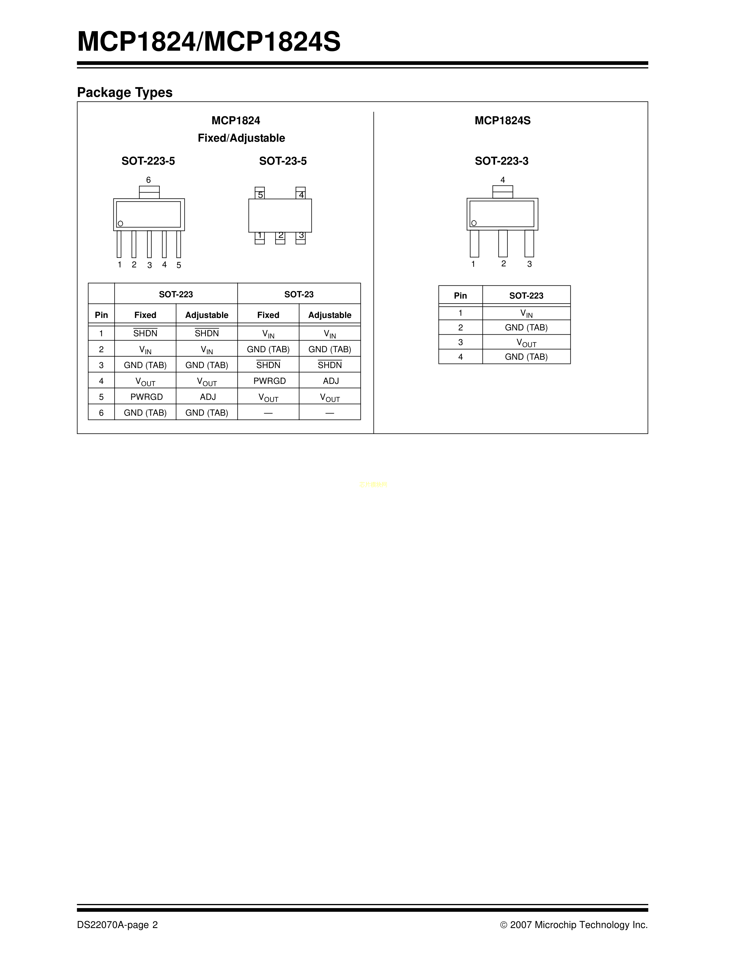 MCP1824T-ADJE-OT数据手册SOT-23-5封装MICROCHIP(美国微芯)PDF规格