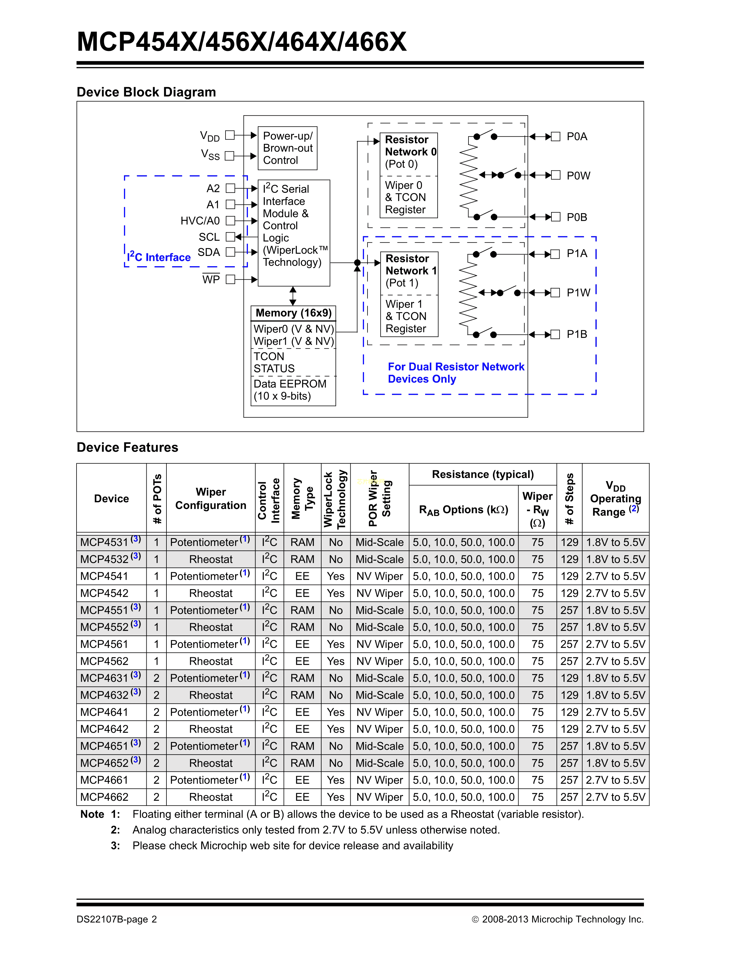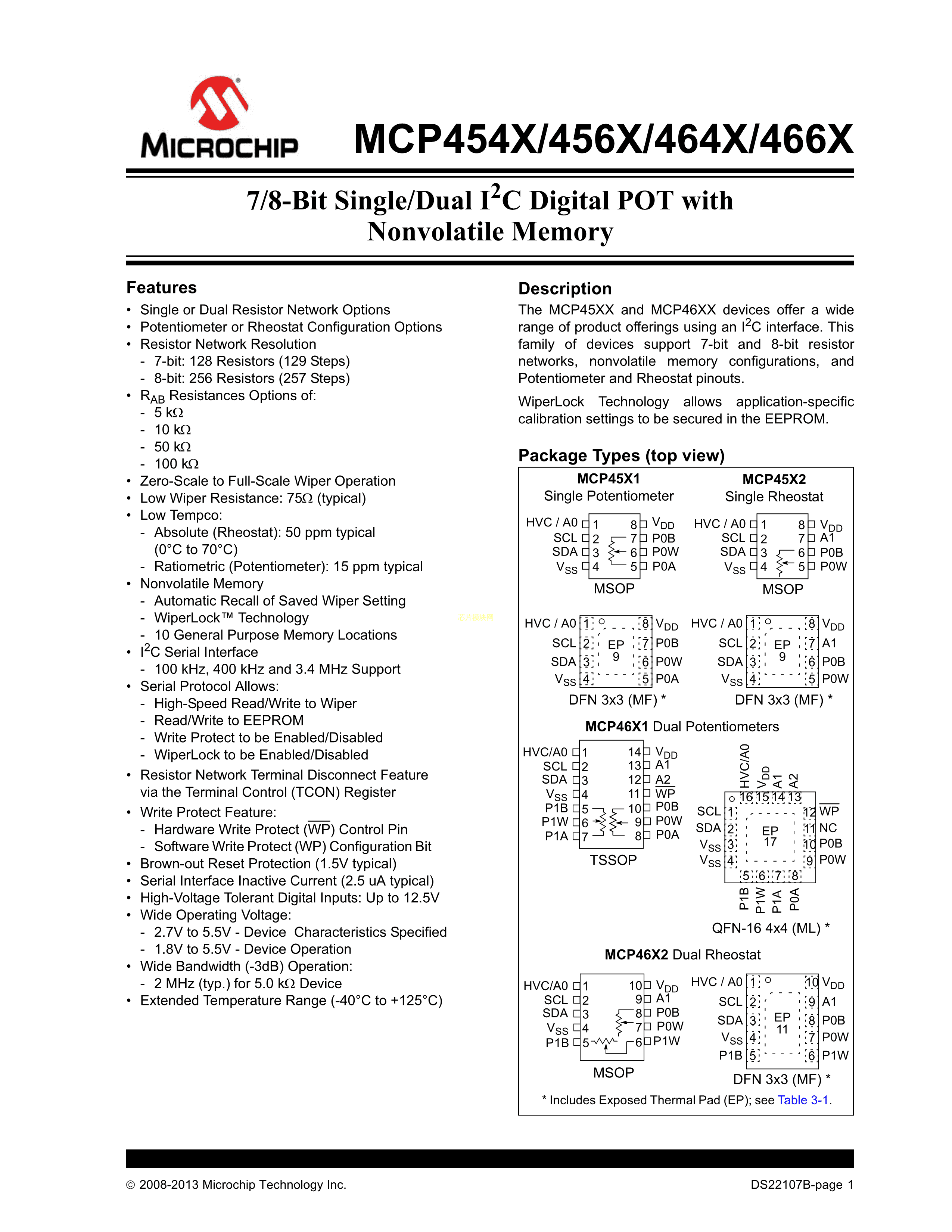 MCP4541-103E-MS数据手册MSOP-8封装MICROCHIP(美国微芯)PDF规格书,中