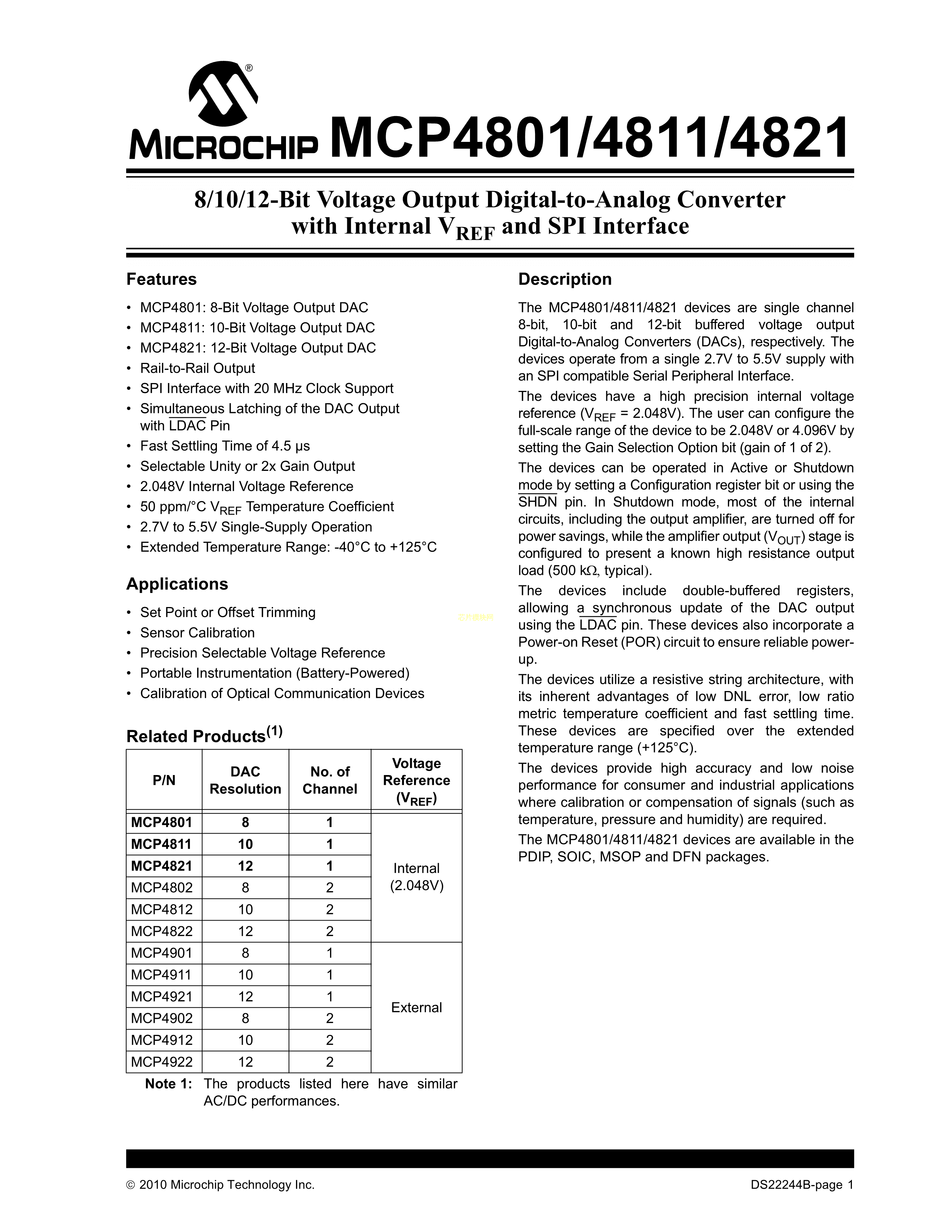 MCP4801-E-SN数据手册SOIC-8_150mil封装MICROCHIP(美国微芯)PDF规