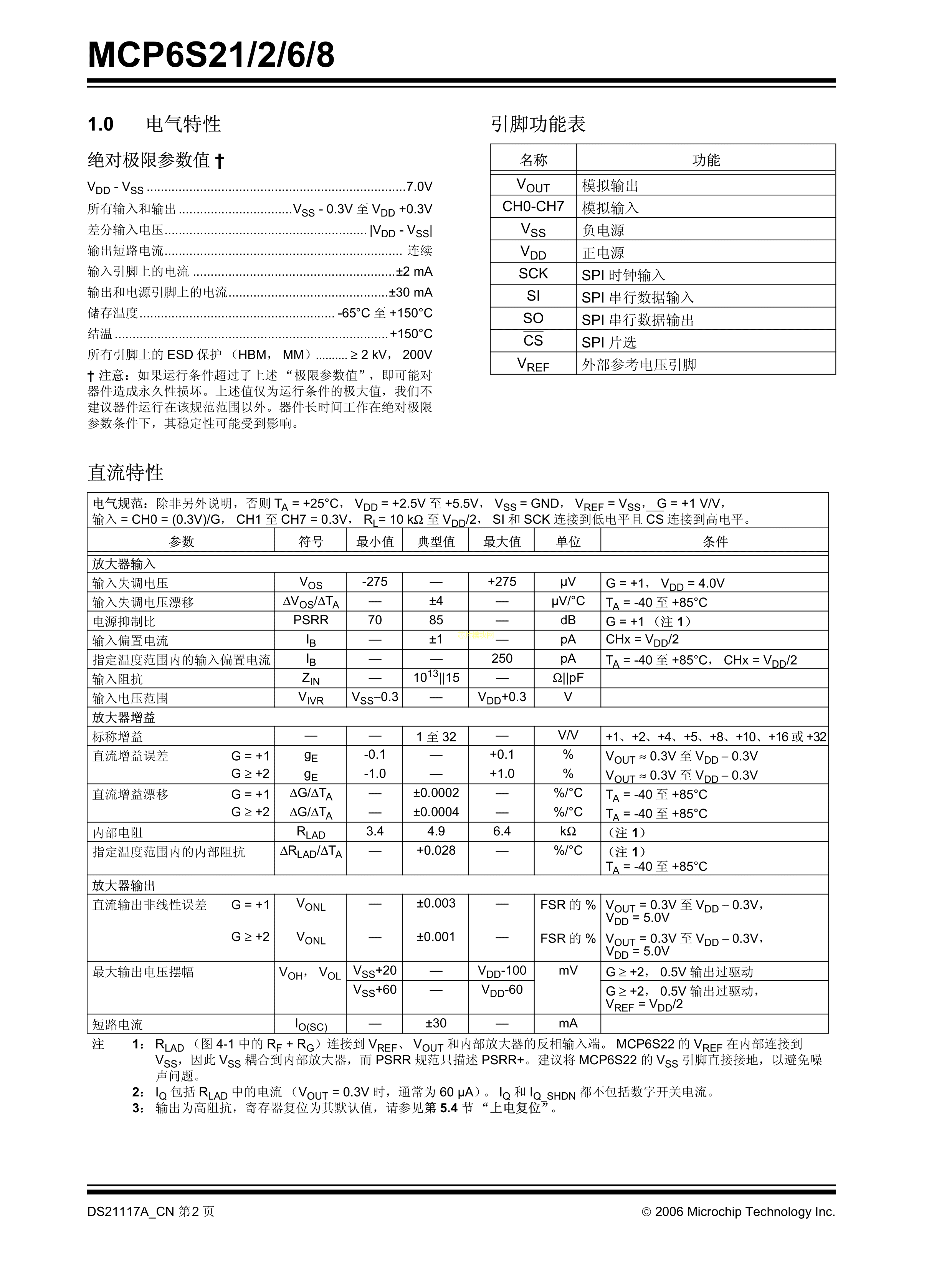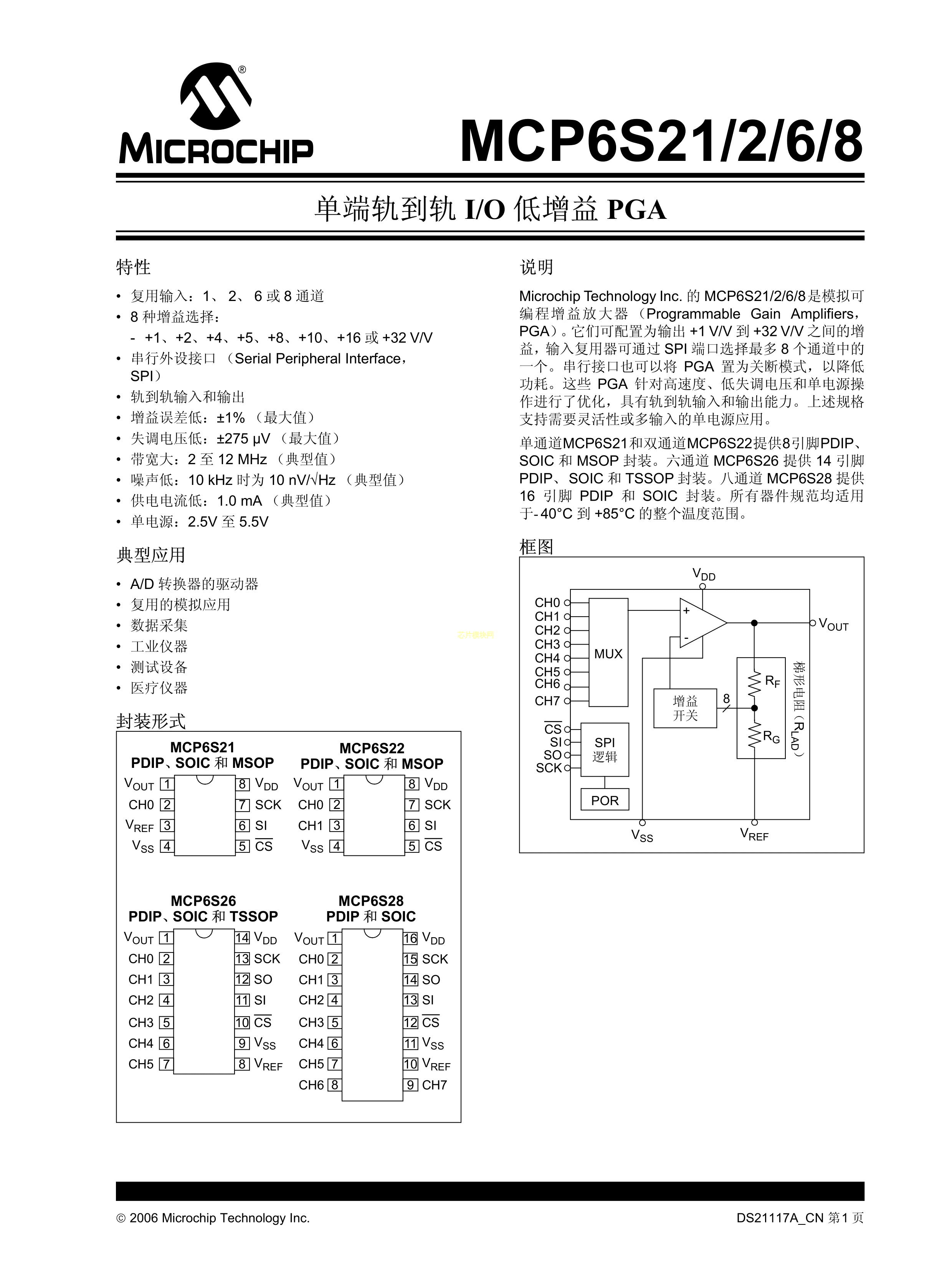 MCP6S21-I-SN数据手册SOIC-8_150mil封装MICROCHIP(美国微芯)PDF规