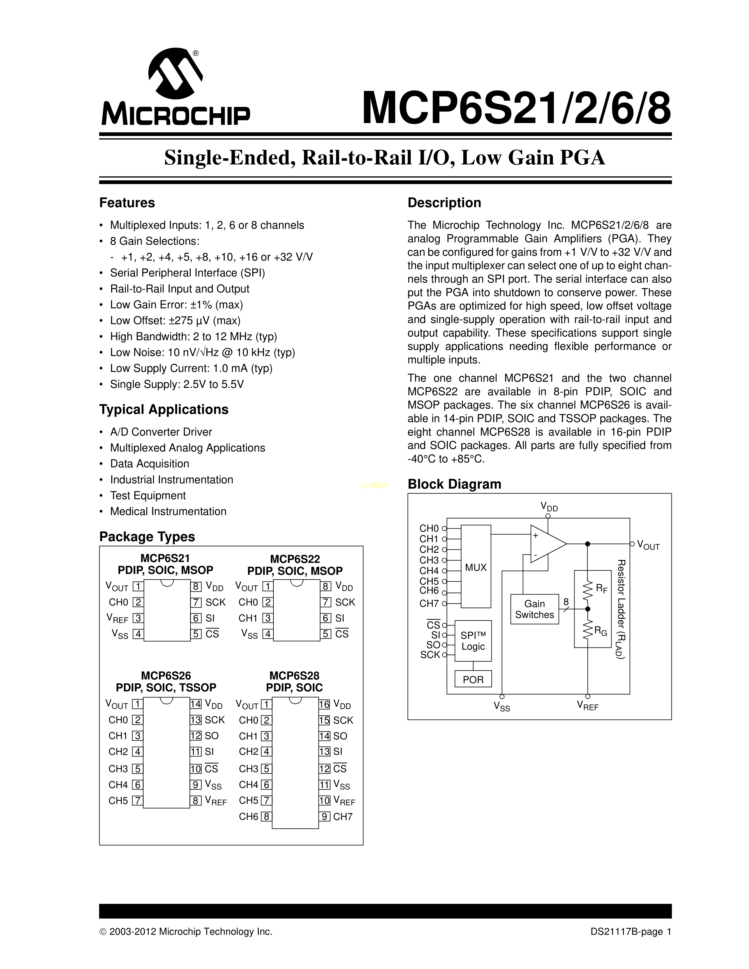 MCP6S26-I-P数据手册PDIP-14封装MICROCHIP(美国微芯)PDF规格书,中英文下