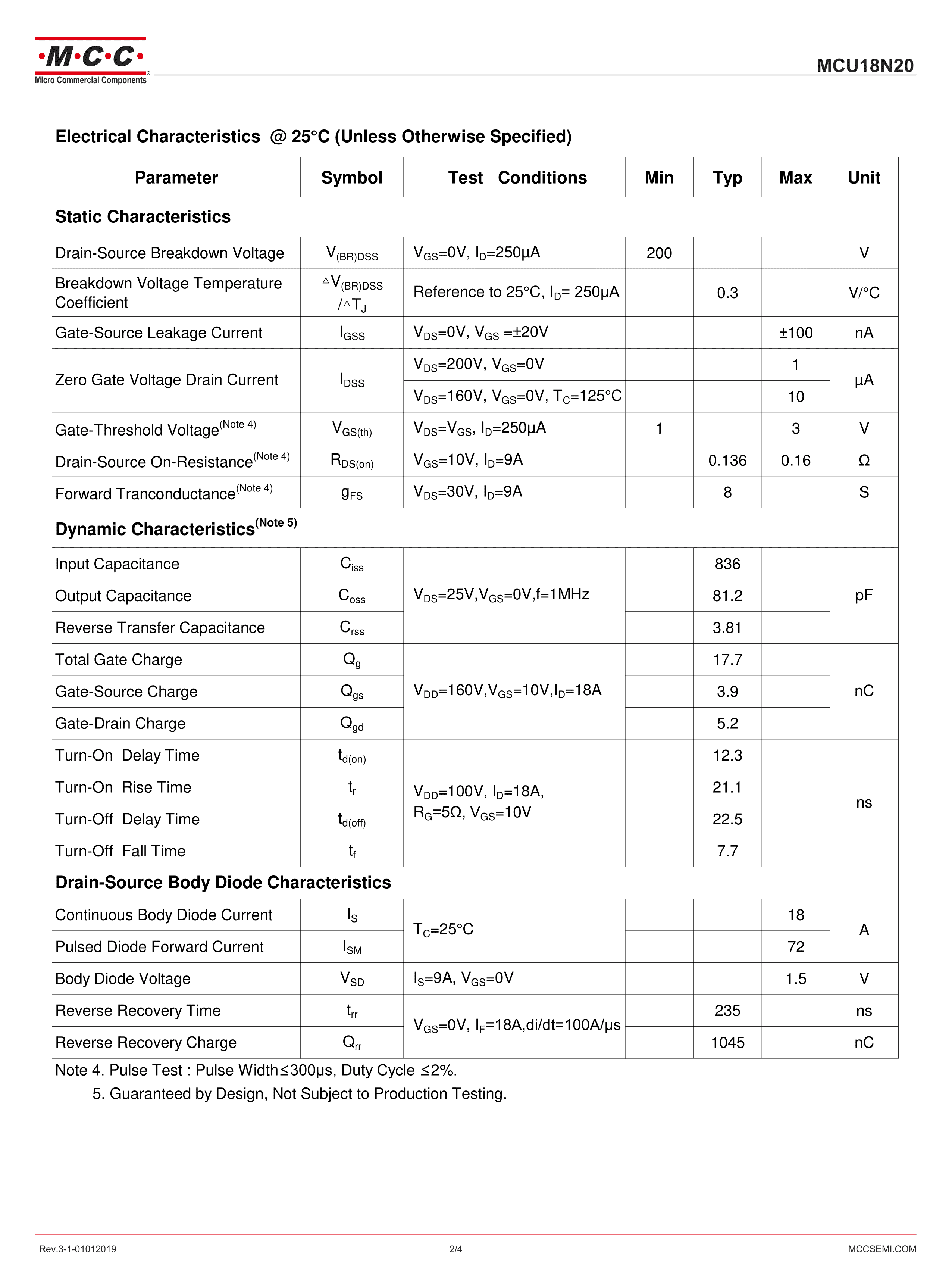 MCU18N20-TP数据手册DPAK封装MCC(美微科)PDF规格书,中英文下载