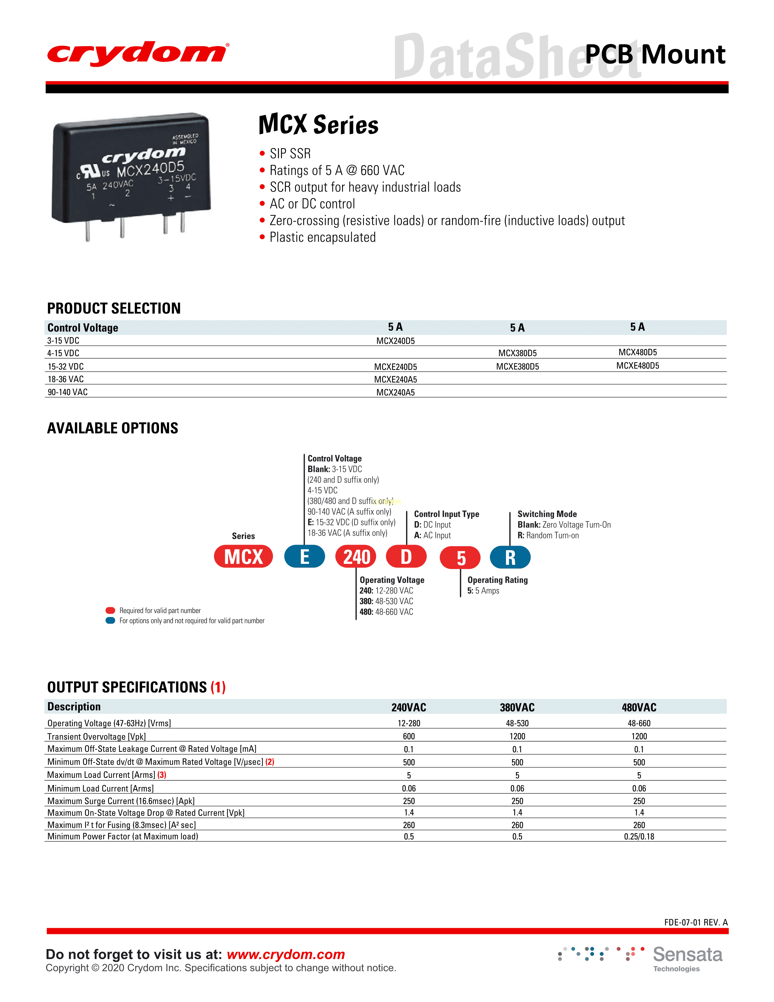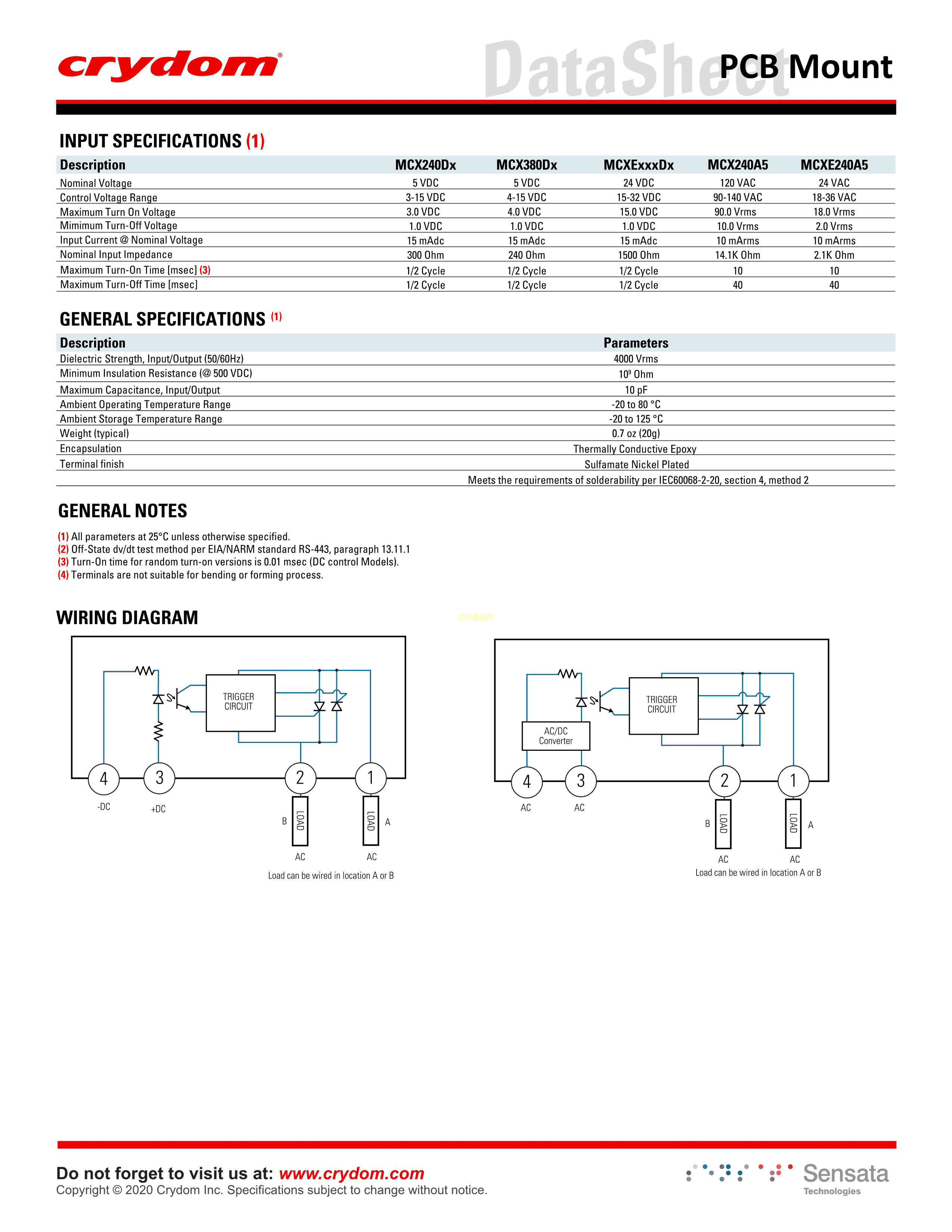 MCX240A5R数据手册SIP-4封装SensataPDF规格书,中英文下载