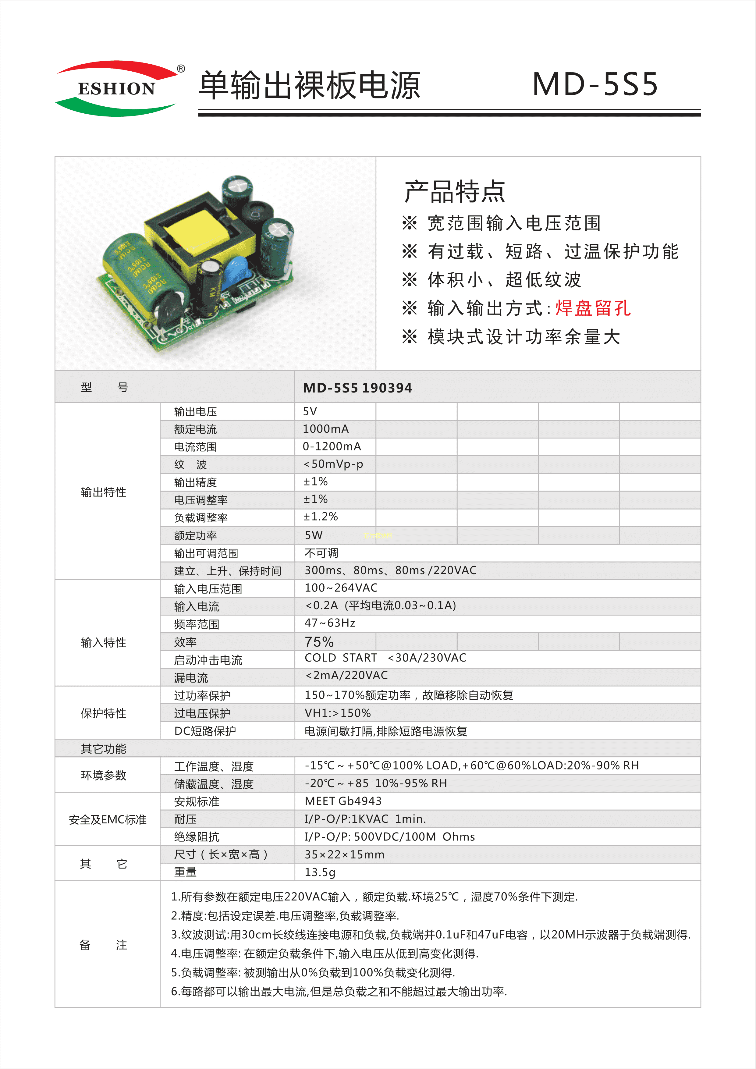 MD-5S5190394数据手册-封装ESHION(禹舜)PDF规格书,中英文下载