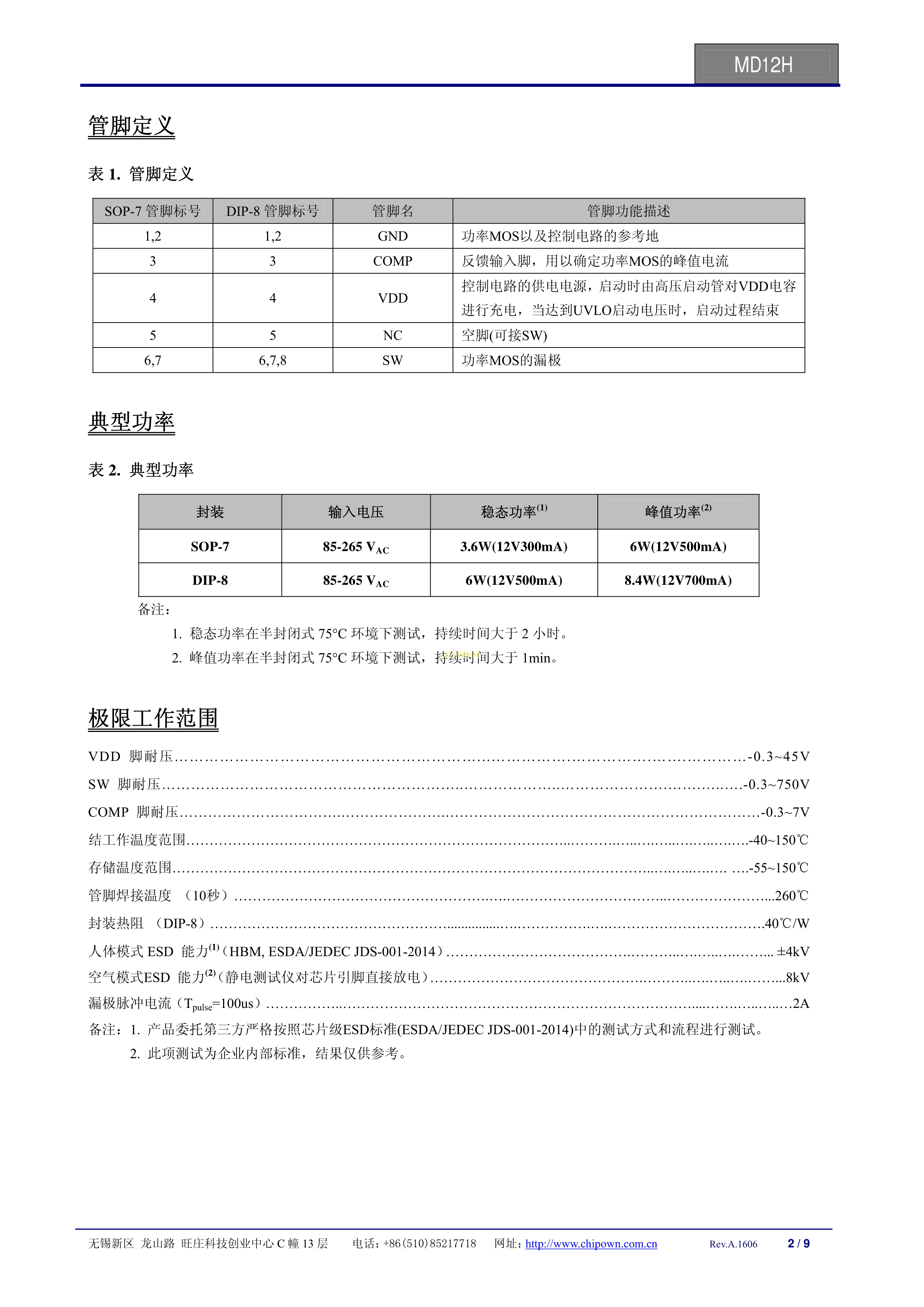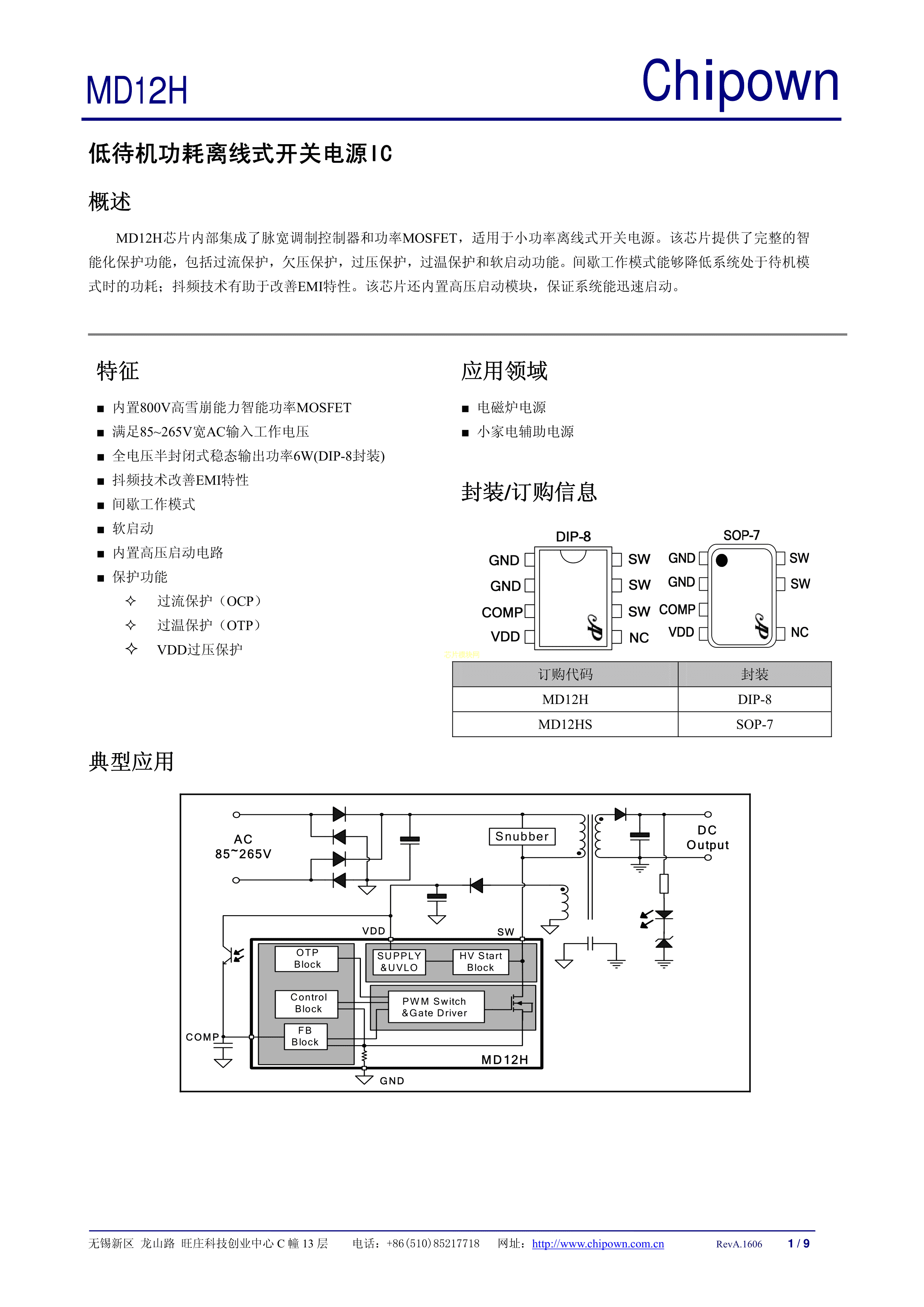 MD12HS数据手册SOP-7封装chipown(芯朋微电子)PDF规格书,中英文下载