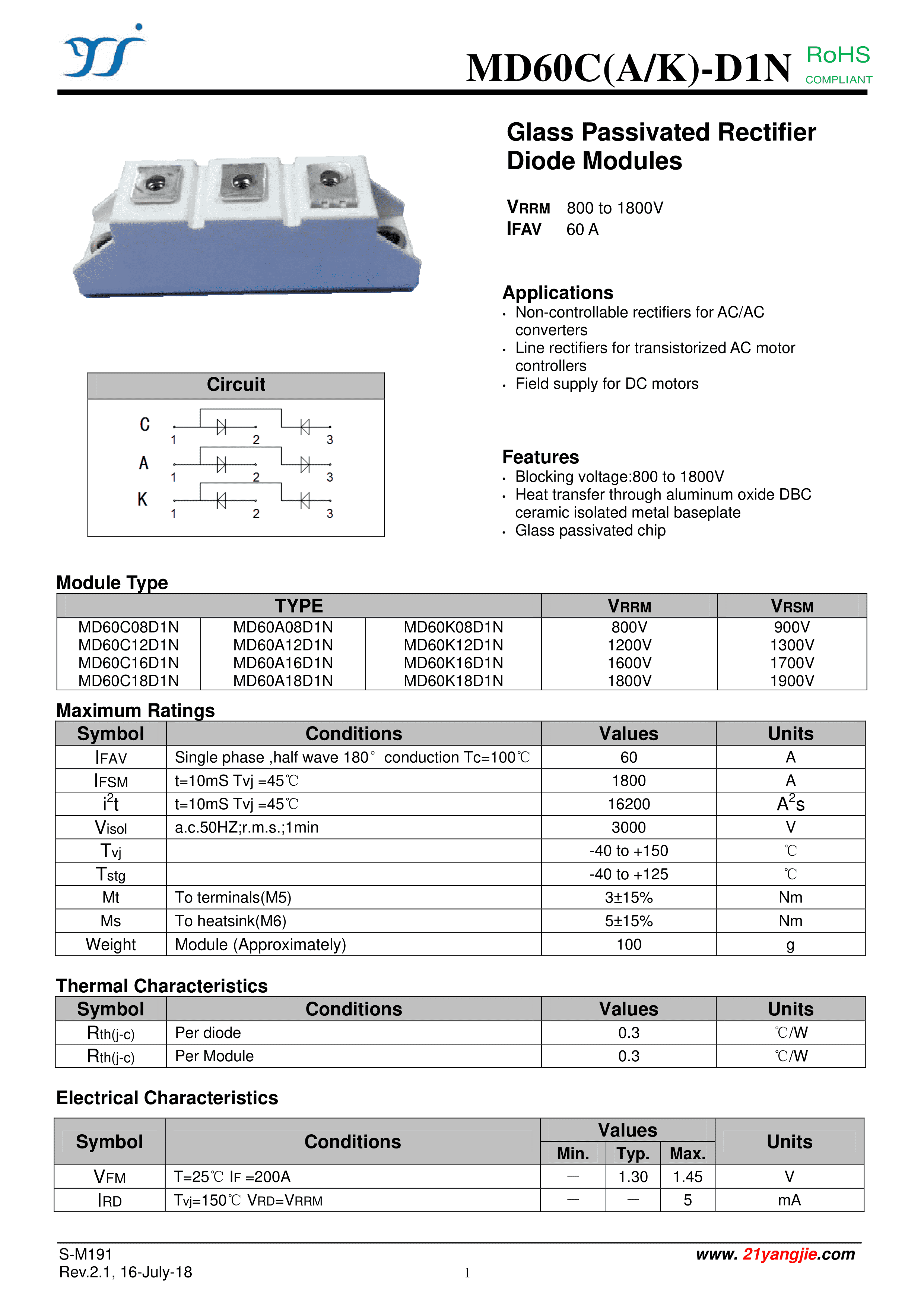 MD60C16D1N数据手册D1N封装YANGJIE(扬杰)PDF规格书,中英文下载