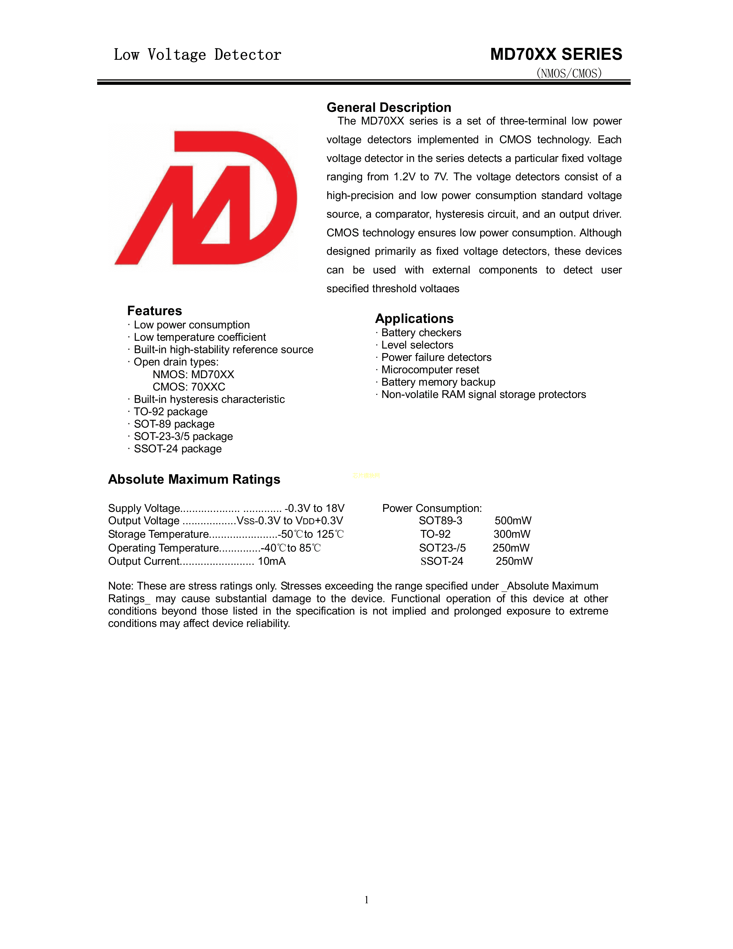 MD7070数据手册SOT-89-3封装明达微PDF规格书,中英文下载