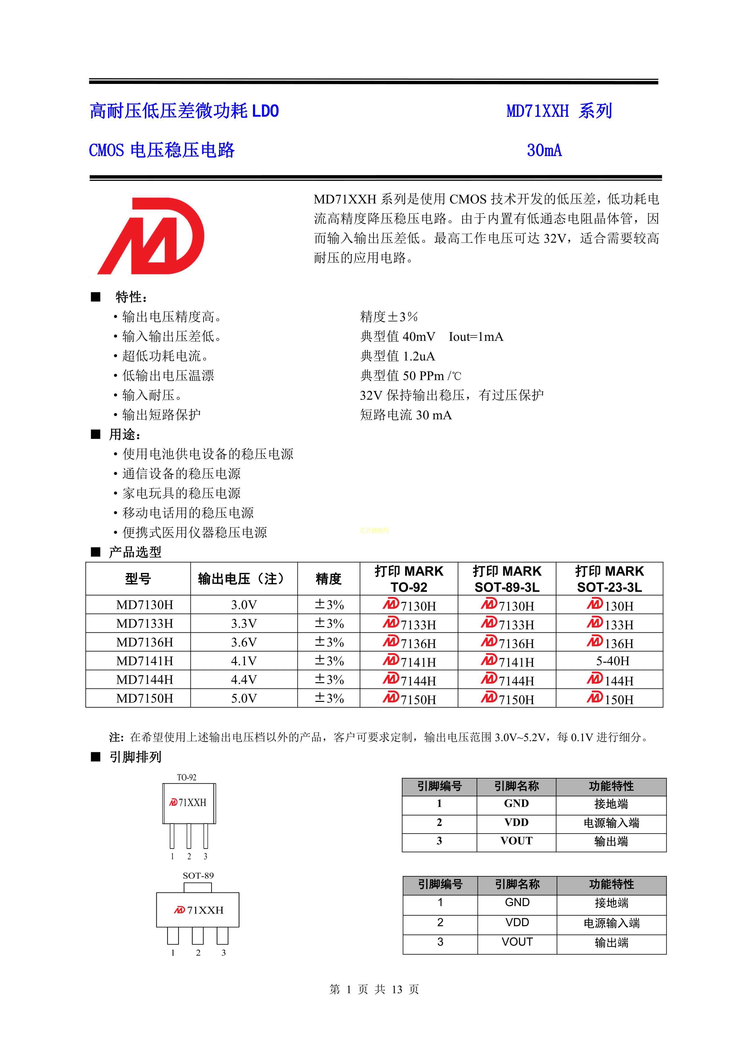 MD7150H数据手册SOT-89-3封装明达微PDF规格书,中英文下载