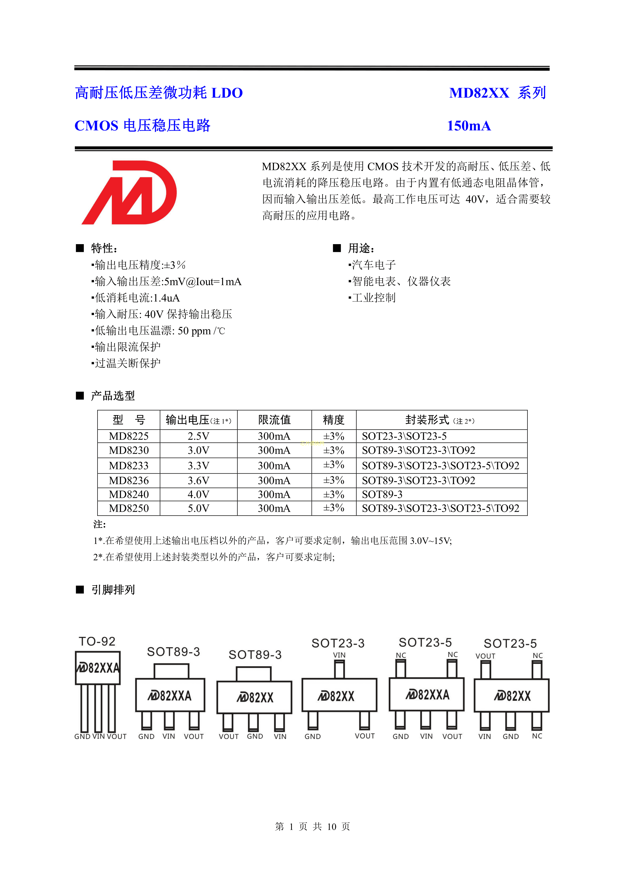 MD8250A数据手册SOT-23-3L封装明达微PDF规格书,中英文下载