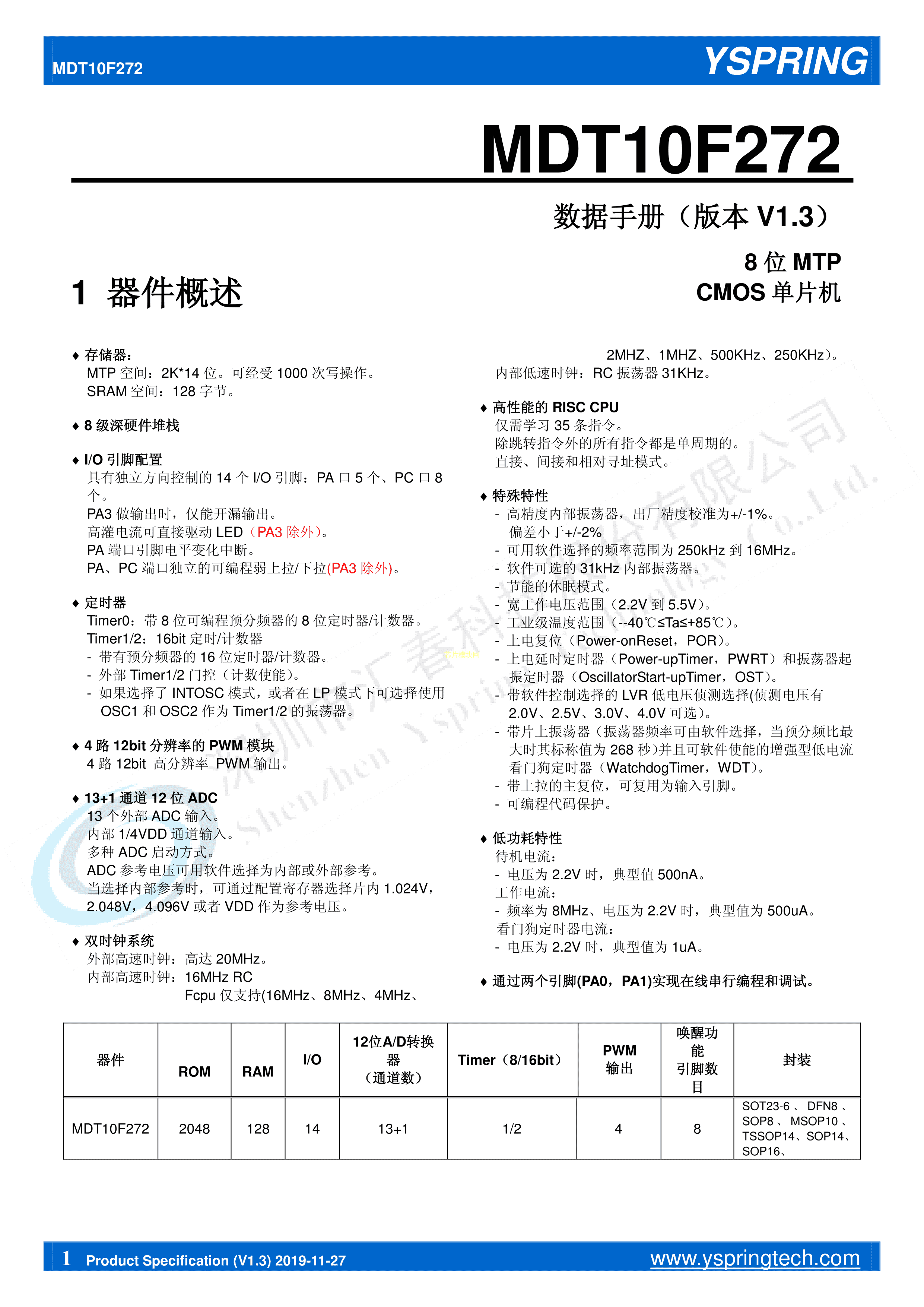 MDT10F272S16数据手册SOP-16封装MDT(台湾麦肯)PDF规格书,中英文下载