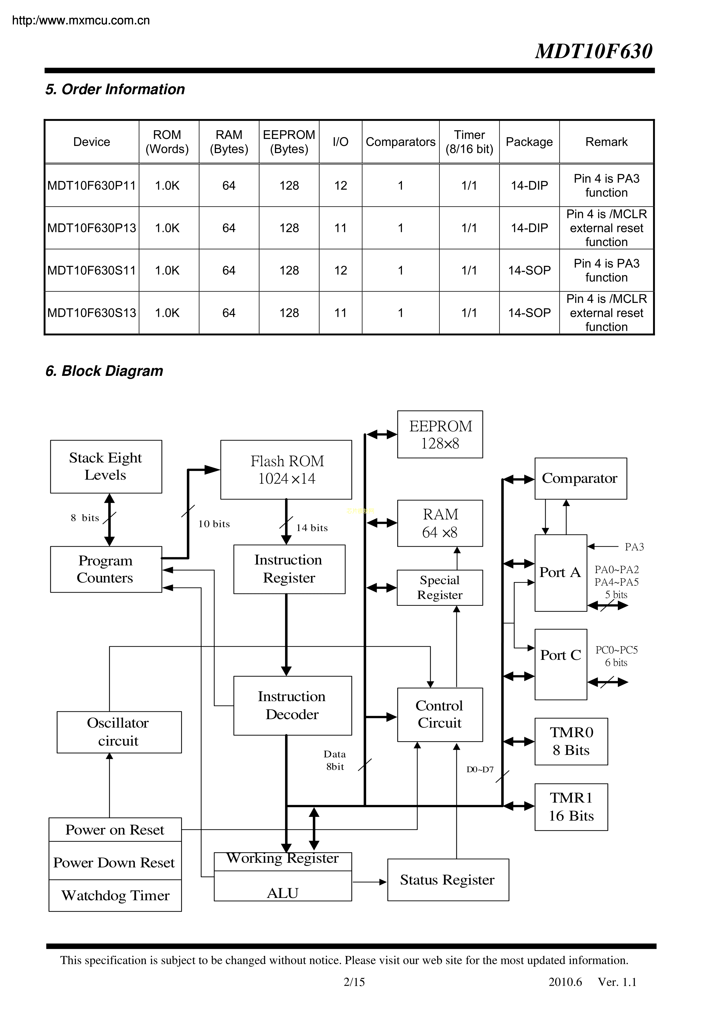MDT10F630P11数据手册DIP-14封装MDT(台湾麦肯)PDF规格书,中英文下载