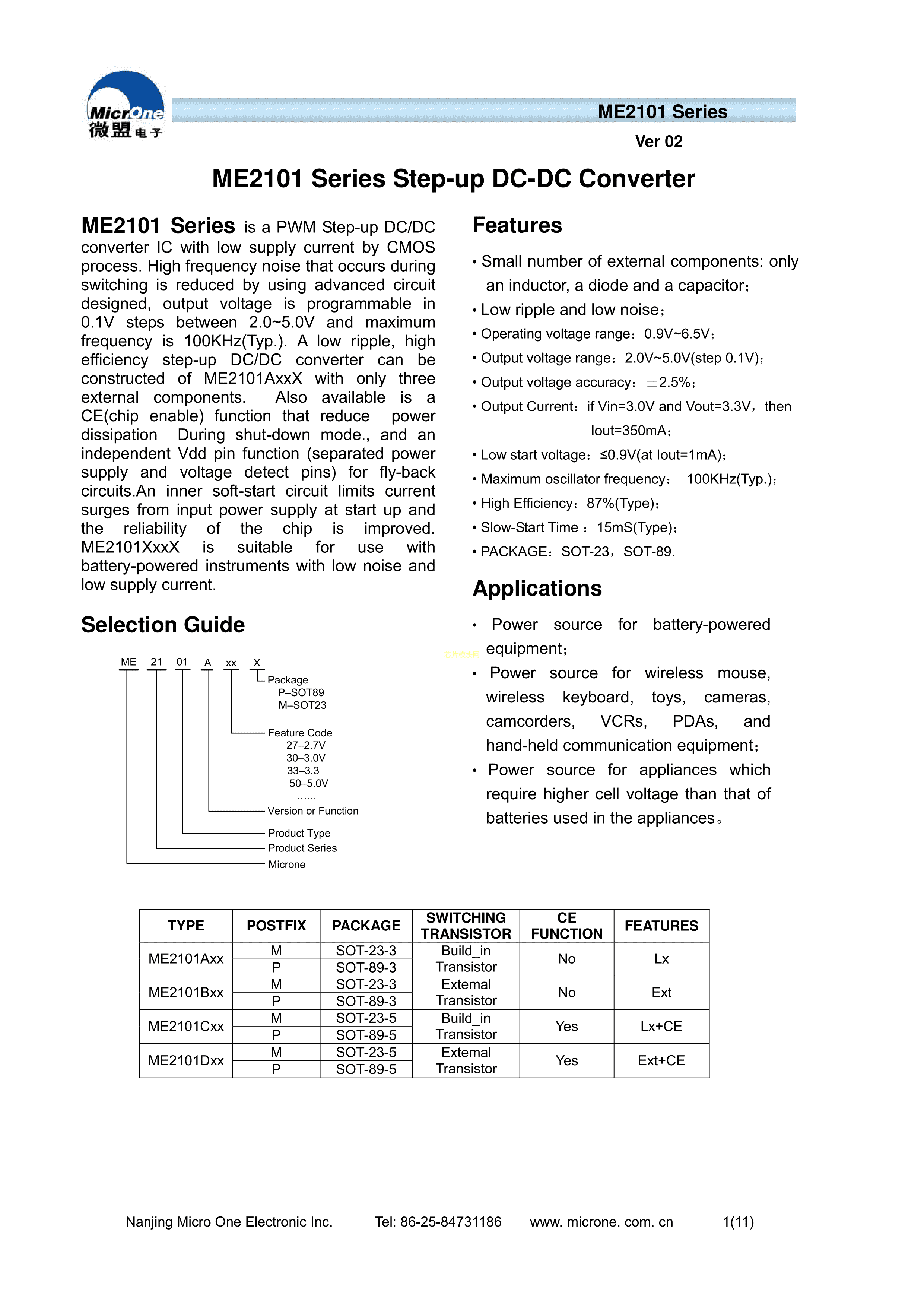 ME2101A33MG数据手册SOT-23-3L封装MICRONE(南京微盟)PDF规格书,中英文下