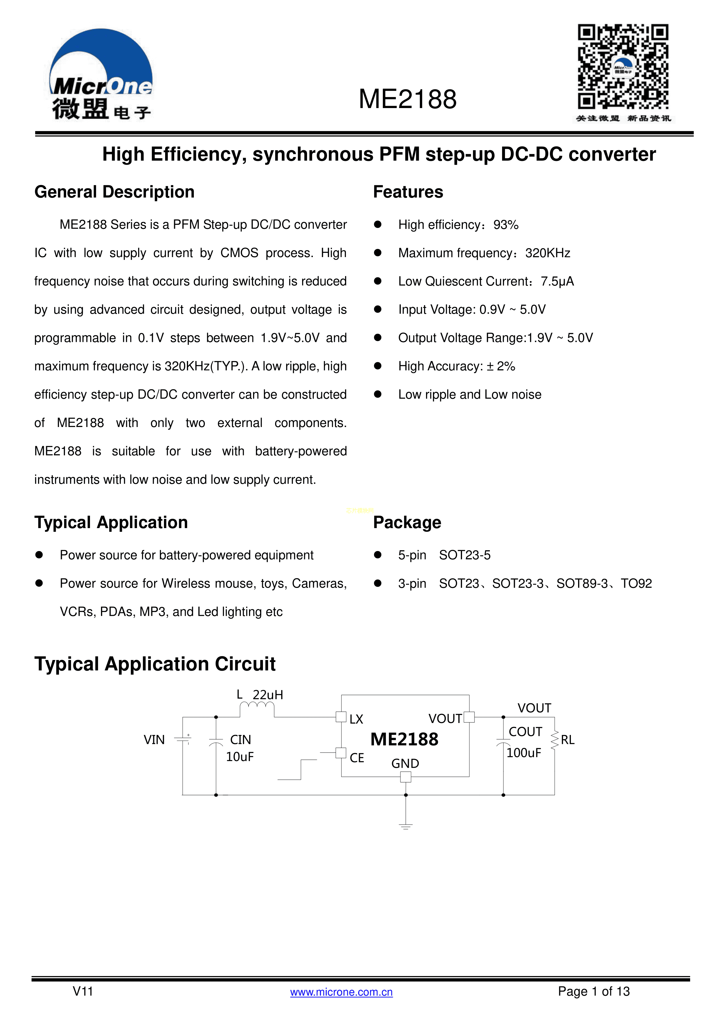 ME2188A25M3G数据手册SOT-23-3封装MICRONE(南京微盟)PDF规格书,中英文下