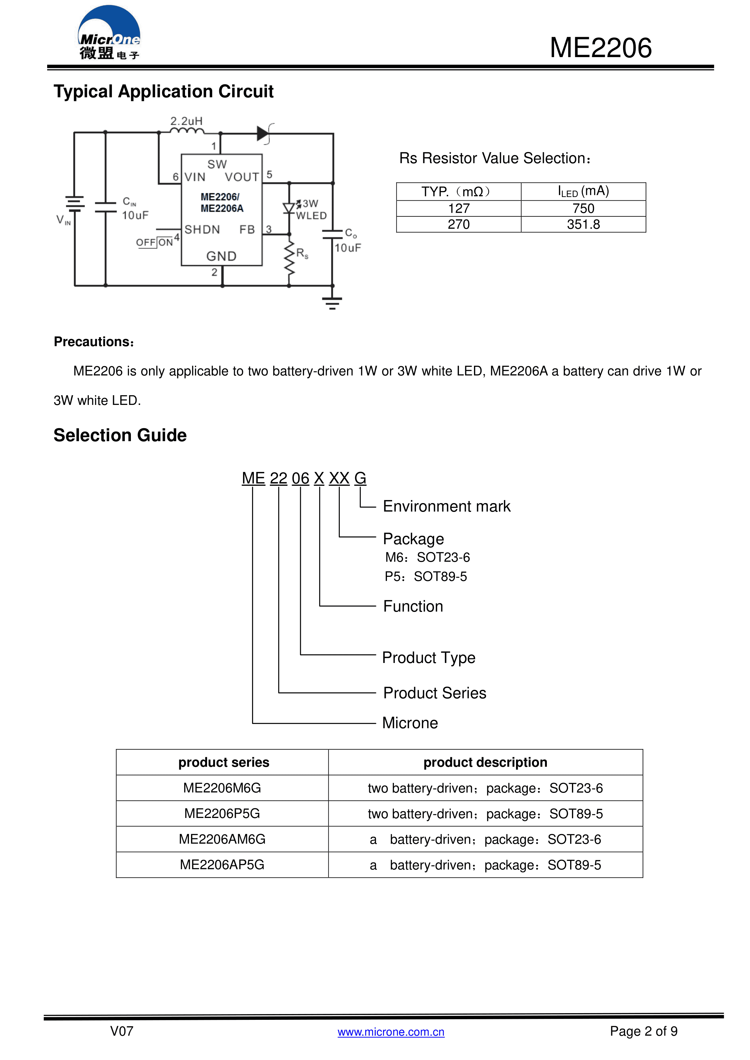 ME2206AM6G数据手册SOT-23-6封装MICRONE(南京微盟)PDF规格书,中英文下载