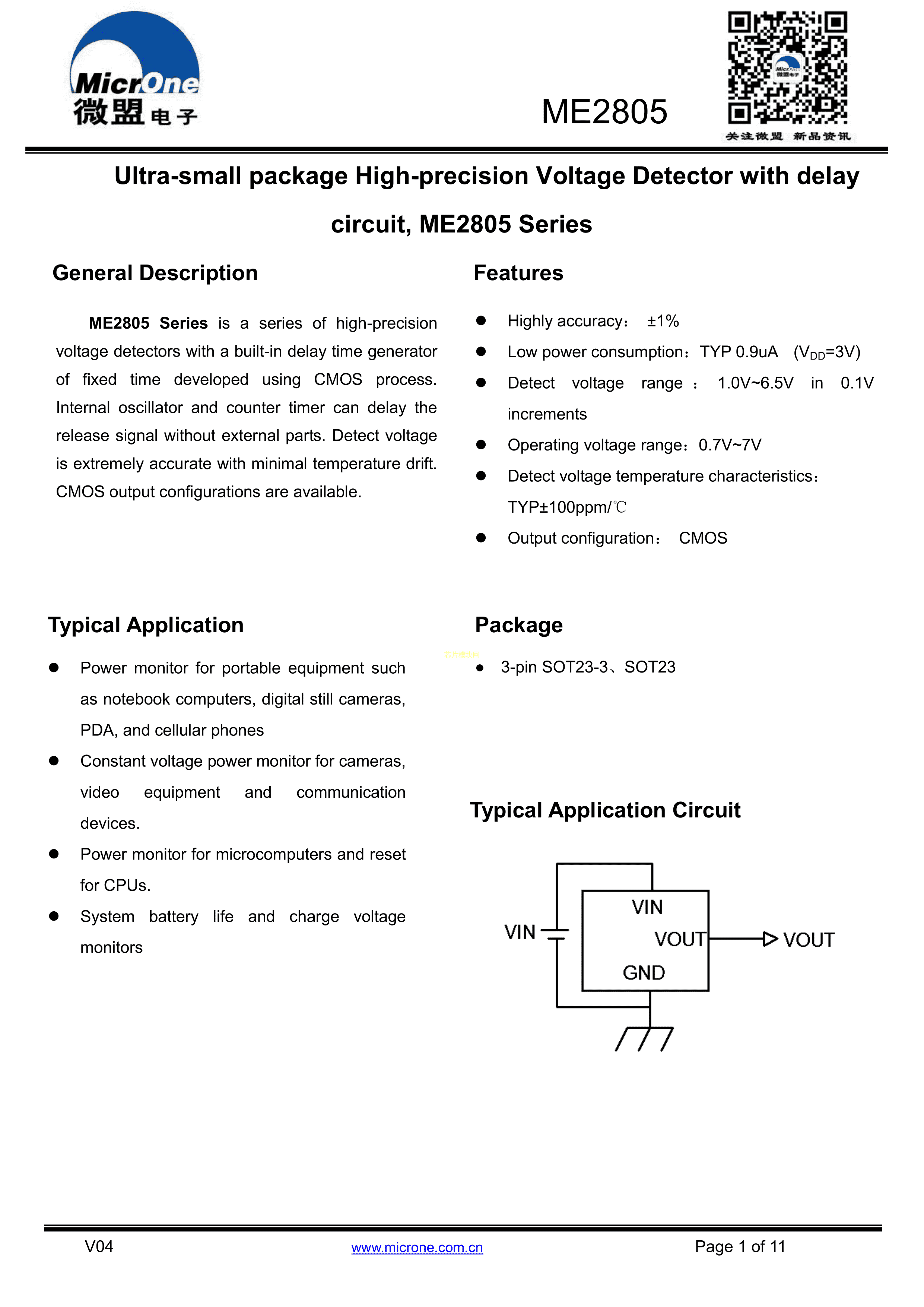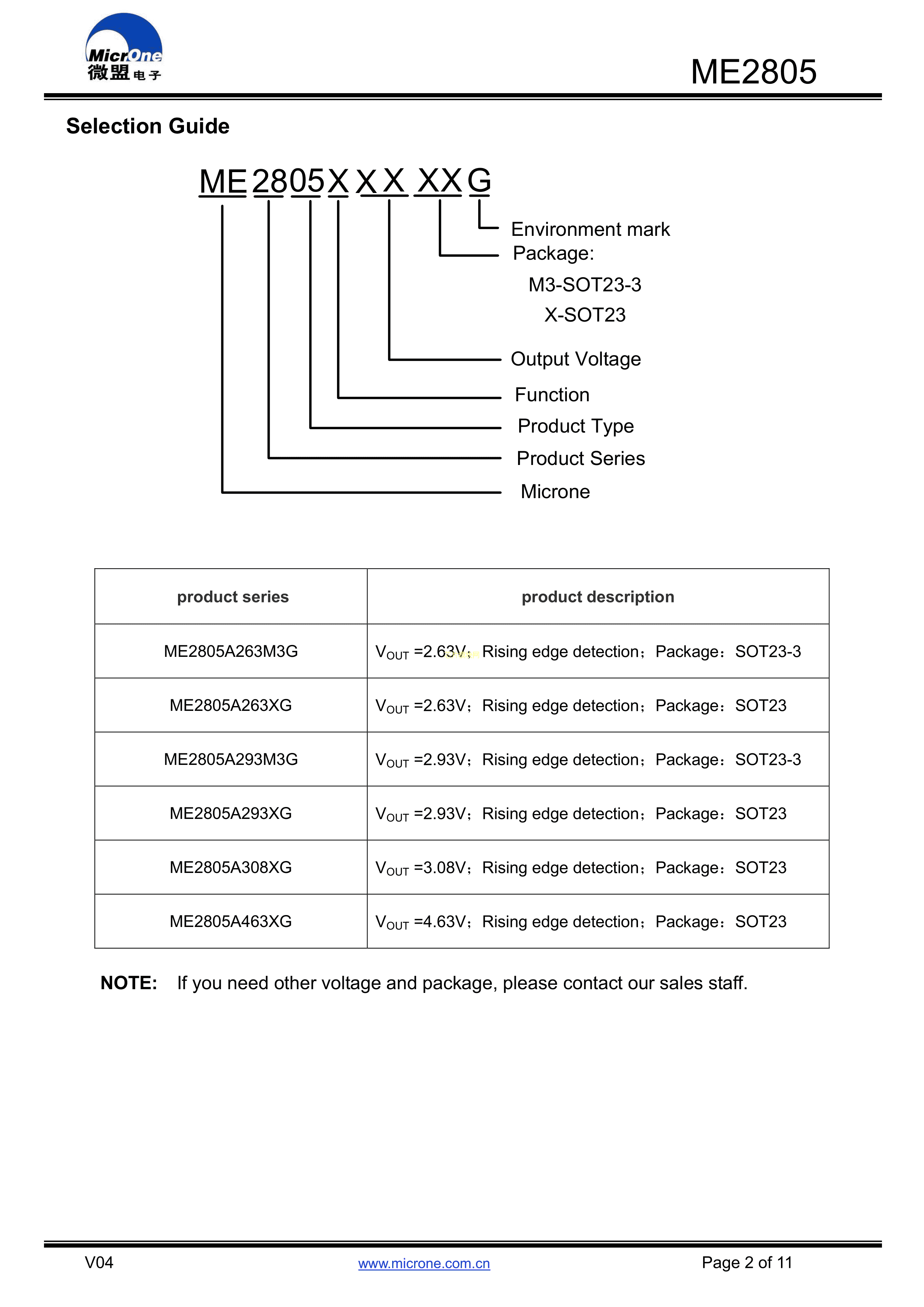 ME2805A263M3G数据手册SOT-23(SOT-23-3)封装MICRONE(南京微盟)PD