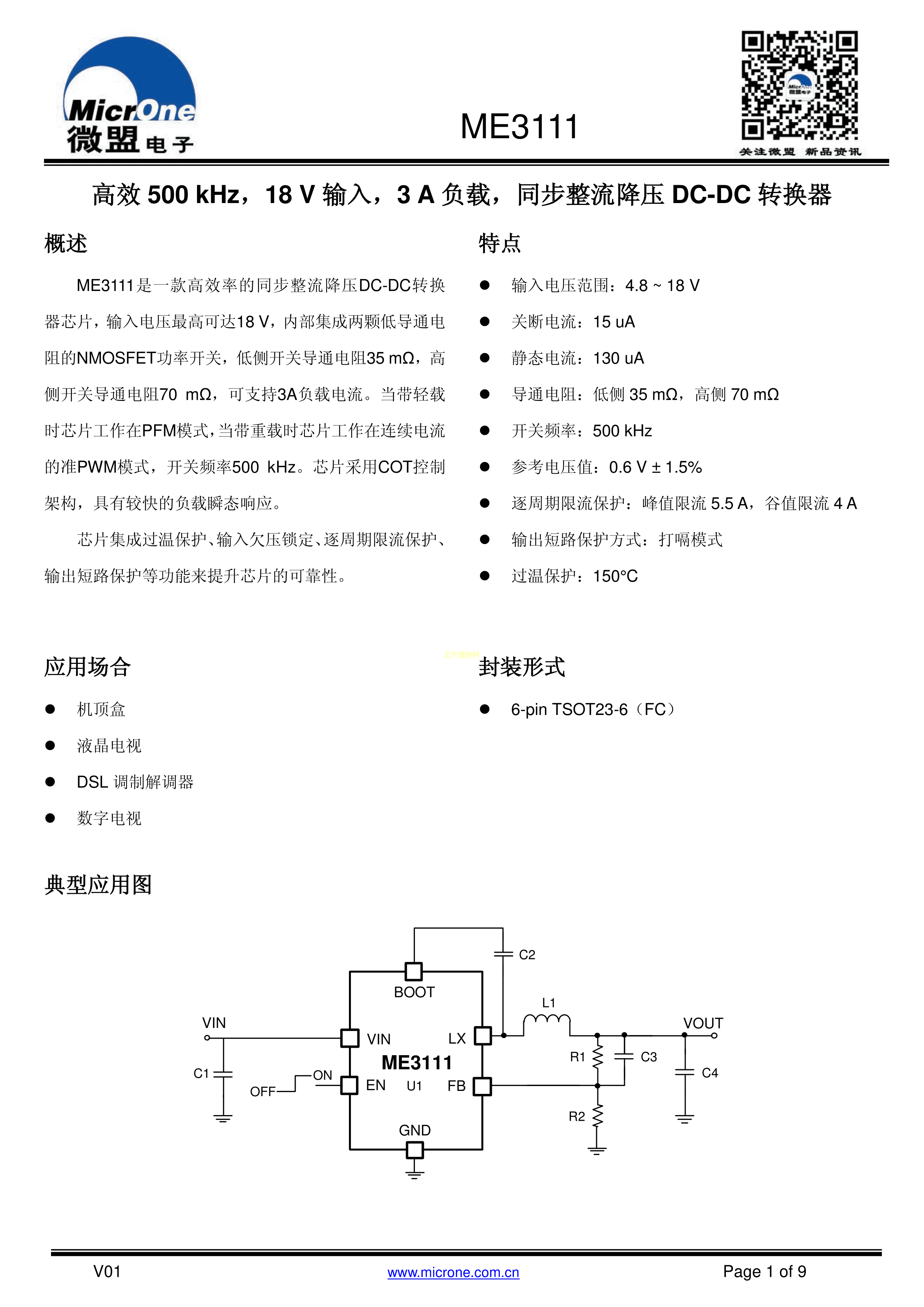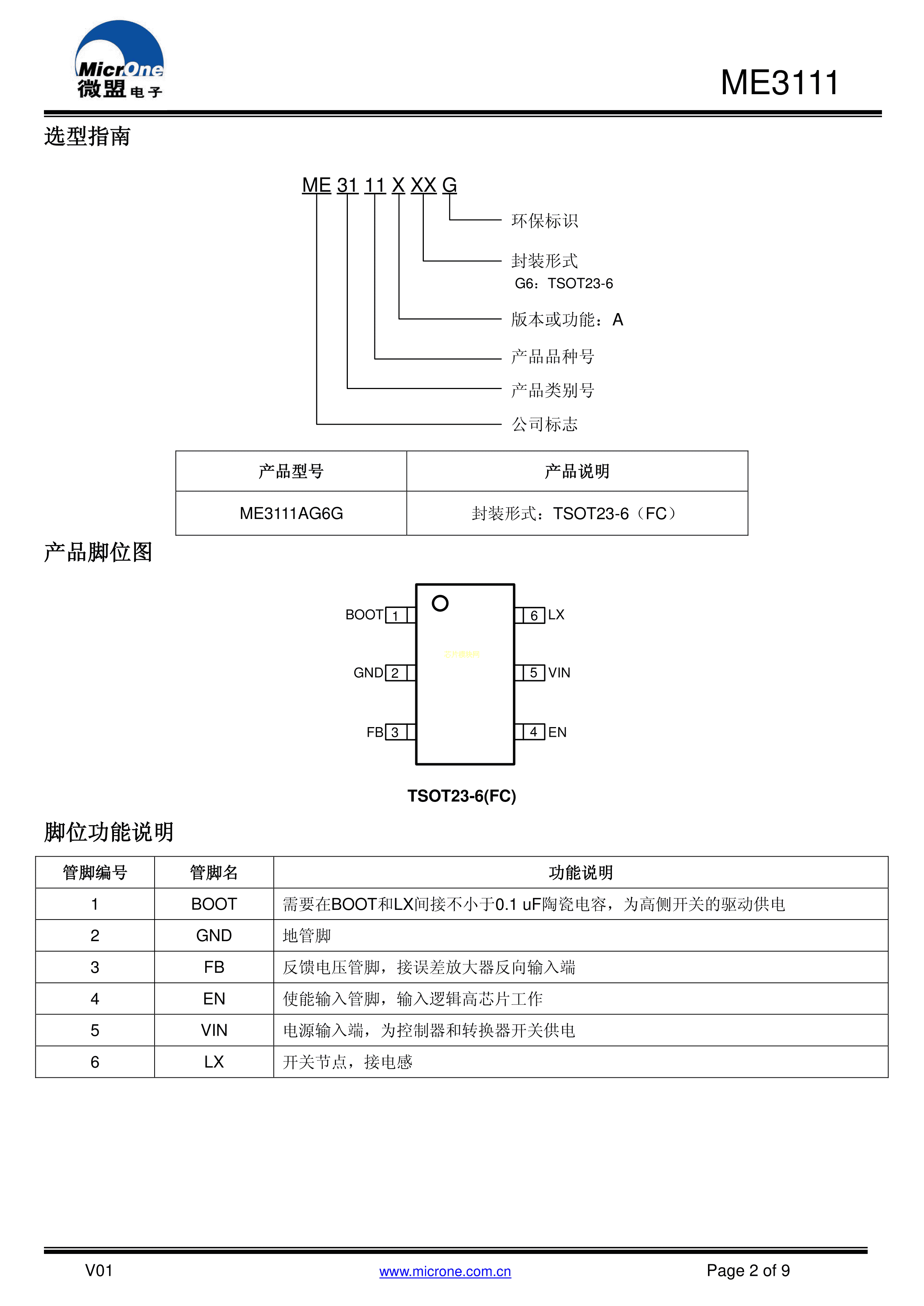 ME3111AG6G数据手册TSOT-23-6封装MICRONE(南京微盟)PDF规格书,中英文下载
