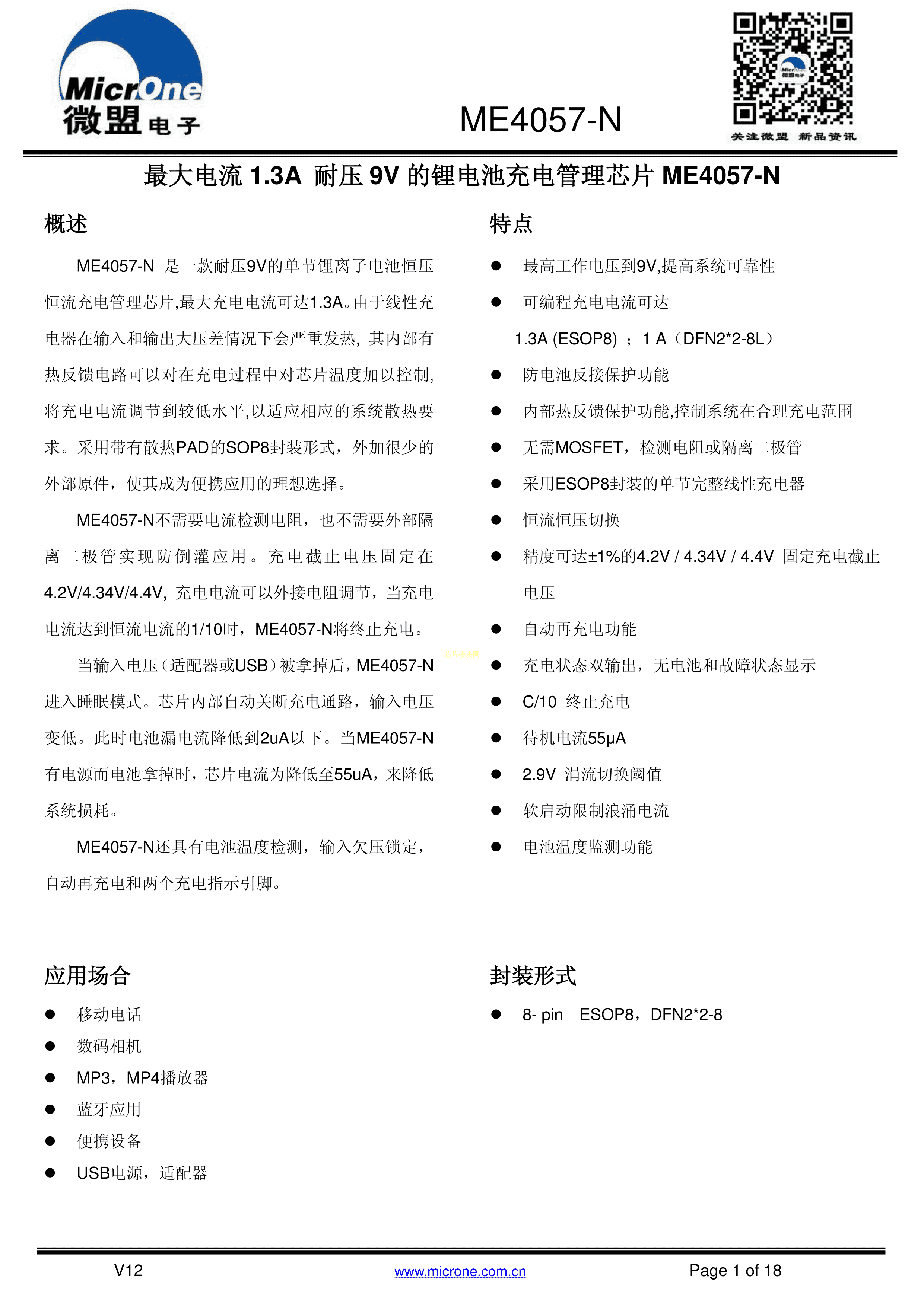 ME4057DSPG-NA数据手册ESOP-8封装MICRONE(南京微盟)PDF规格书,中英文下载