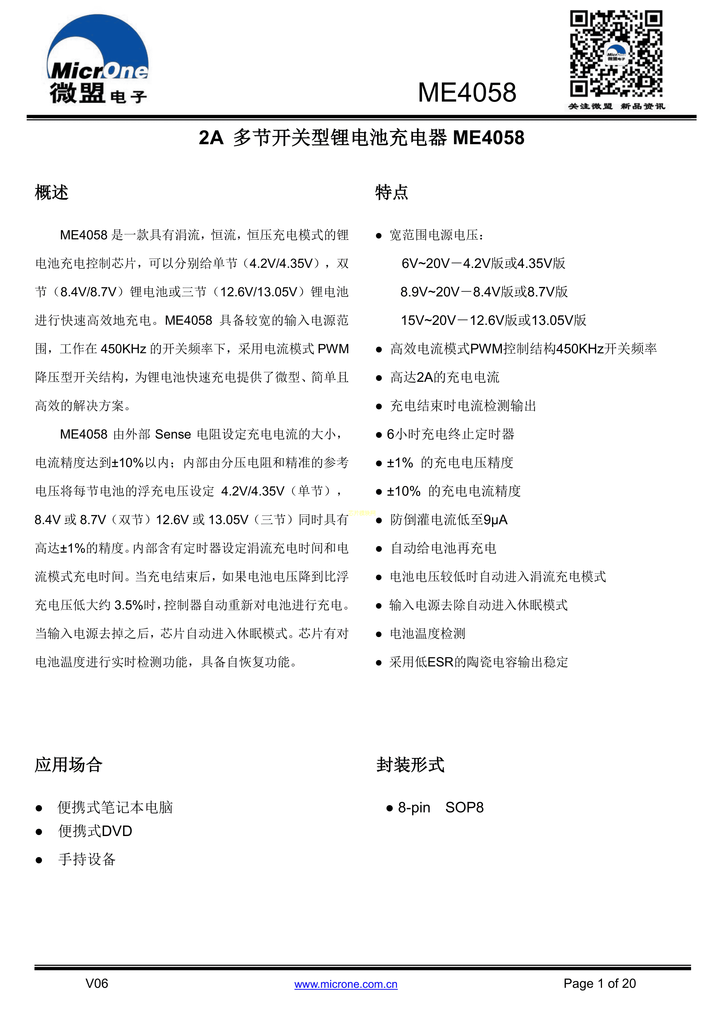ME4058C6SG数据手册SOP-8封装MICRONE(南京微盟)PDF规格书,中英文下载