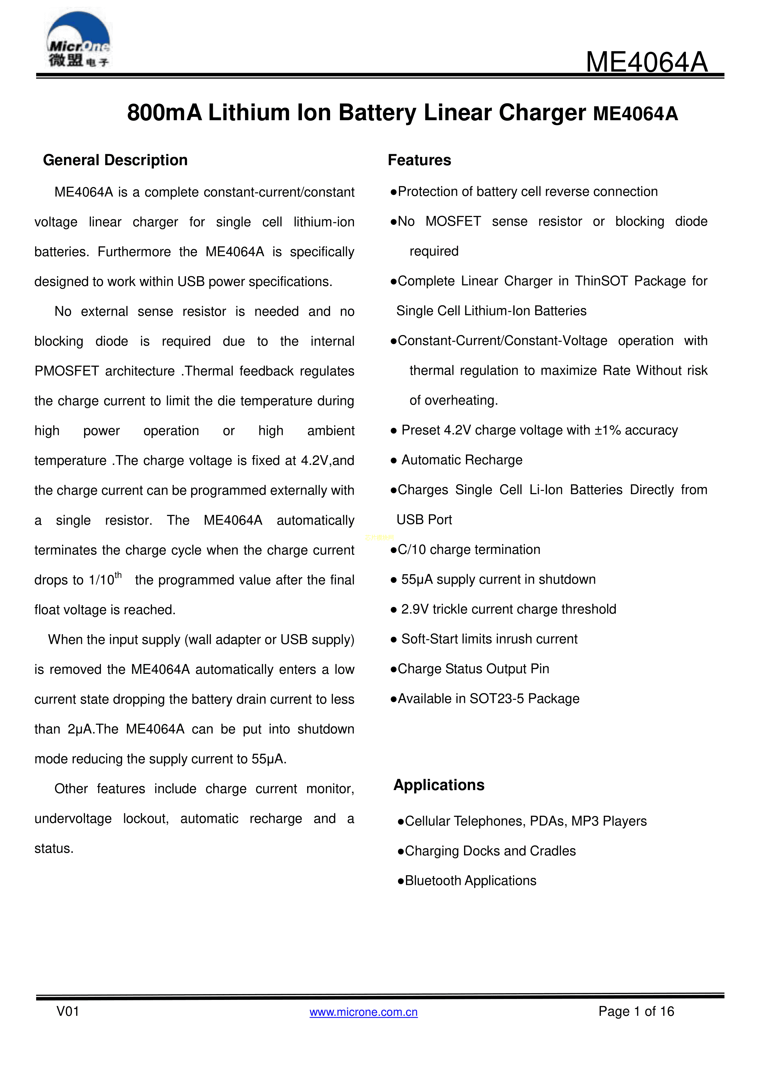 ME4064AM5G数据手册SOT-23-5封装MICRONE(南京微盟)PDF规格书,中英文下载