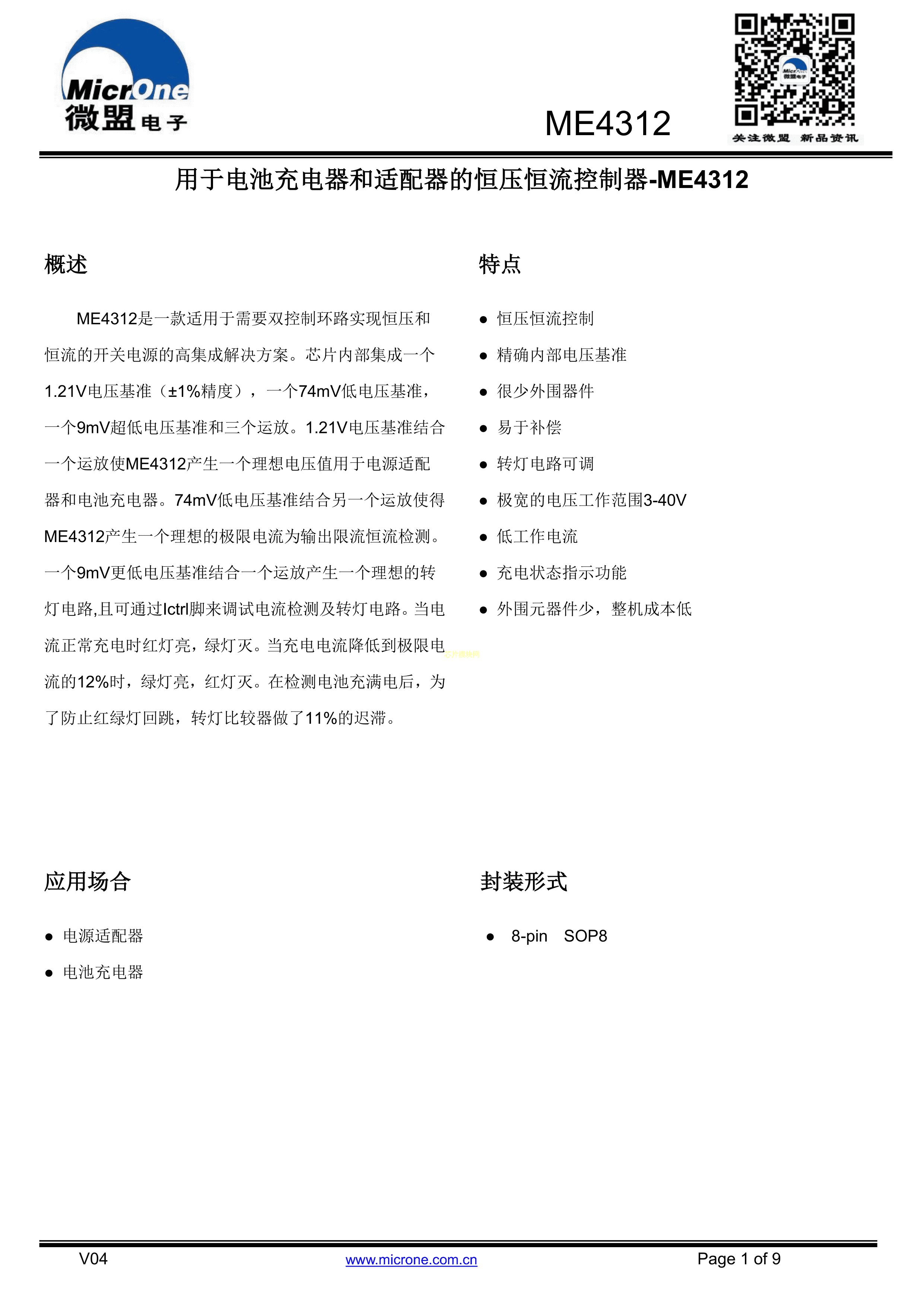 ME4312BSG数据手册SOP-8封装MICRONE(南京微盟)PDF规格书,中英文下载