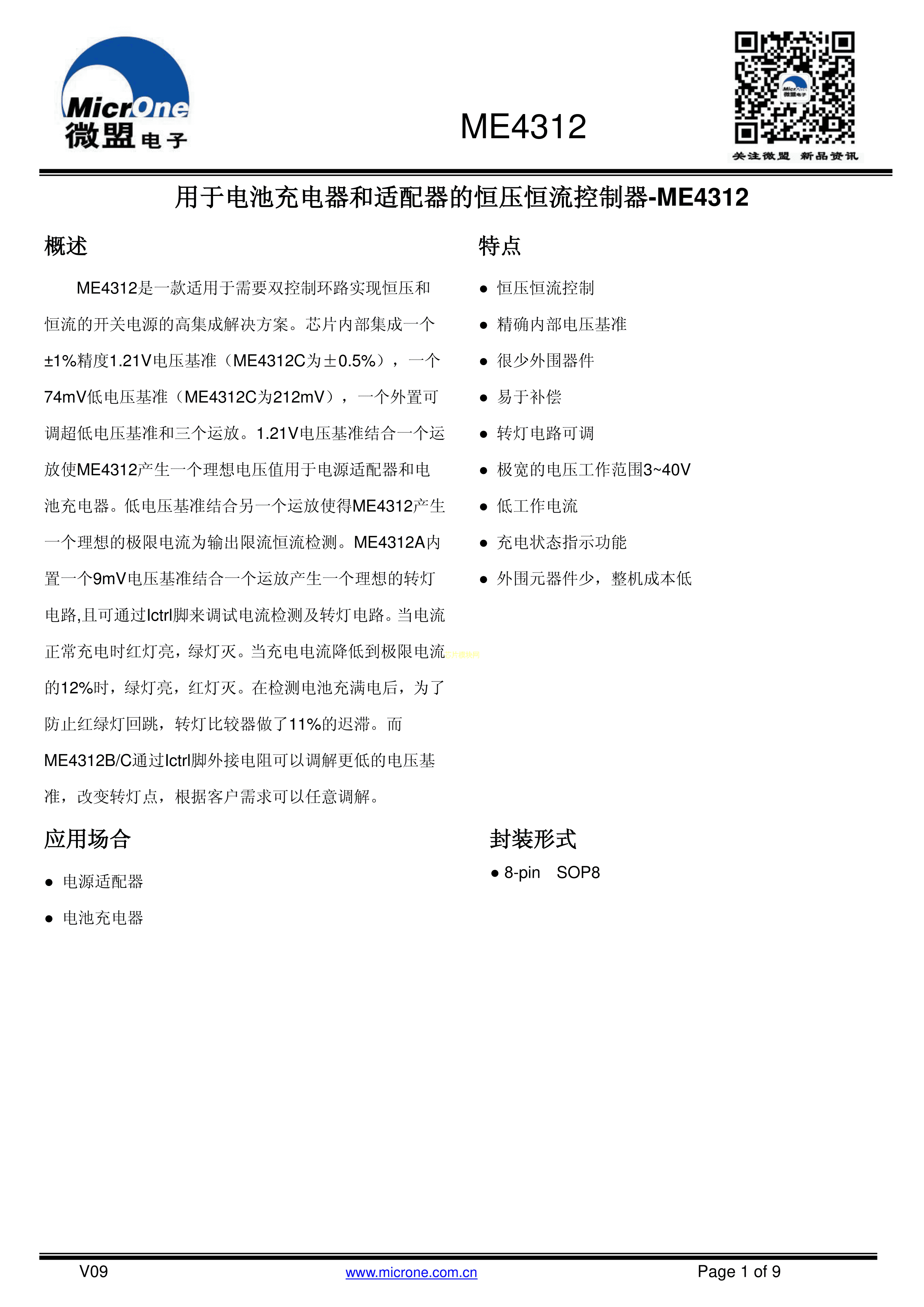 ME4312CSG数据手册SOP-8封装MICRONE(南京微盟)PDF规格书,中英文下载